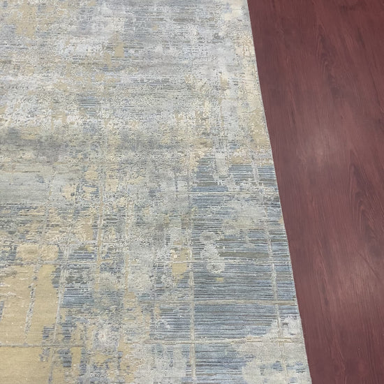 Beige Grey, Silk Wool Oxidized Modern Handknotted 7.11x10.4Ft 242x305Cms Area Rug