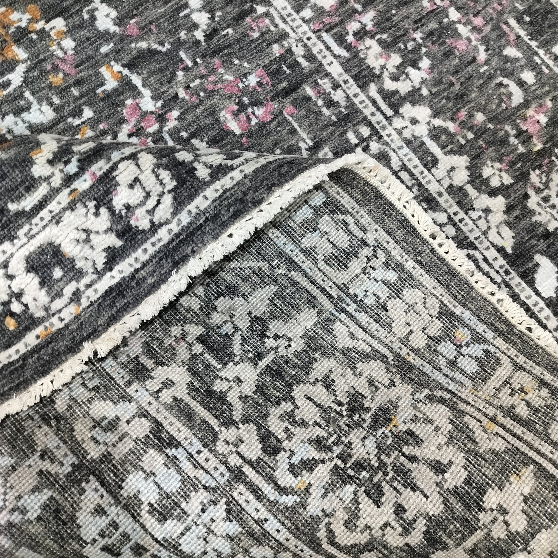 Black, Rust, Ivory and Pink Silk Wool Transitional Handknotted 7.11x10.2ft 243x311Cms Area Rug