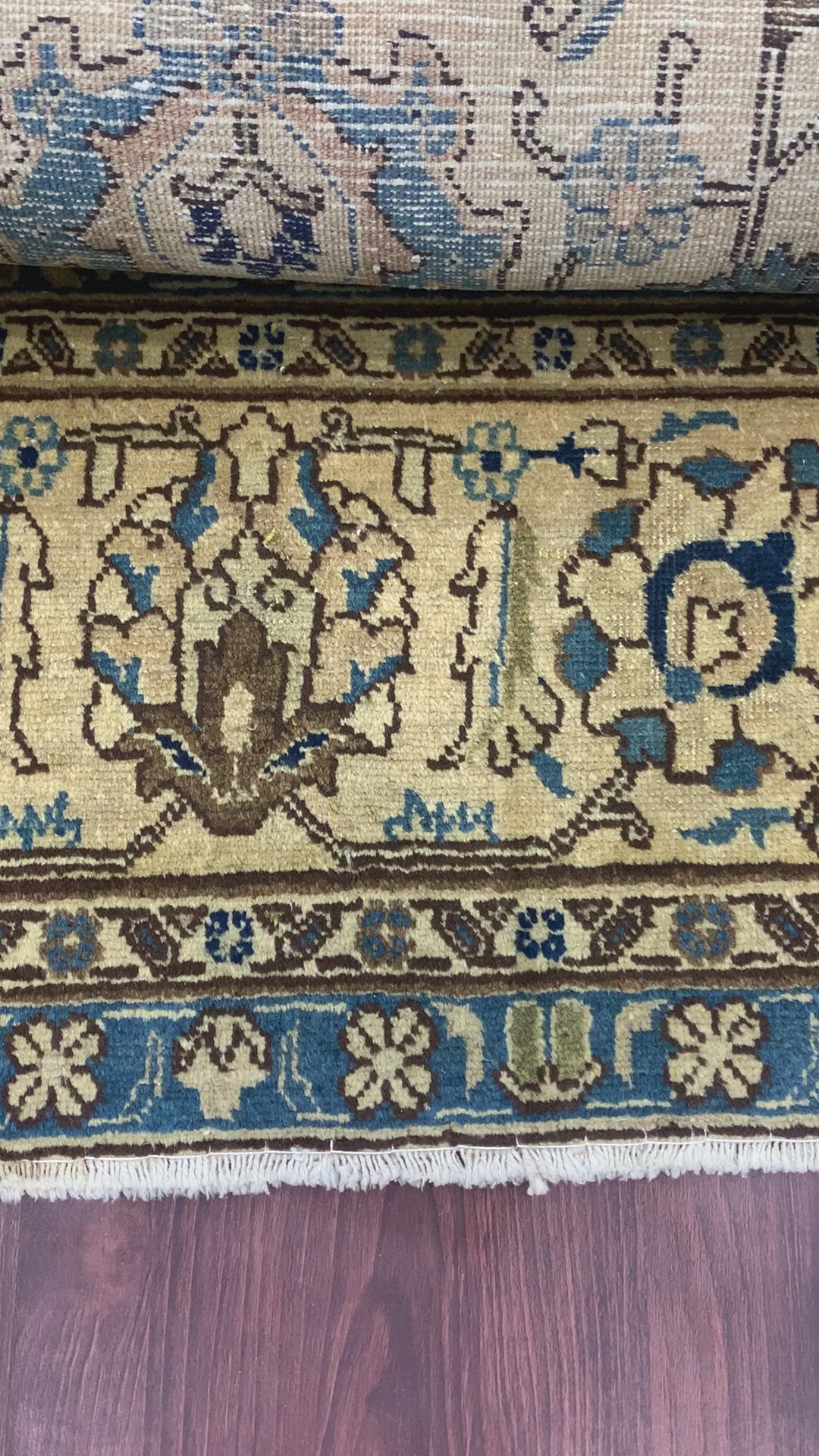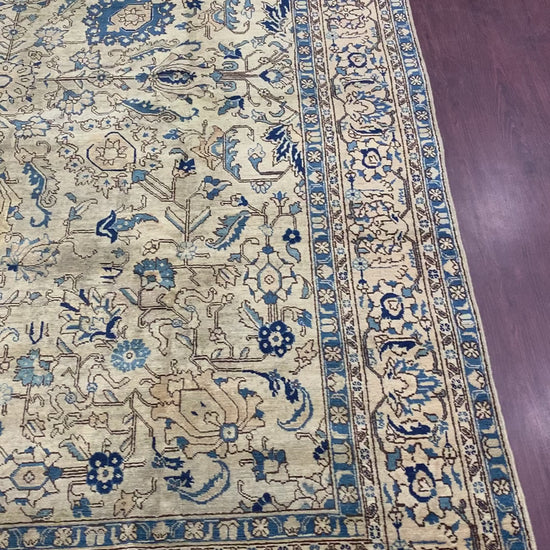 Blue and Camel, Pure Wool Antique Khotan Handknotted 8.0x11.5Ft 244x347Cms Area Rug