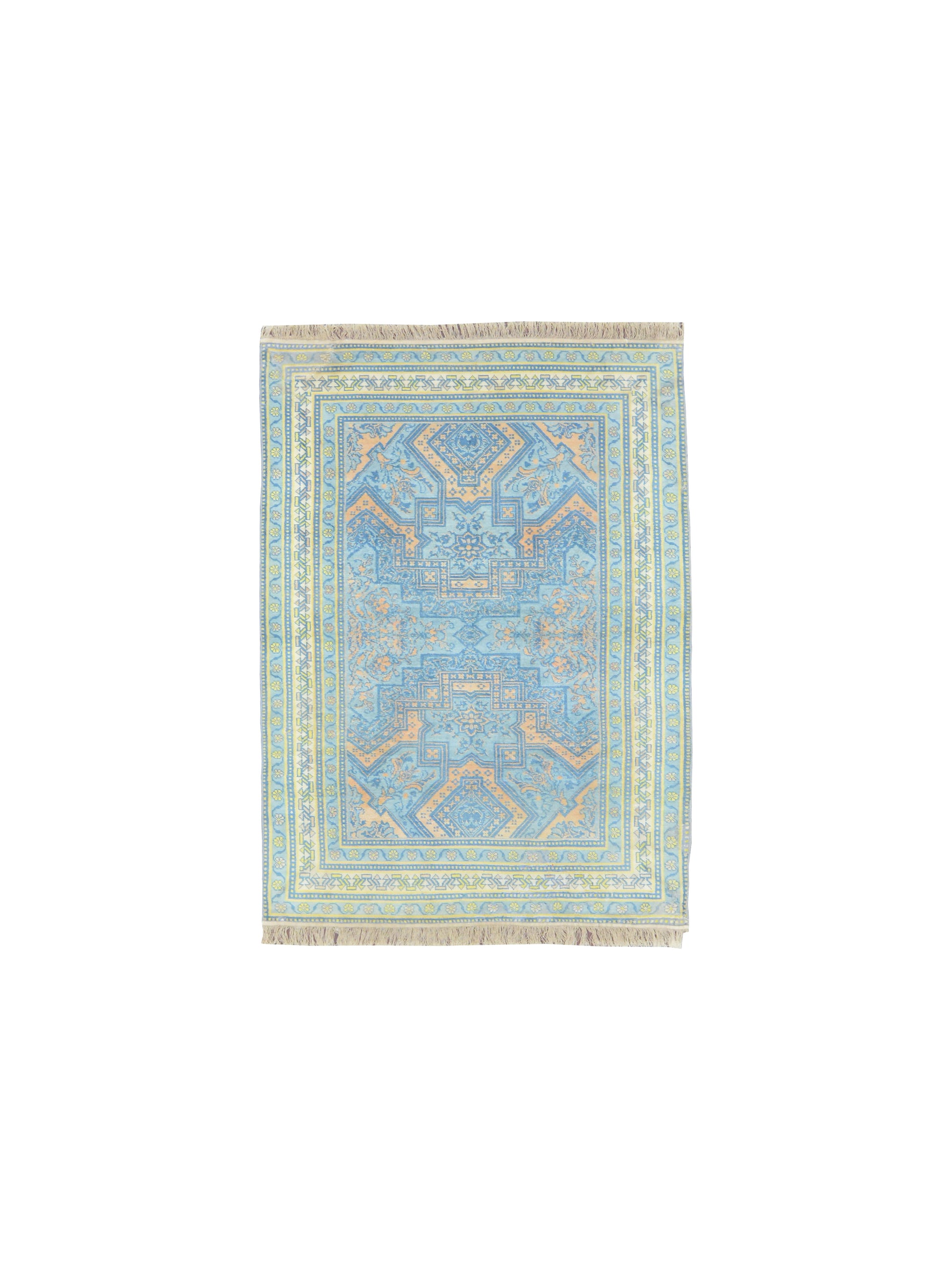 Blue and Orange, Pure Cotton Antique Khotan Handknotted 4.0x6.8Ft 122x203Cms Area Rug