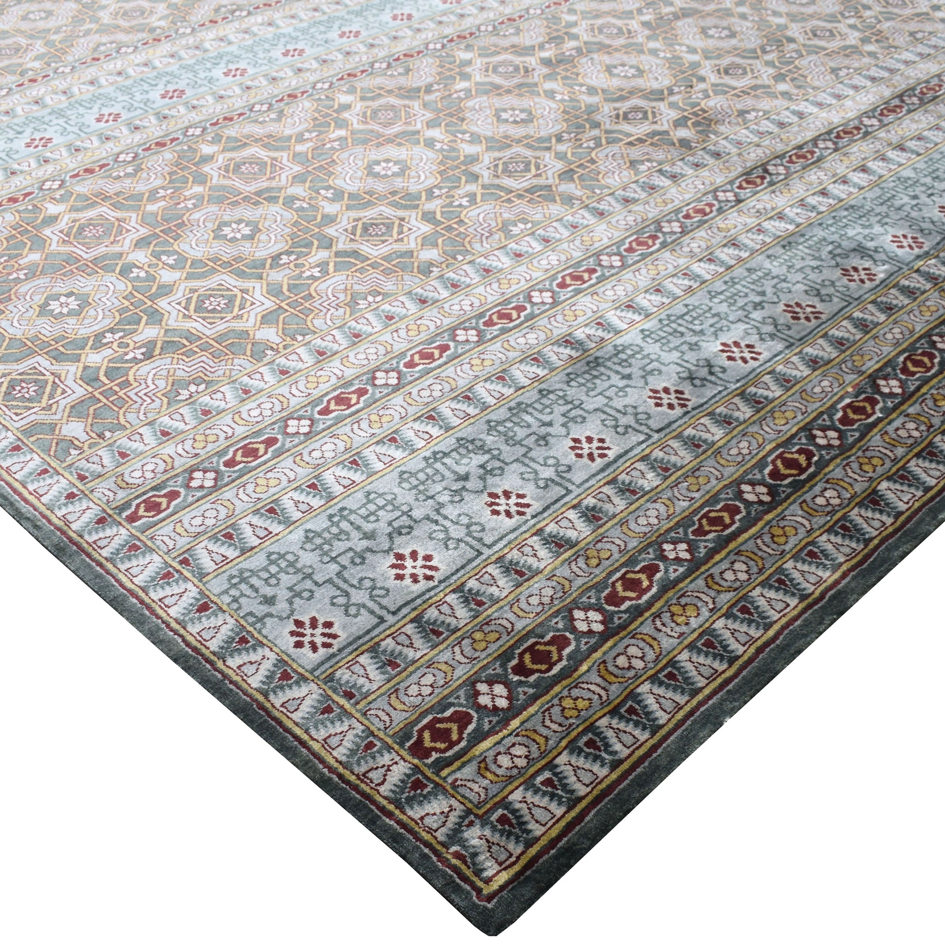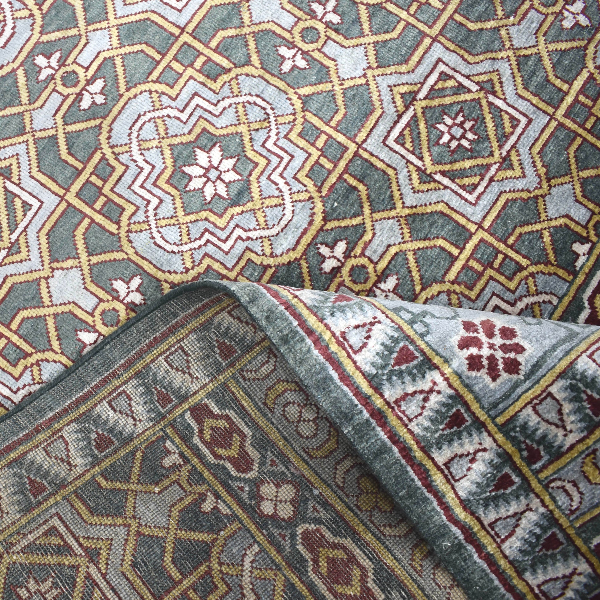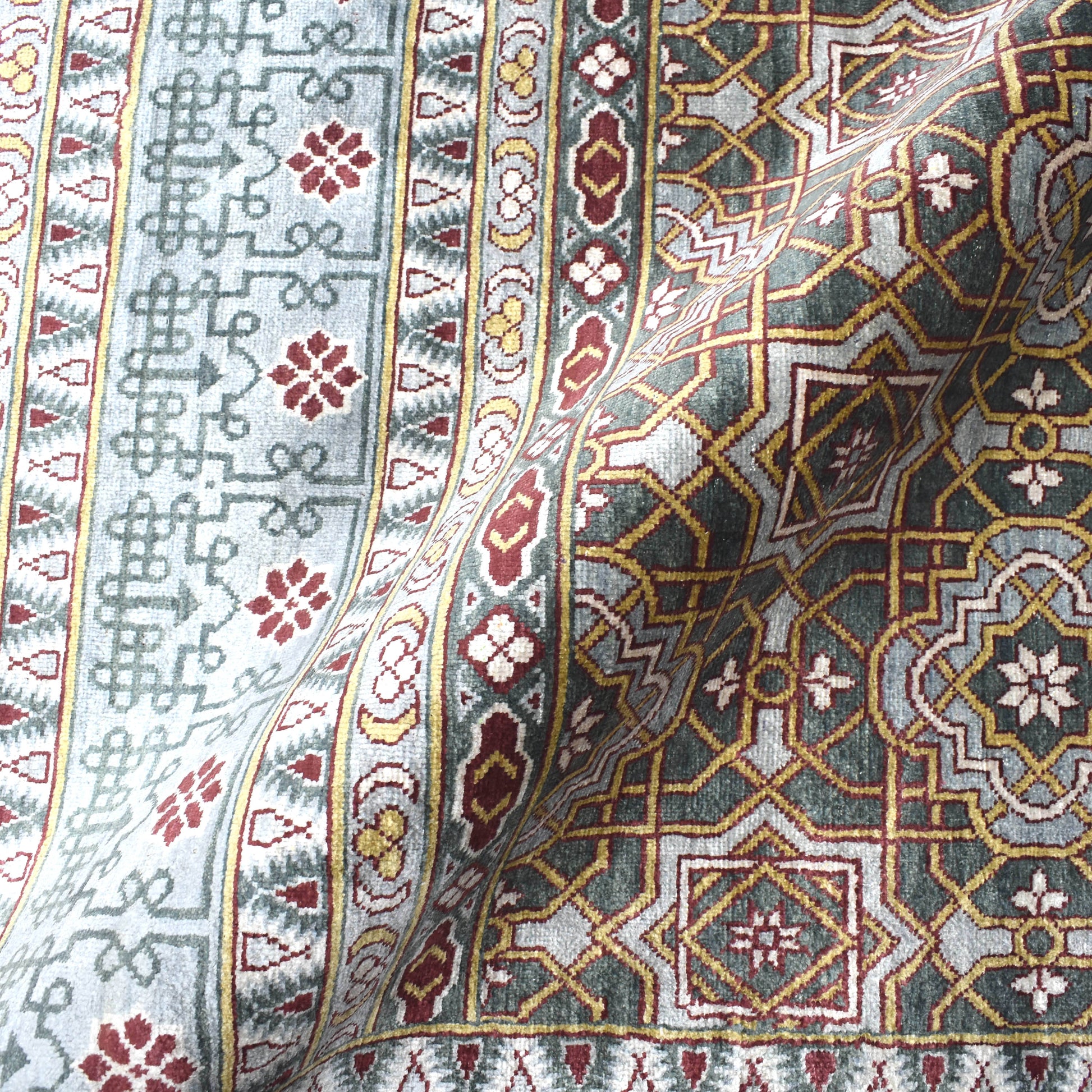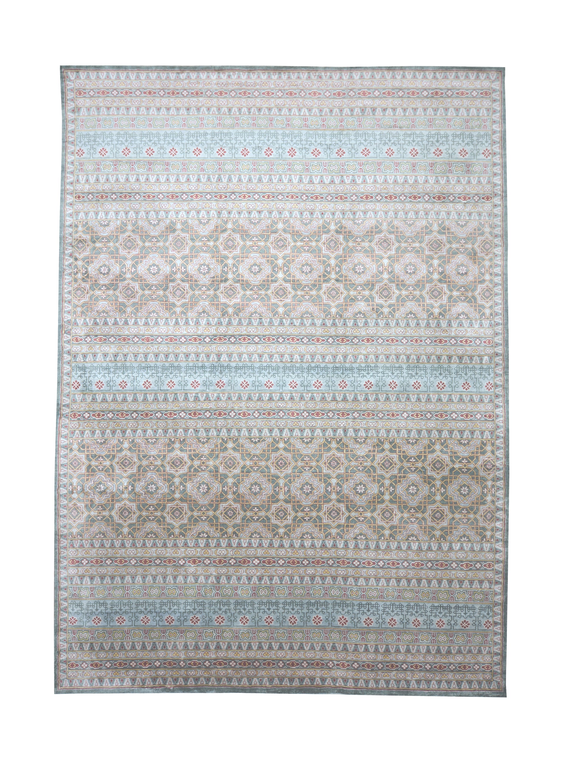 Geomertical Transitional Handknotted Pure Silk Area Rug