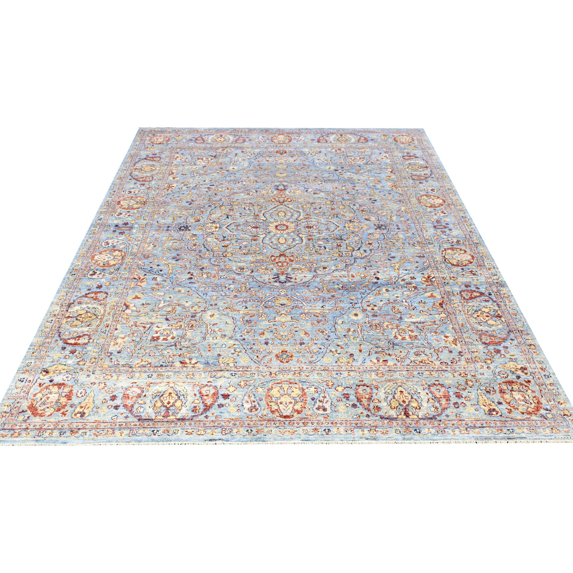 Blue Multy, Pure Wool Traditional Agra Handknotted 7.11x10.0Ft 241x305Cms Area Rug