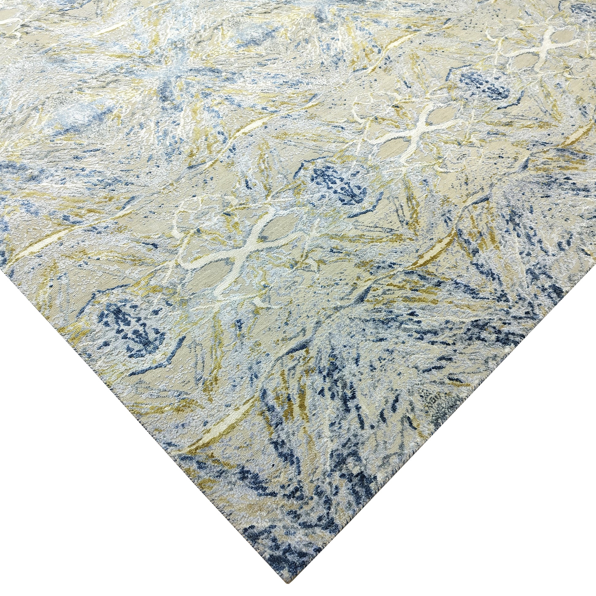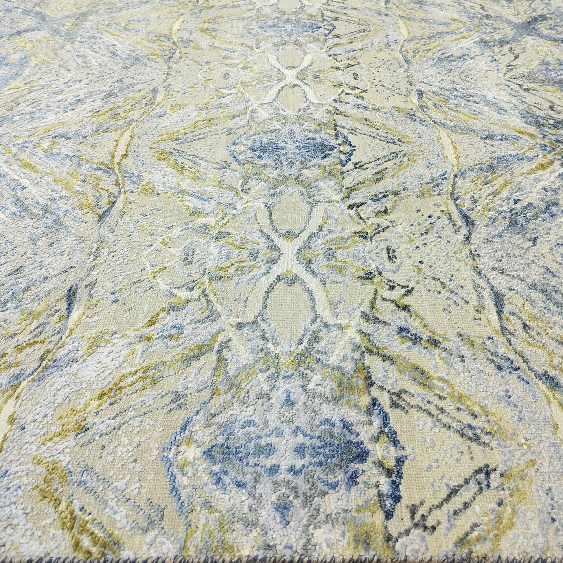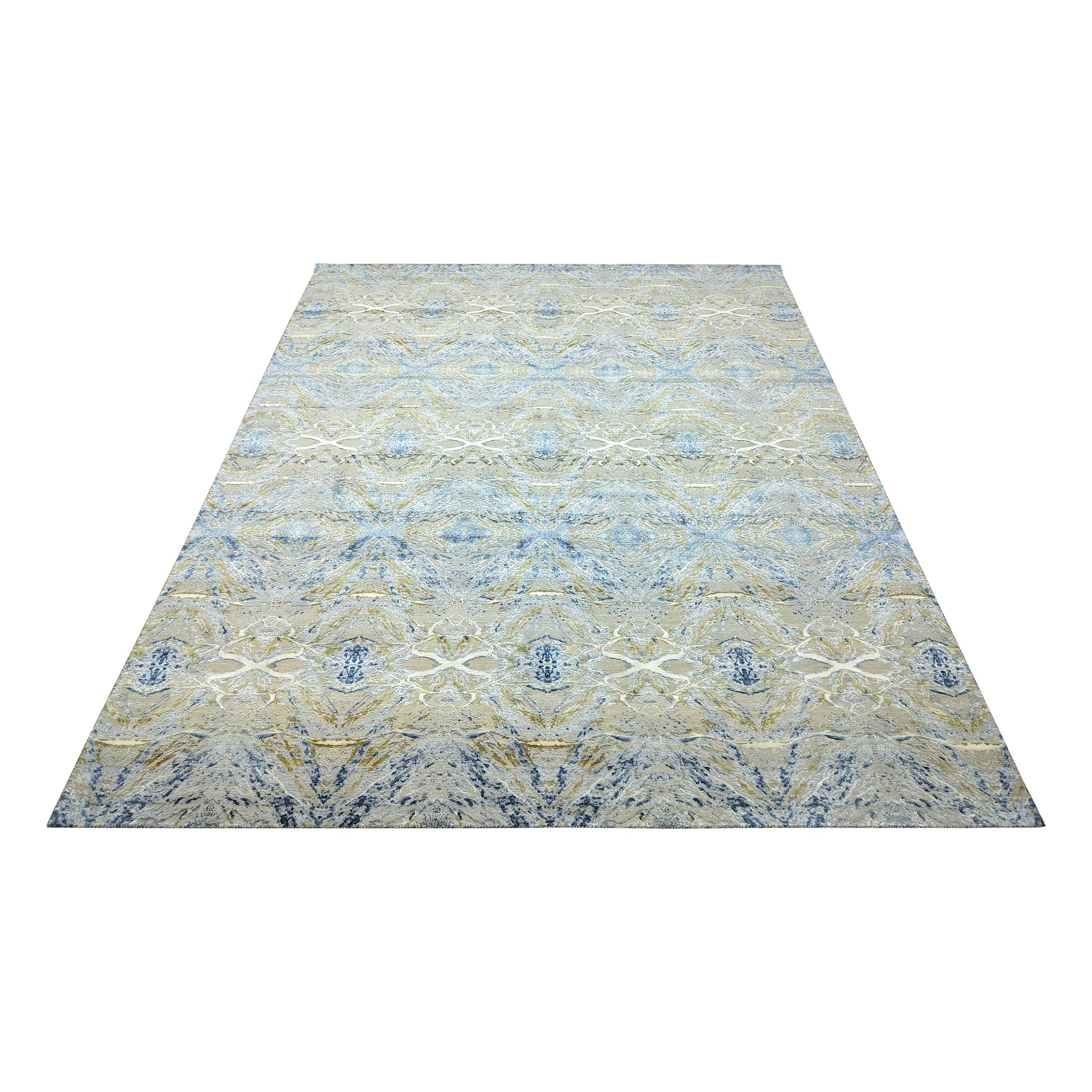 Blue Multy, Silk Wool Modern Abstract Handknotted 9.1x12.0Ft 276x365Cms Area Rug