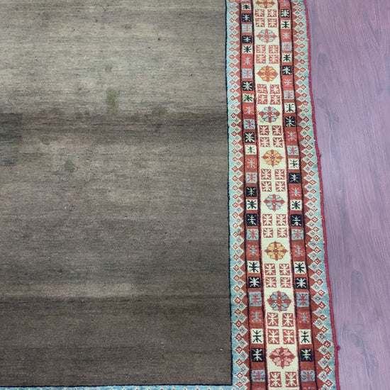 Brown and Beige, Pure Wool Antique Khotan Handknotted 4.3x6.7Ft 130x200Cms Area Rug