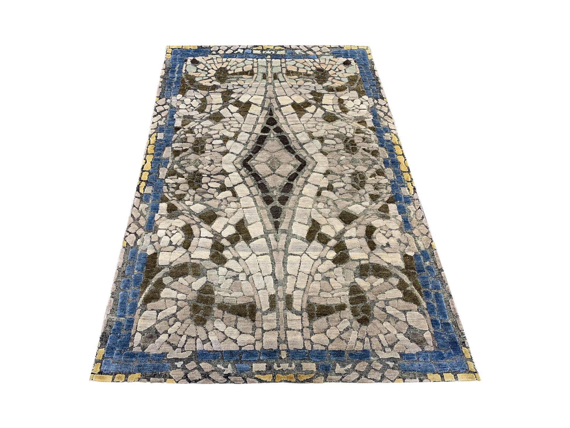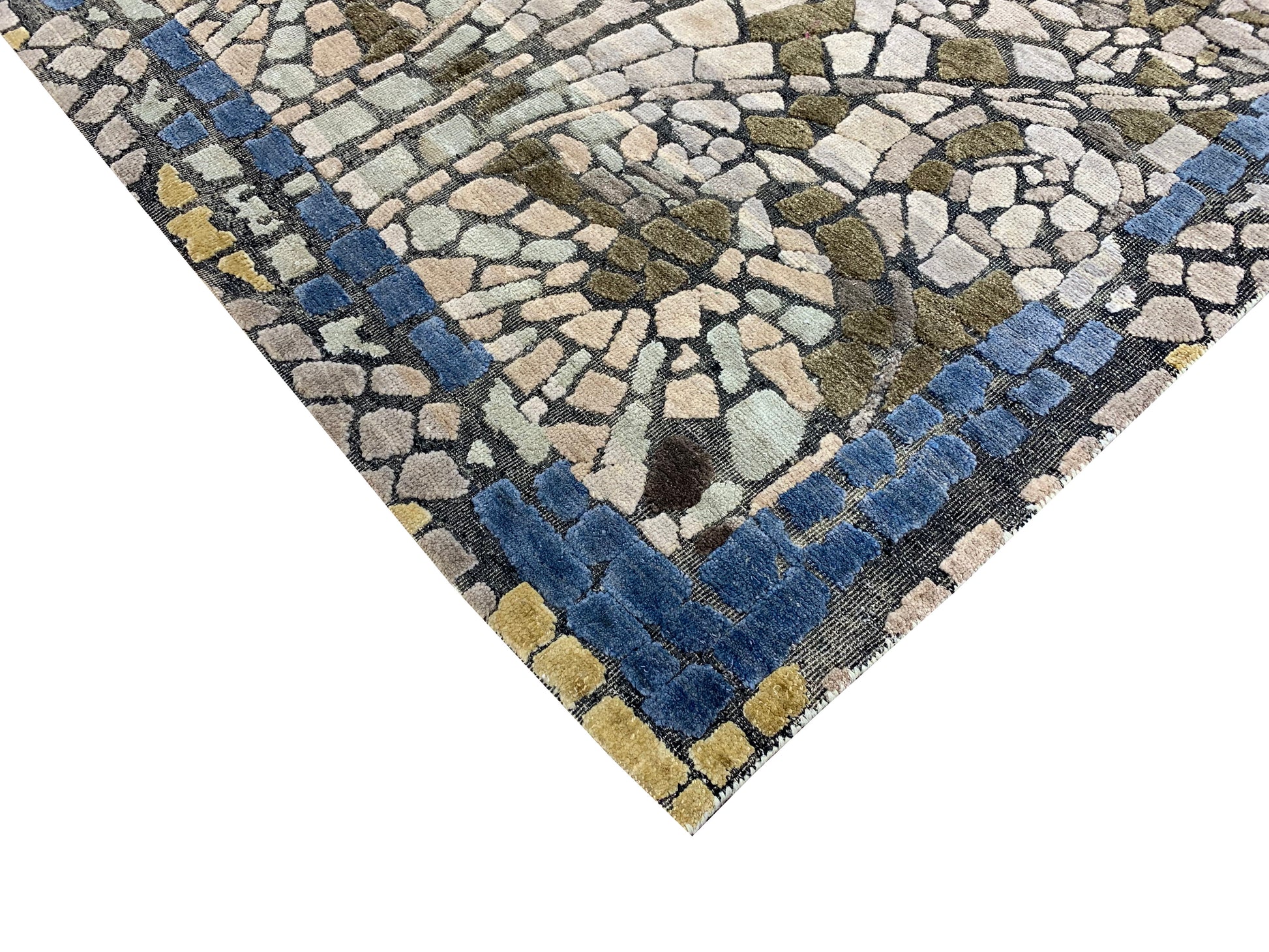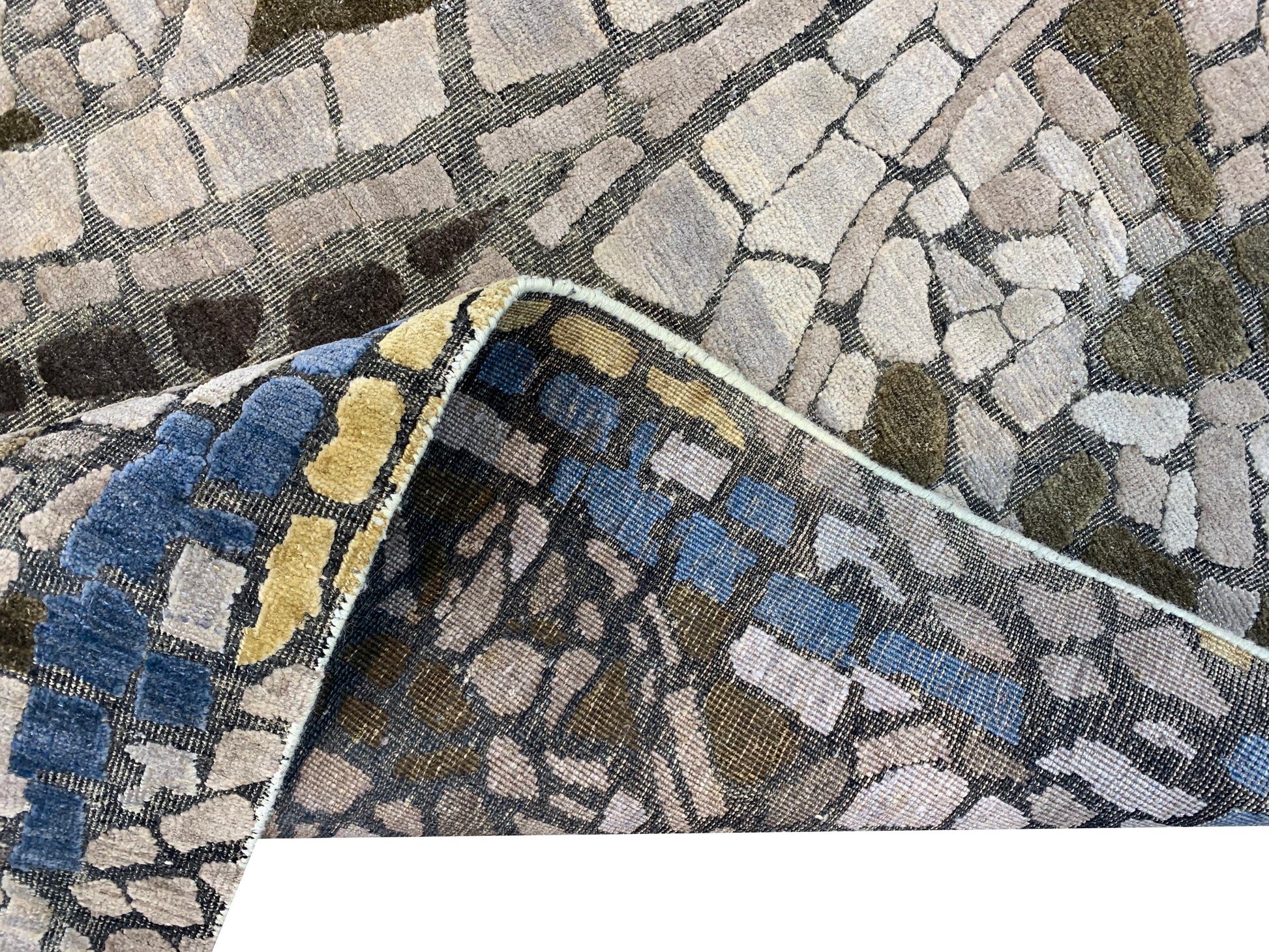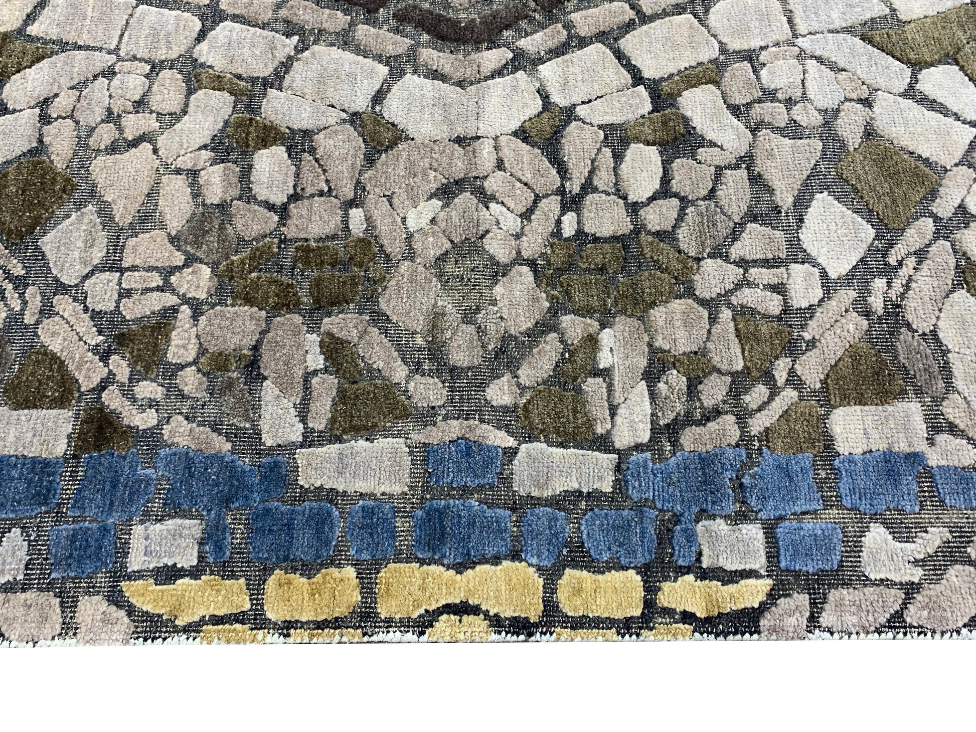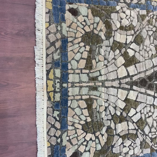 Modern Handknotted Silk and Wool Oxidized Area Rug
