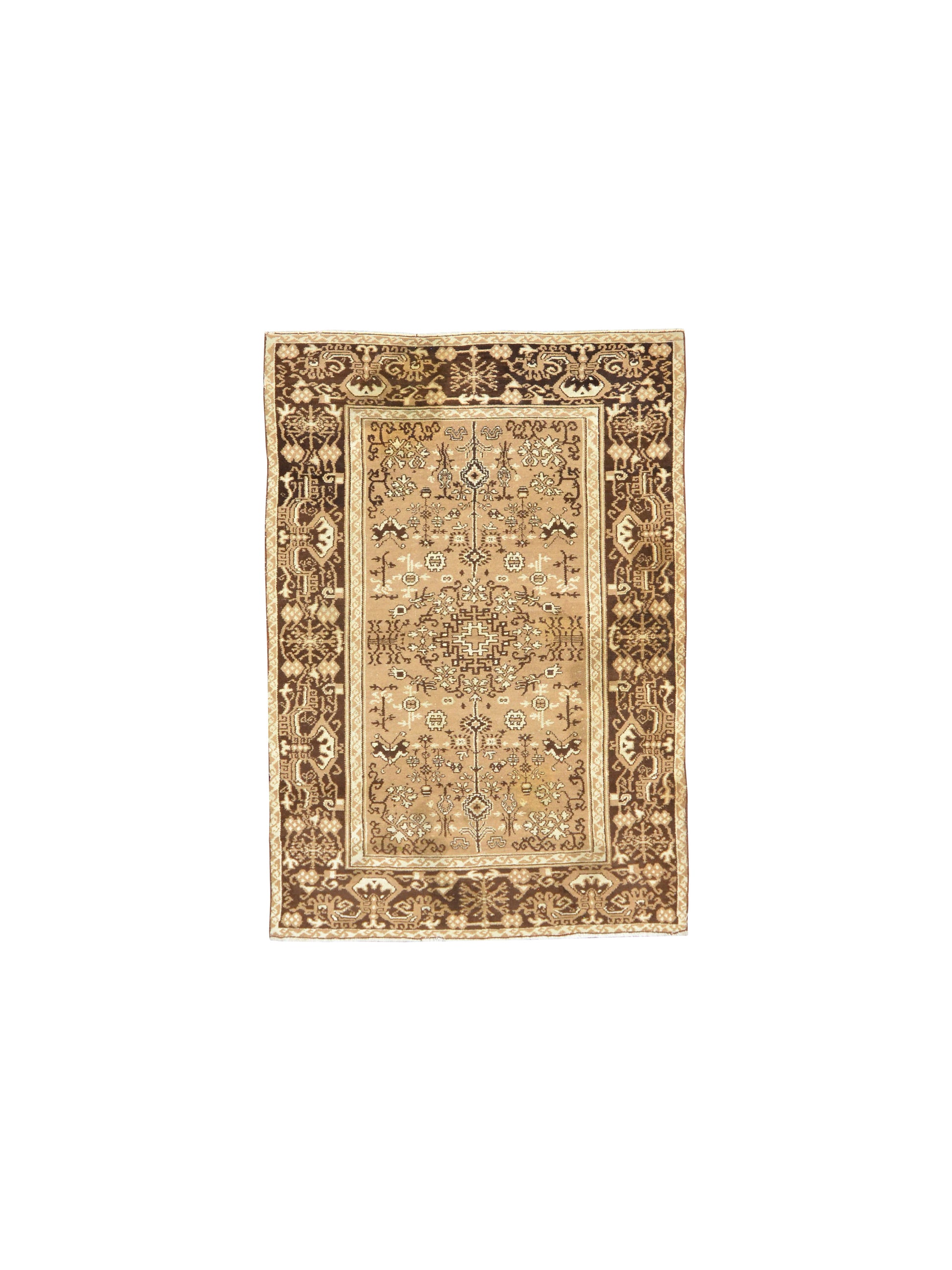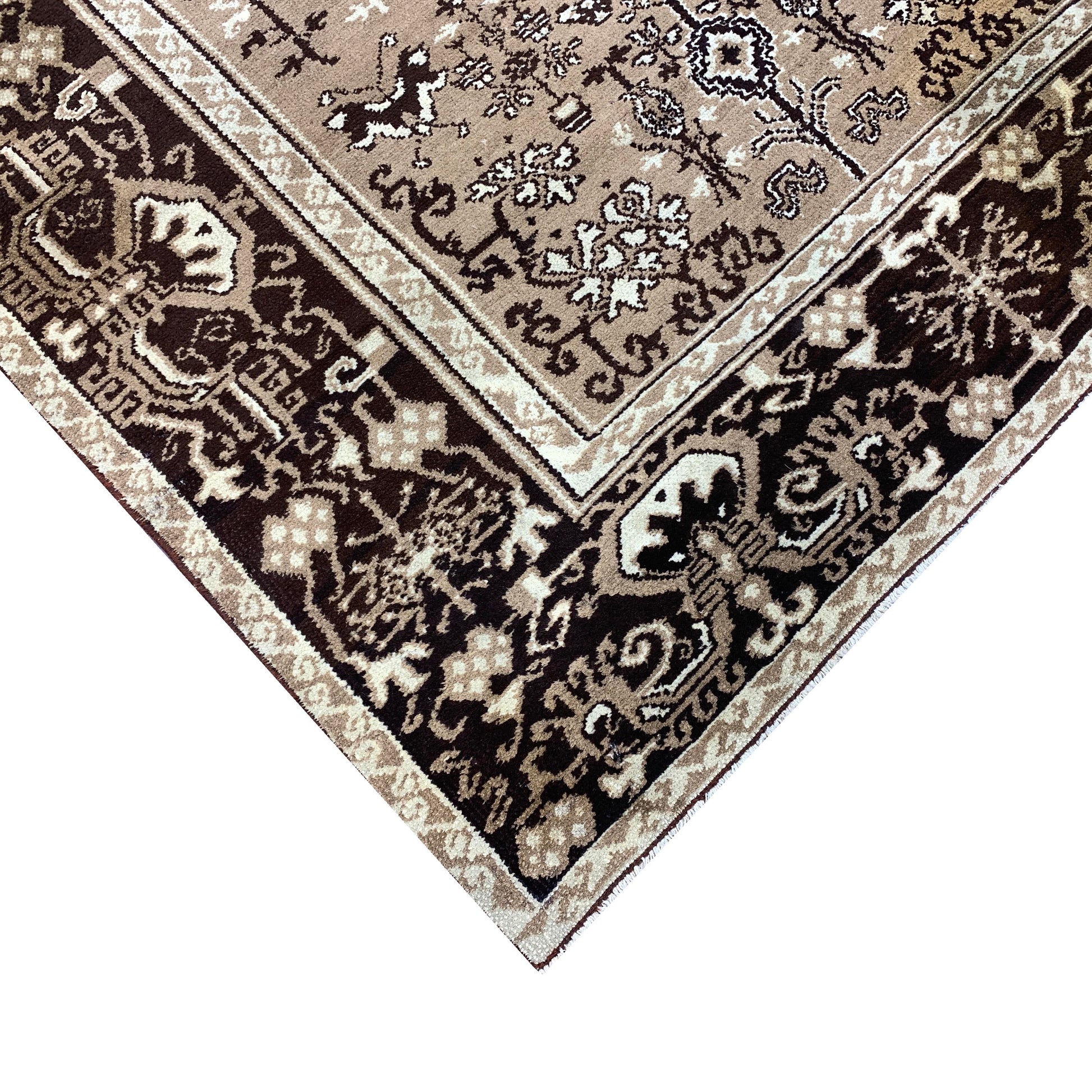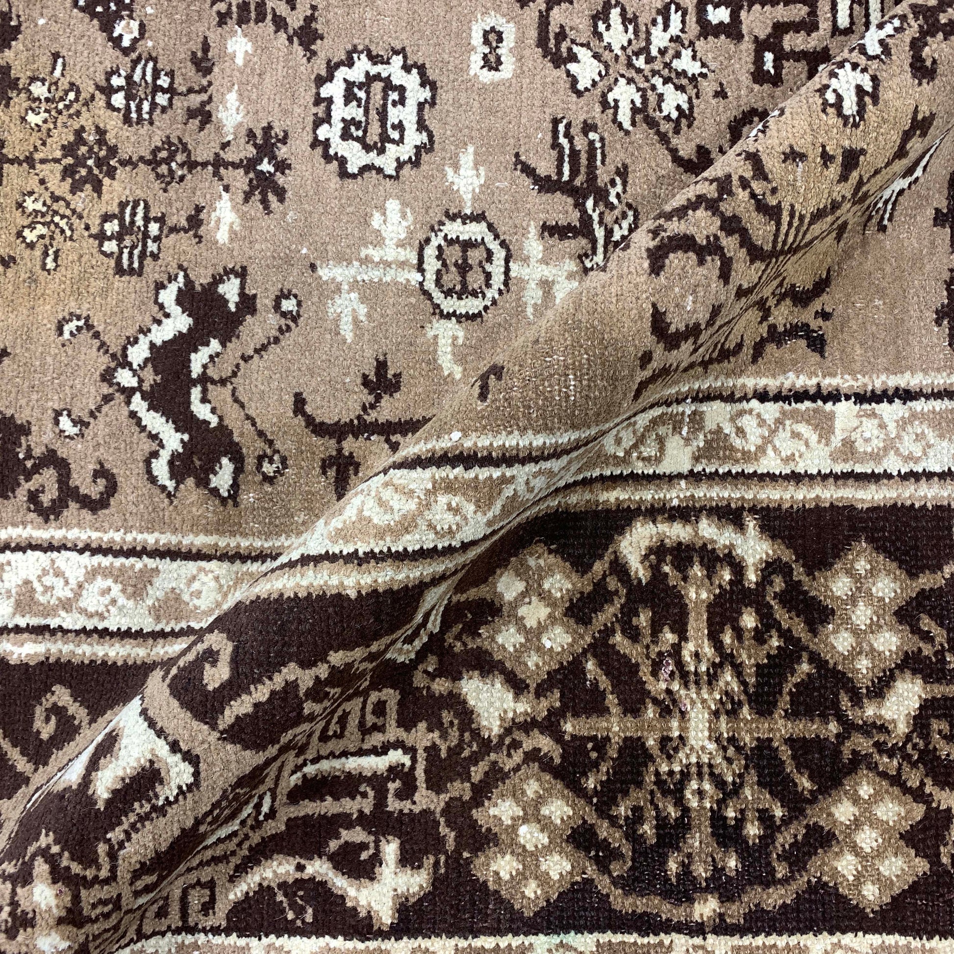Brown and Camel, Pure Cotton Antique Khotan Handknotted 4.5x6.3Ft 134x190Cms Area Rug