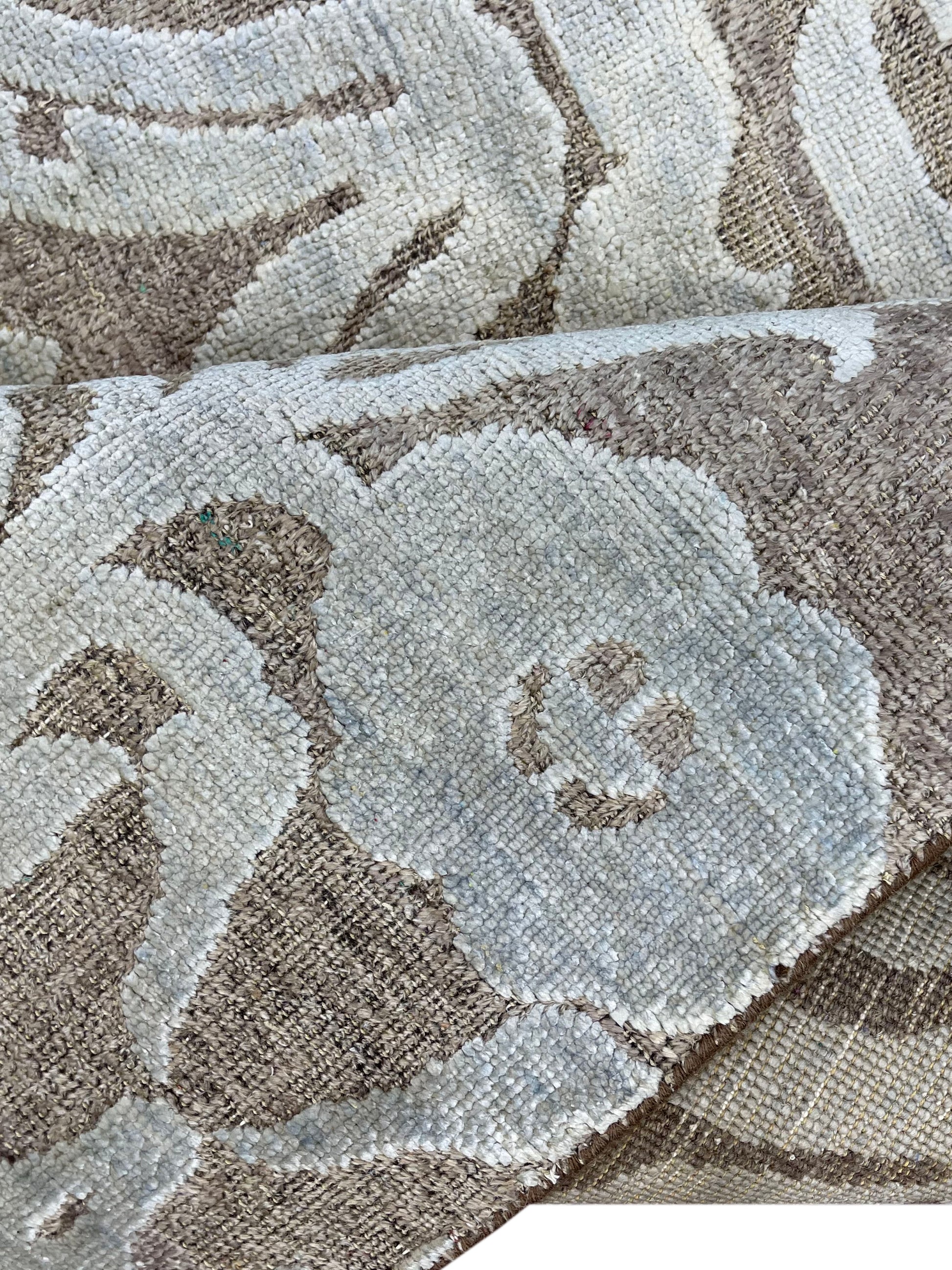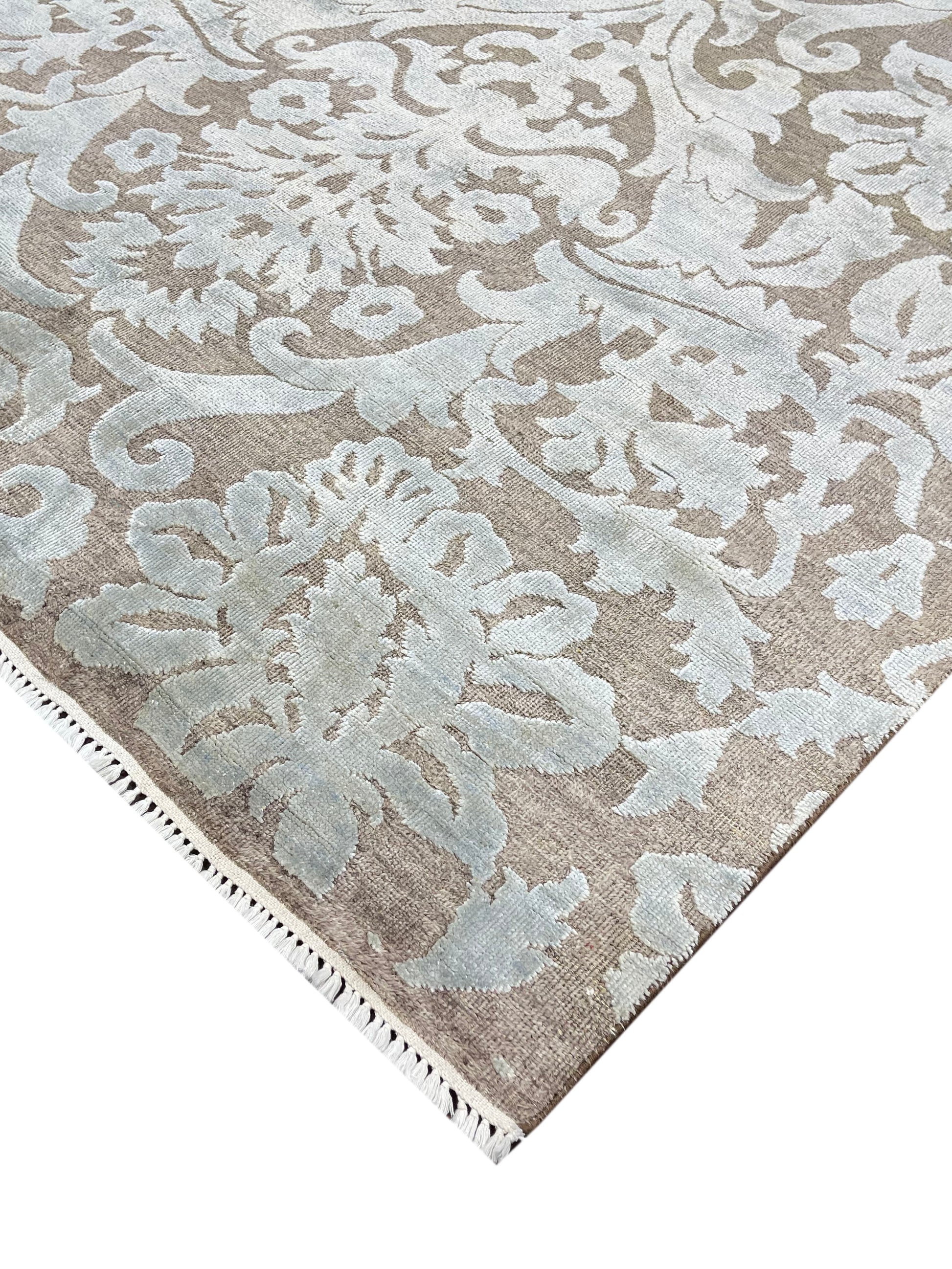 Modern Damask Handknotted Silk and Wool Oxidized Area Rug