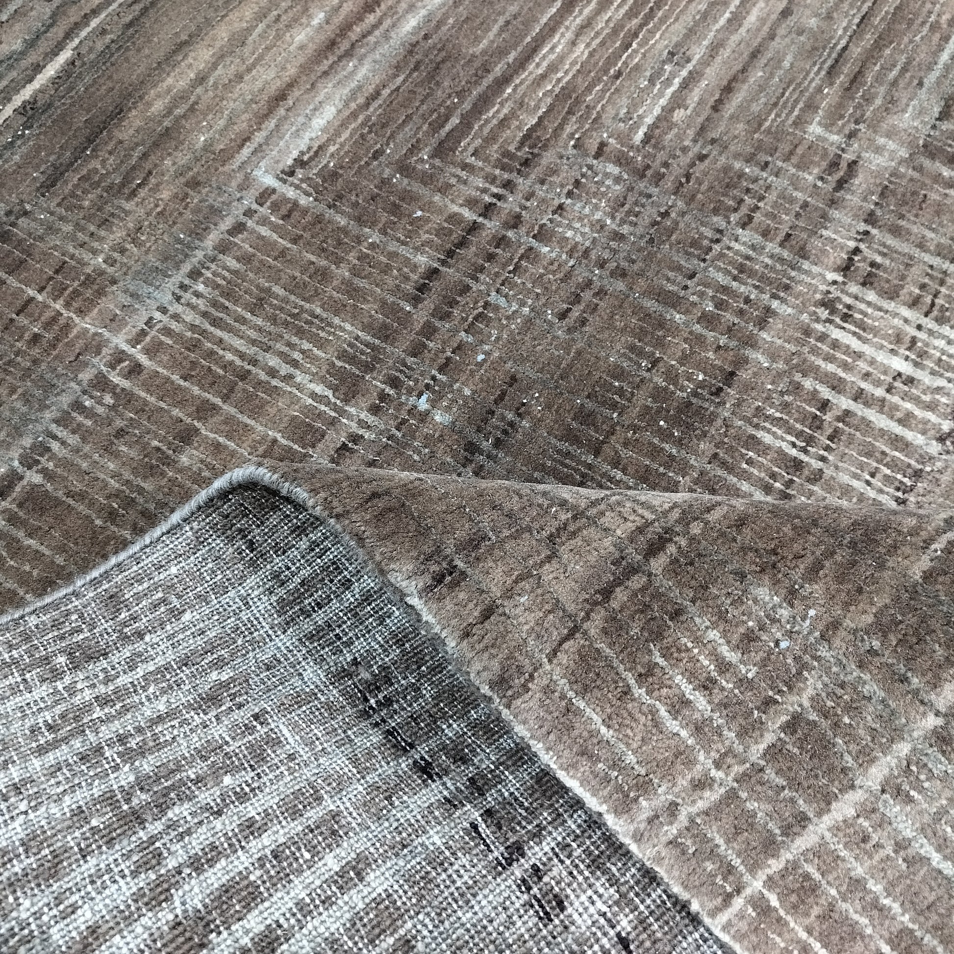 Brown Gold, Silk Wool Regular Modern Handknotted 8.9X12.0 Ft 257X366Cms Area Rug