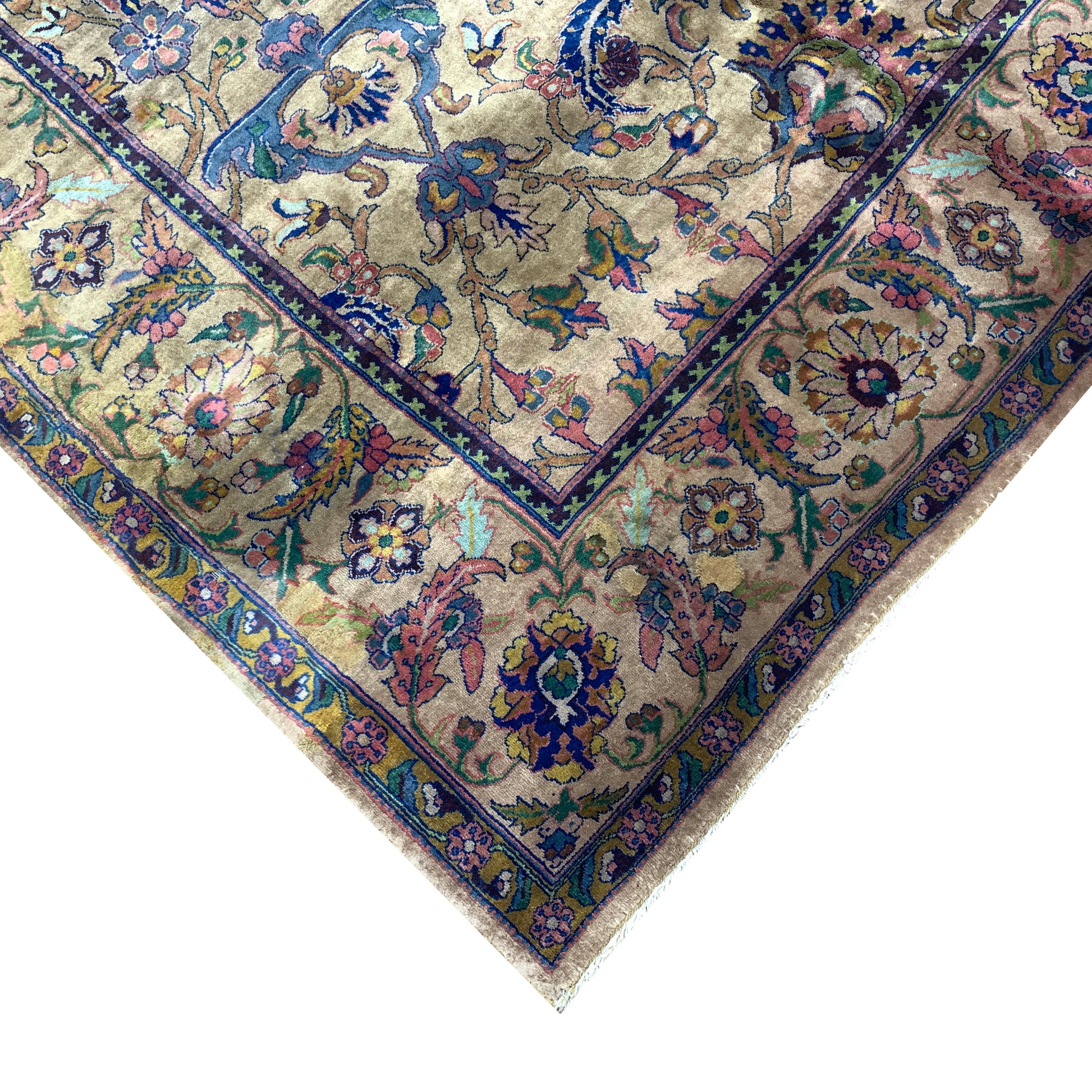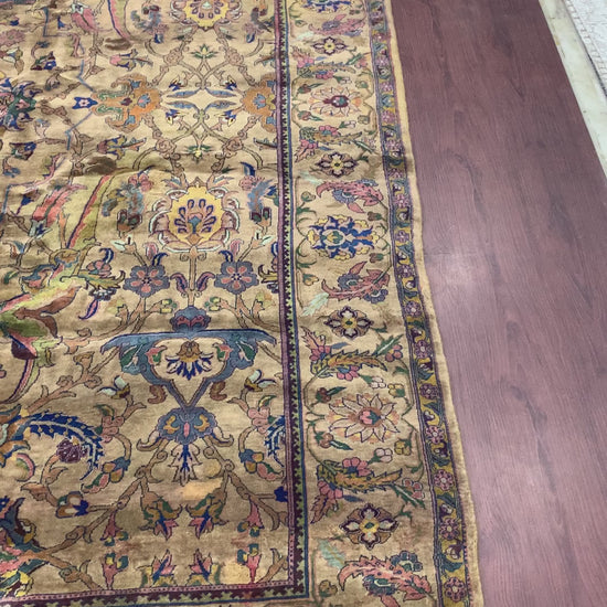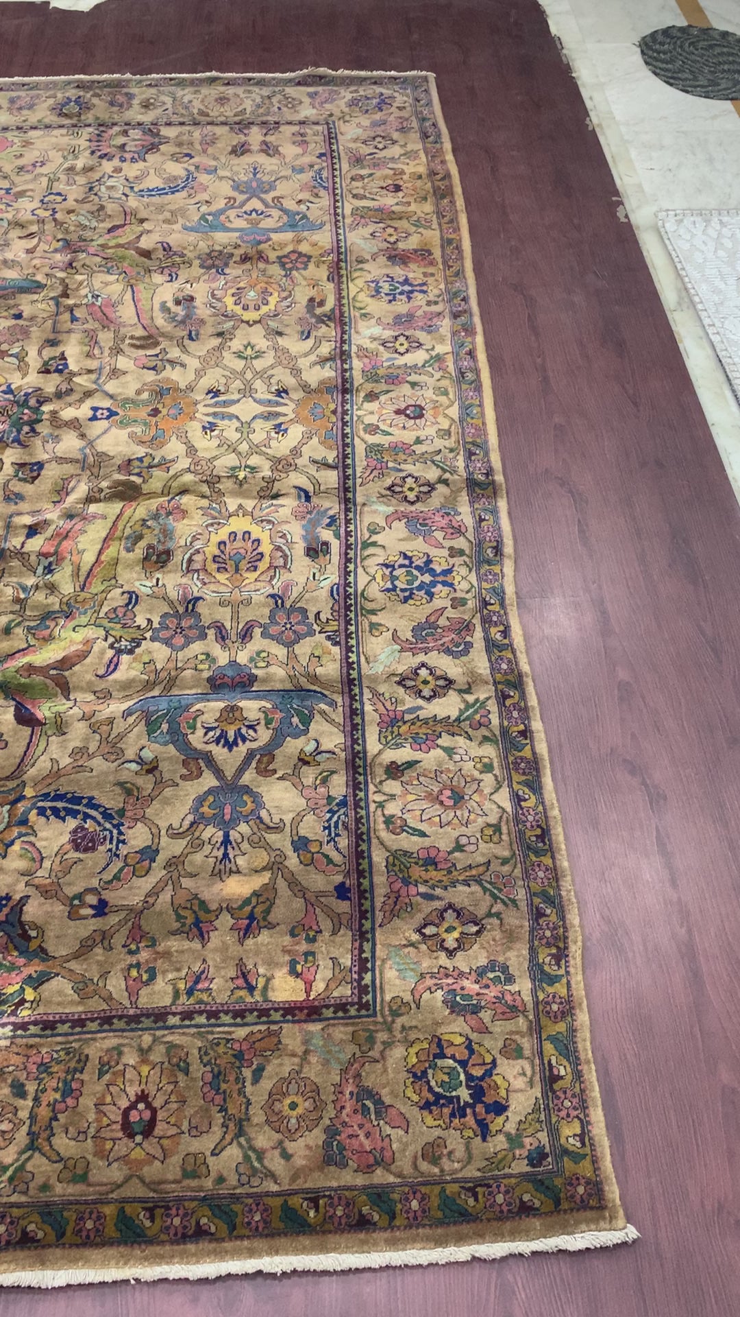 Camel and Blue, Pure Wool Antique Khotan Handknotted 9.11x10.8Ft 321x324Cms Area Rug