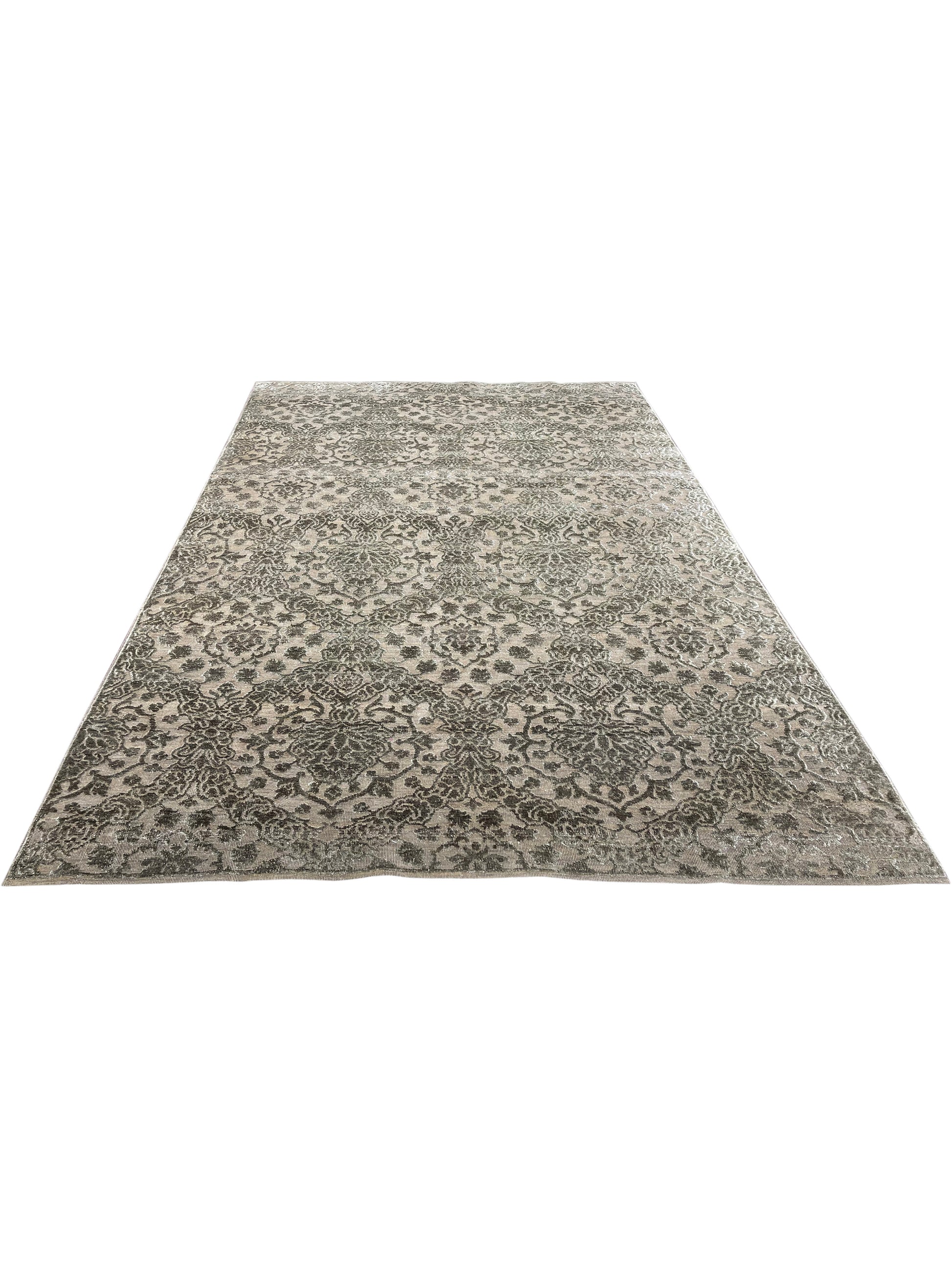 Modern Damask Handknotted Silk and Wool Oxidized Area Rug