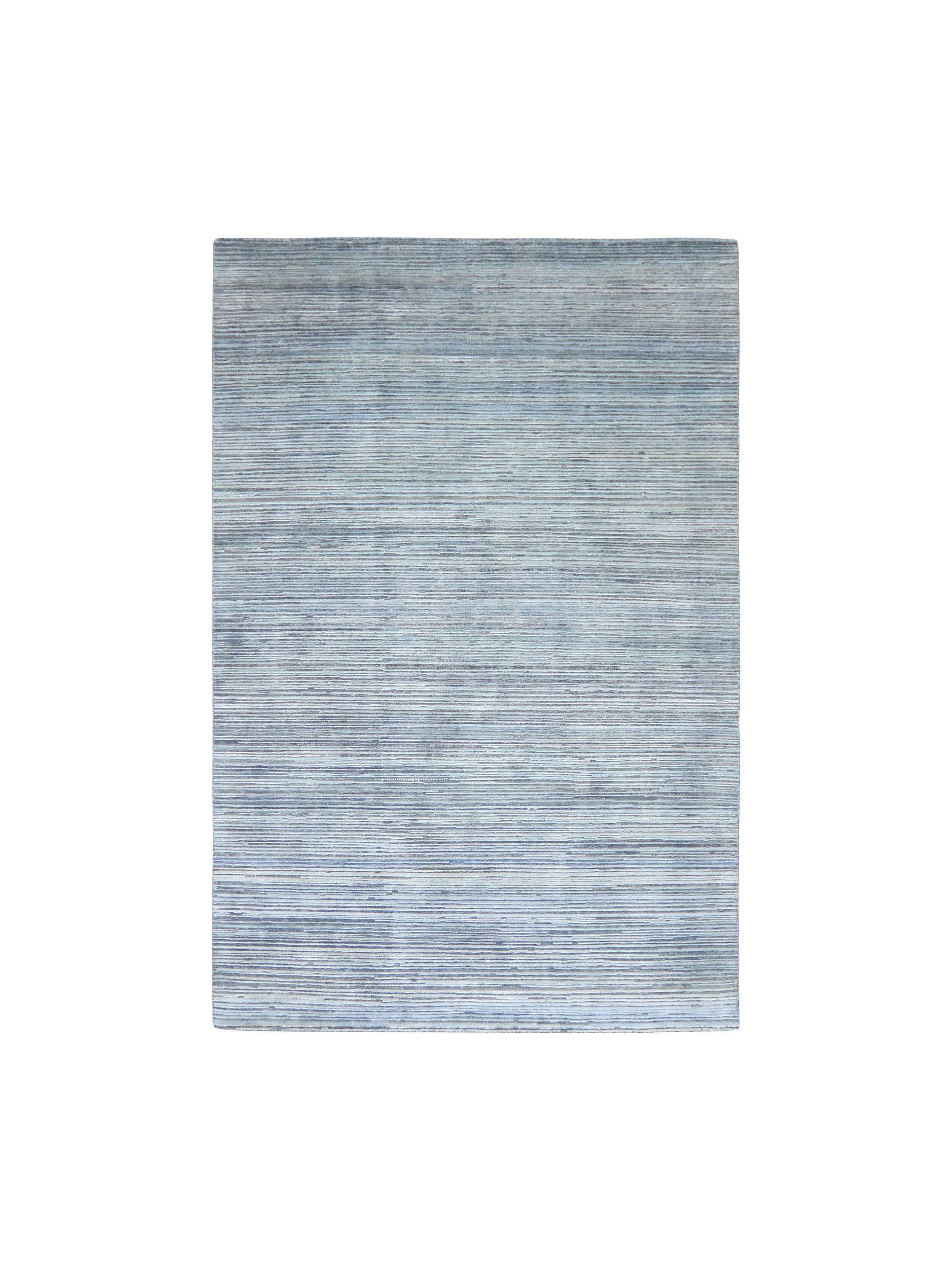 D. Grey Blue, Silk Wool Oxidized Modern Handknotted 6.0x9.2Ft 182x280Cms Area Rug