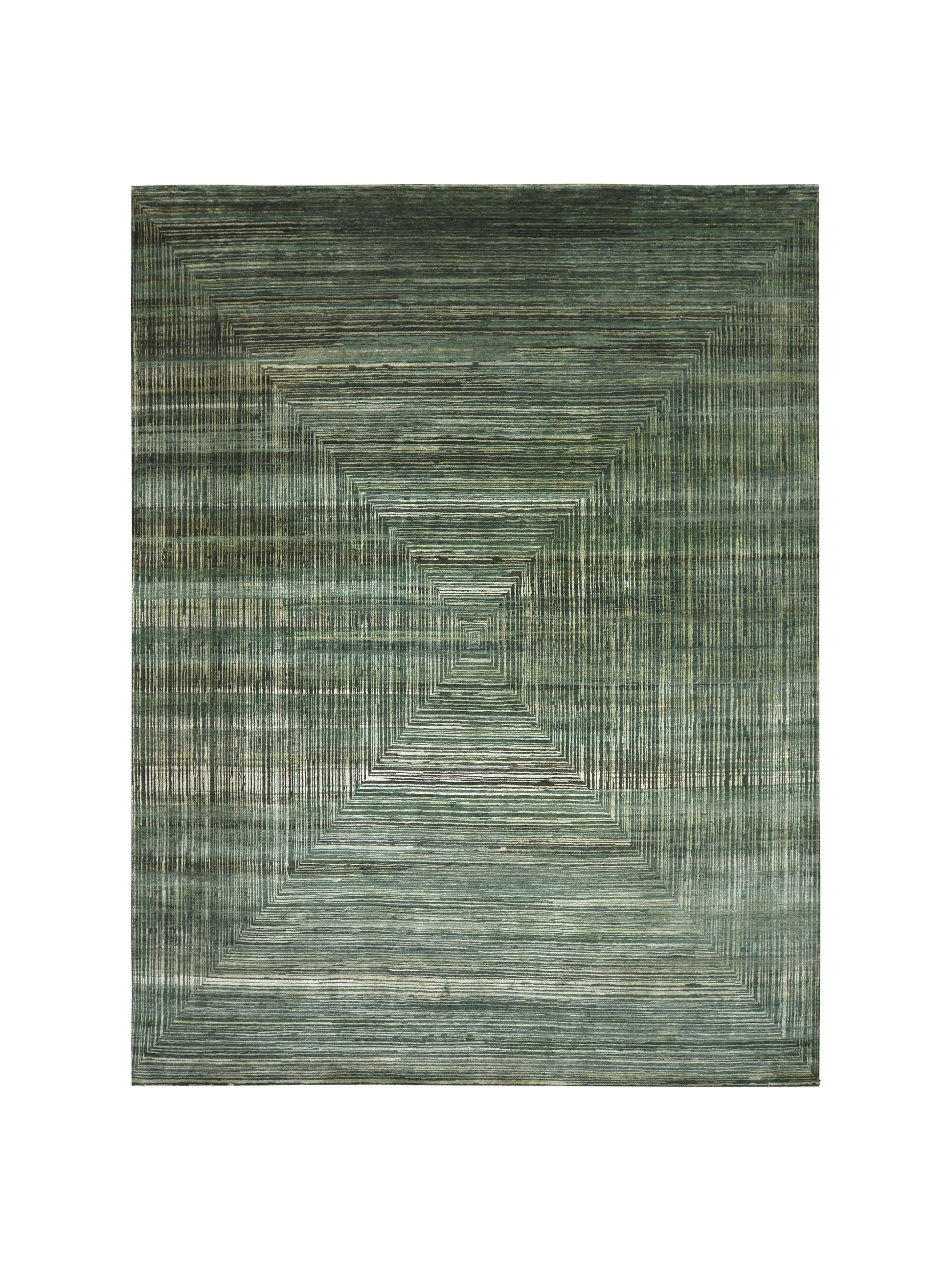 Deep Green, Silk Wool Oxidized Modern Handknotted 9.0x12.0Ft 274x365Cms Area Rug