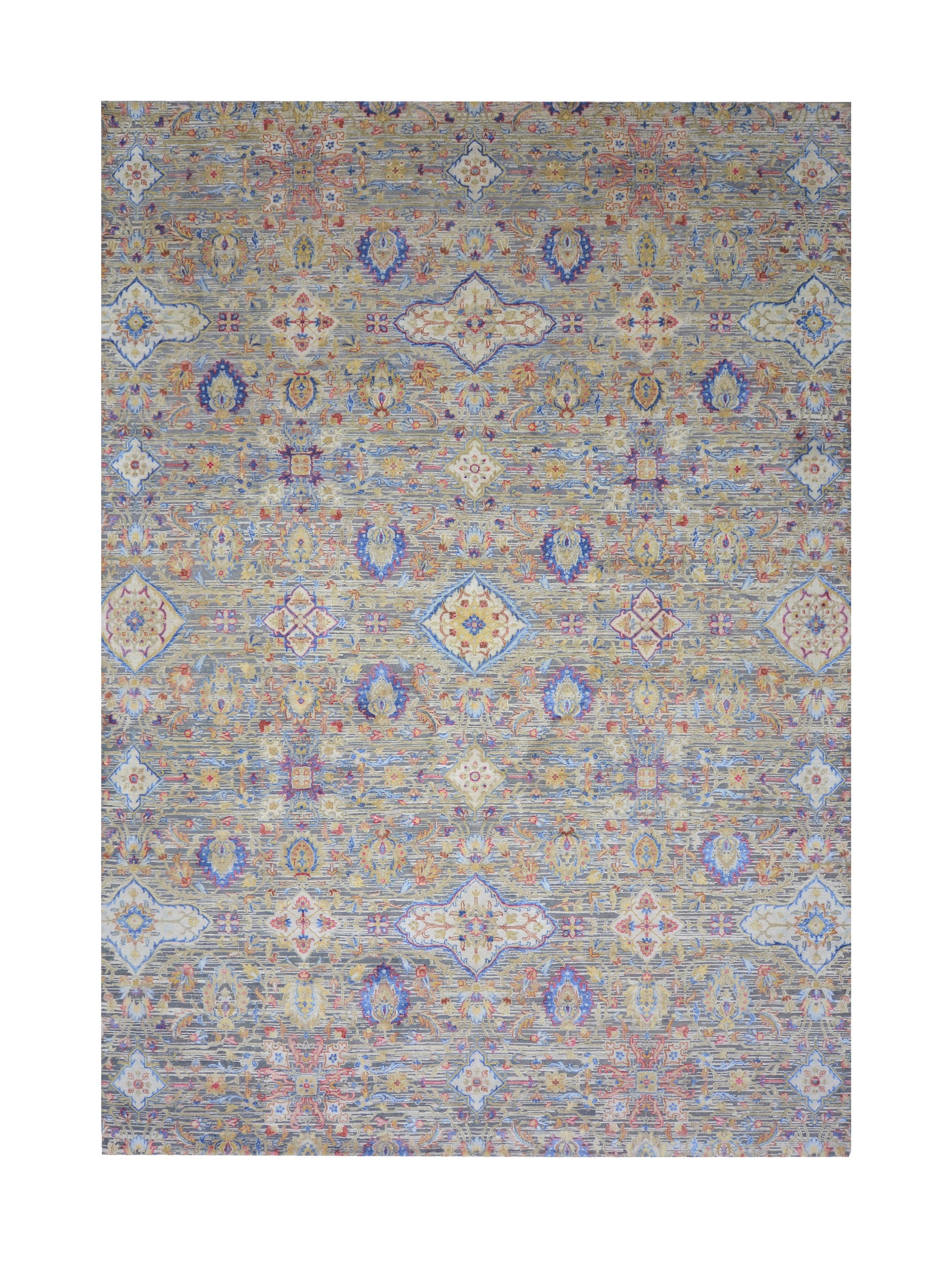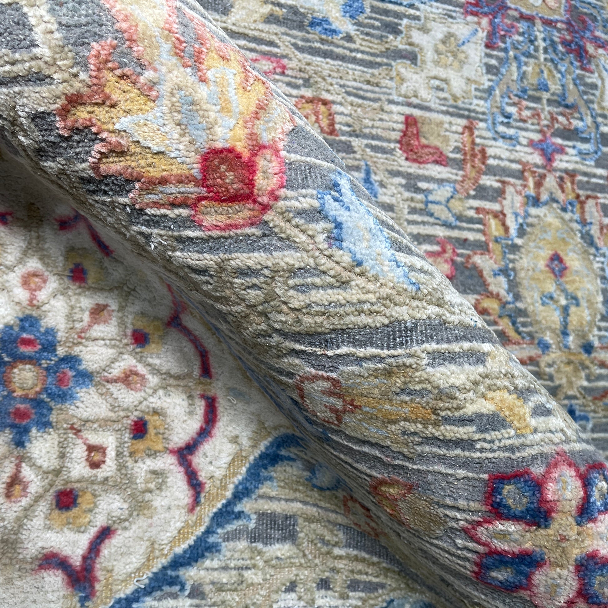Gery and Ivory Silk and Wool Oxidized Persian Tabriz Transitional Handknotted 10.0x14.2ft 304x432Cms Area Rug