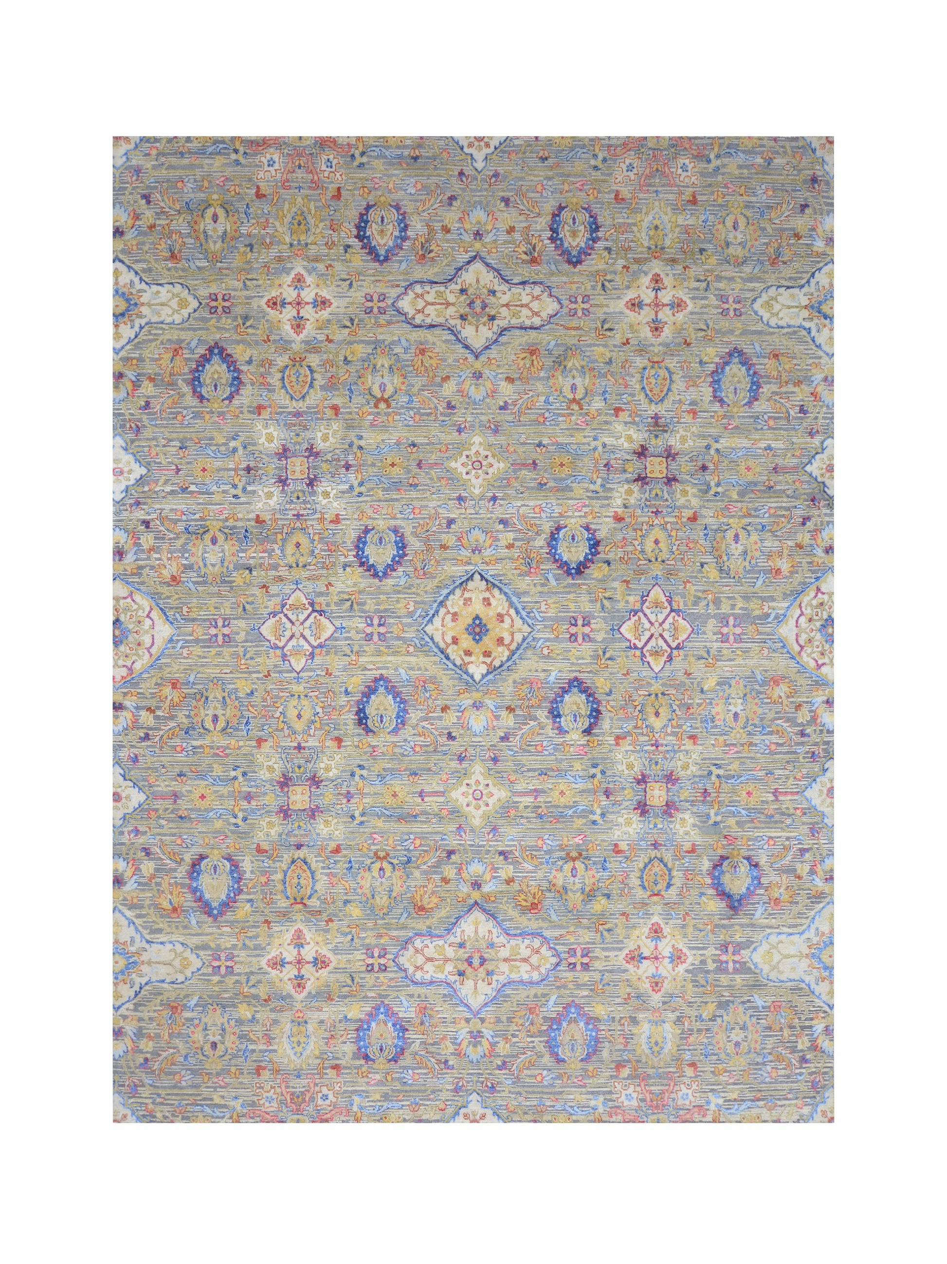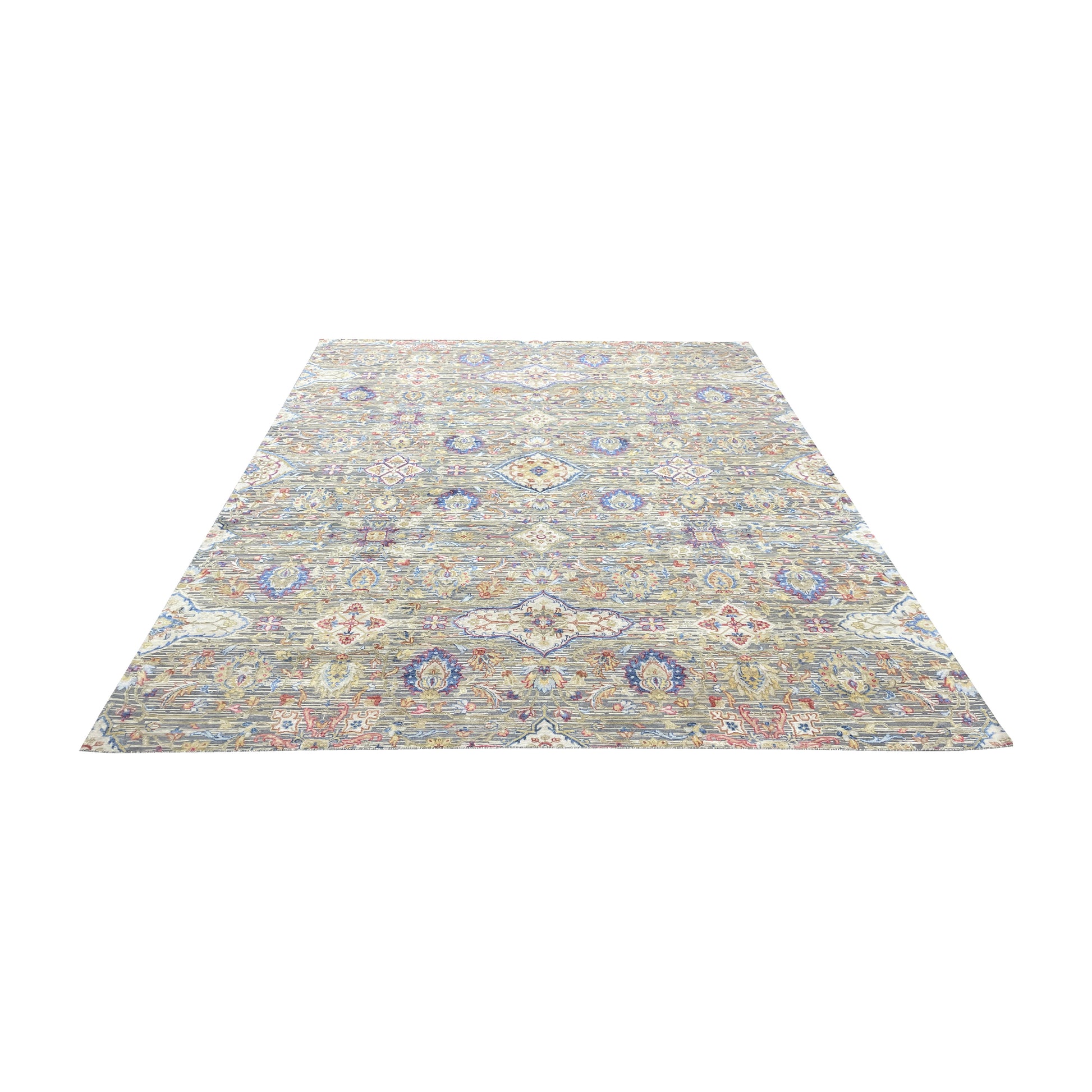 Gery and Ivory Silk and Wool Oxidized Persian Tabriz Transitional Handknotted 8.11x12.2ft 271x371Cms Area Rug