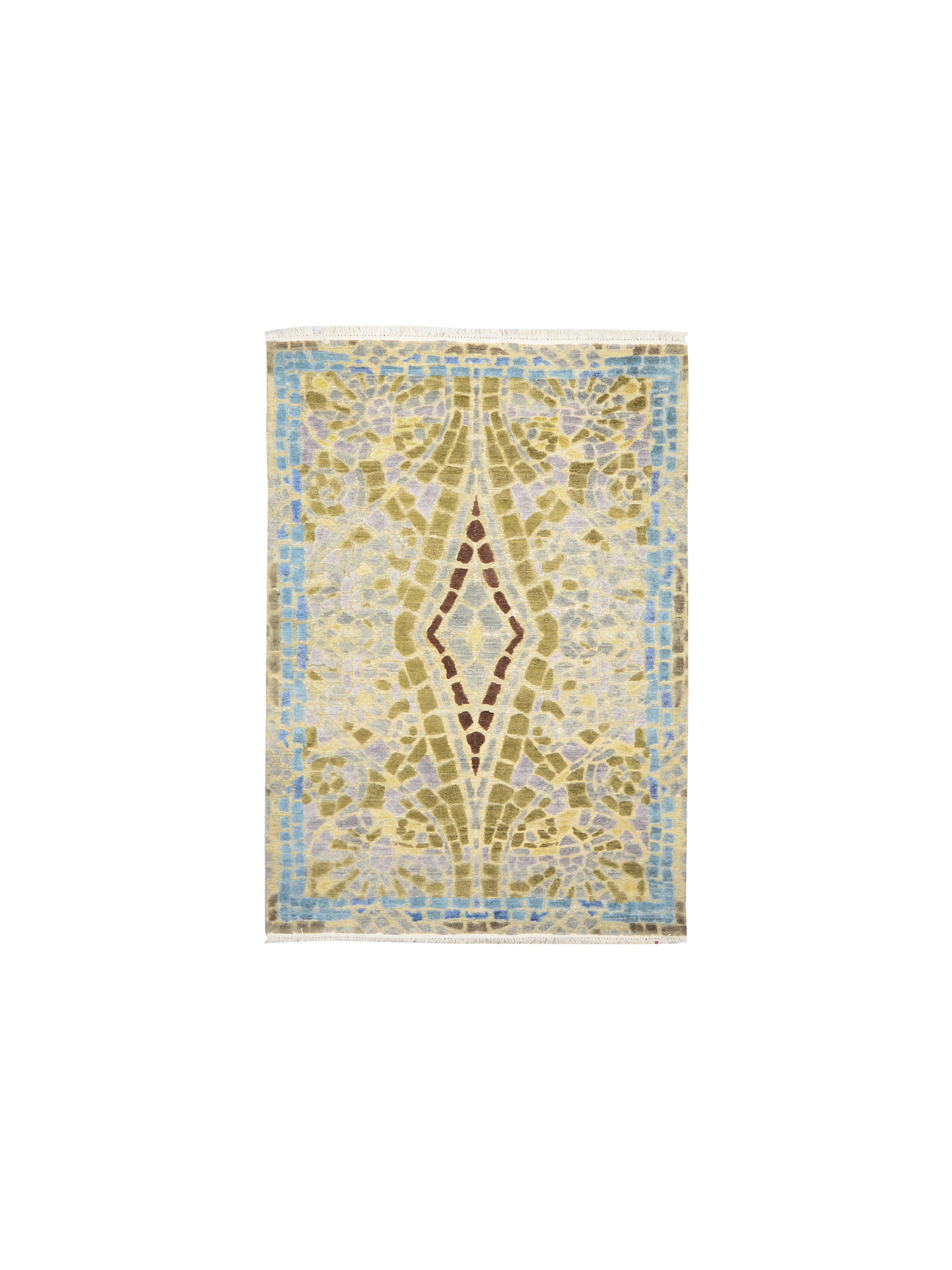 Grey and Gold, Silk and Wool Oxidized Modern Handknotted 4.0x6.1Ft 122x185Cms Area Rug