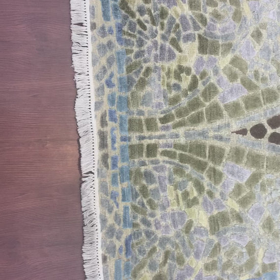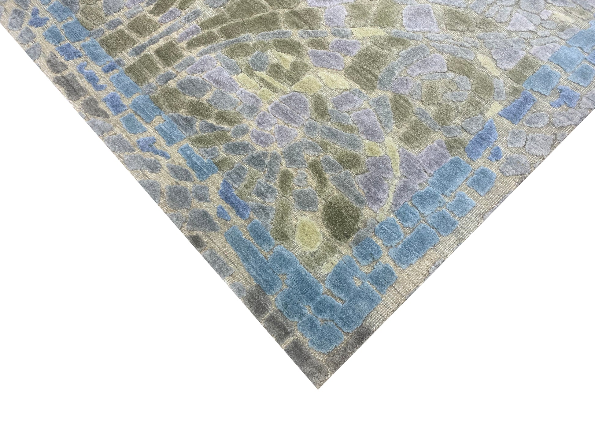 Modern Handknotted Silk and Wool Oxidized Area Rug