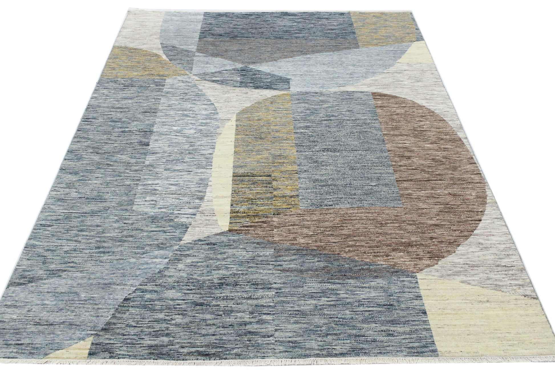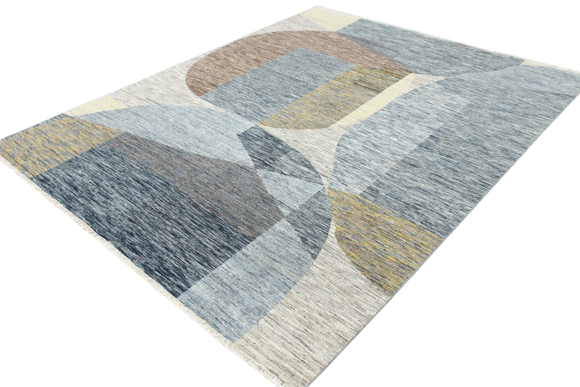 Grey Multy, Pure Wool Modern Abrash Handknotted 7.11x10.0Ft 241x305Cms Area Rug