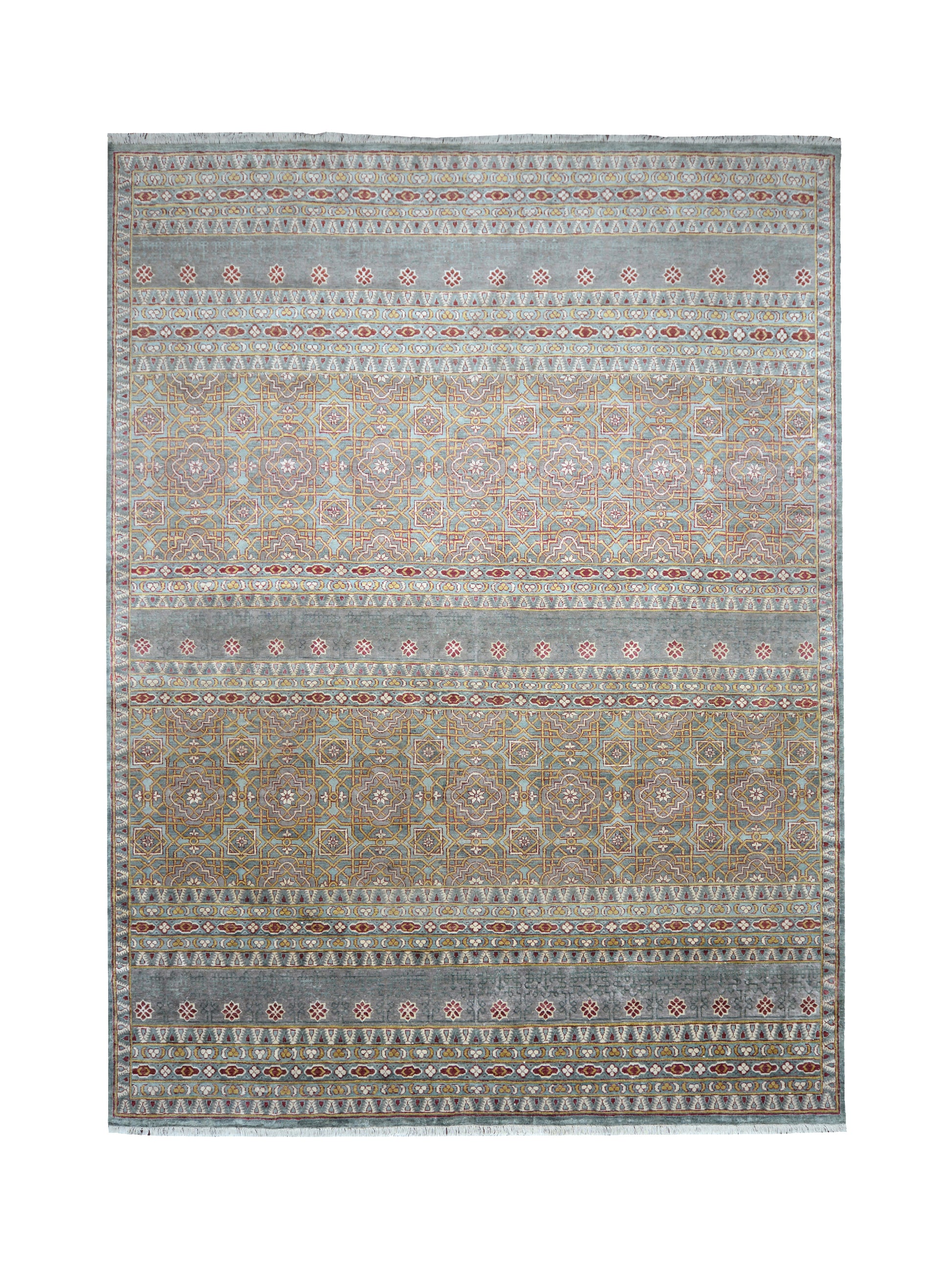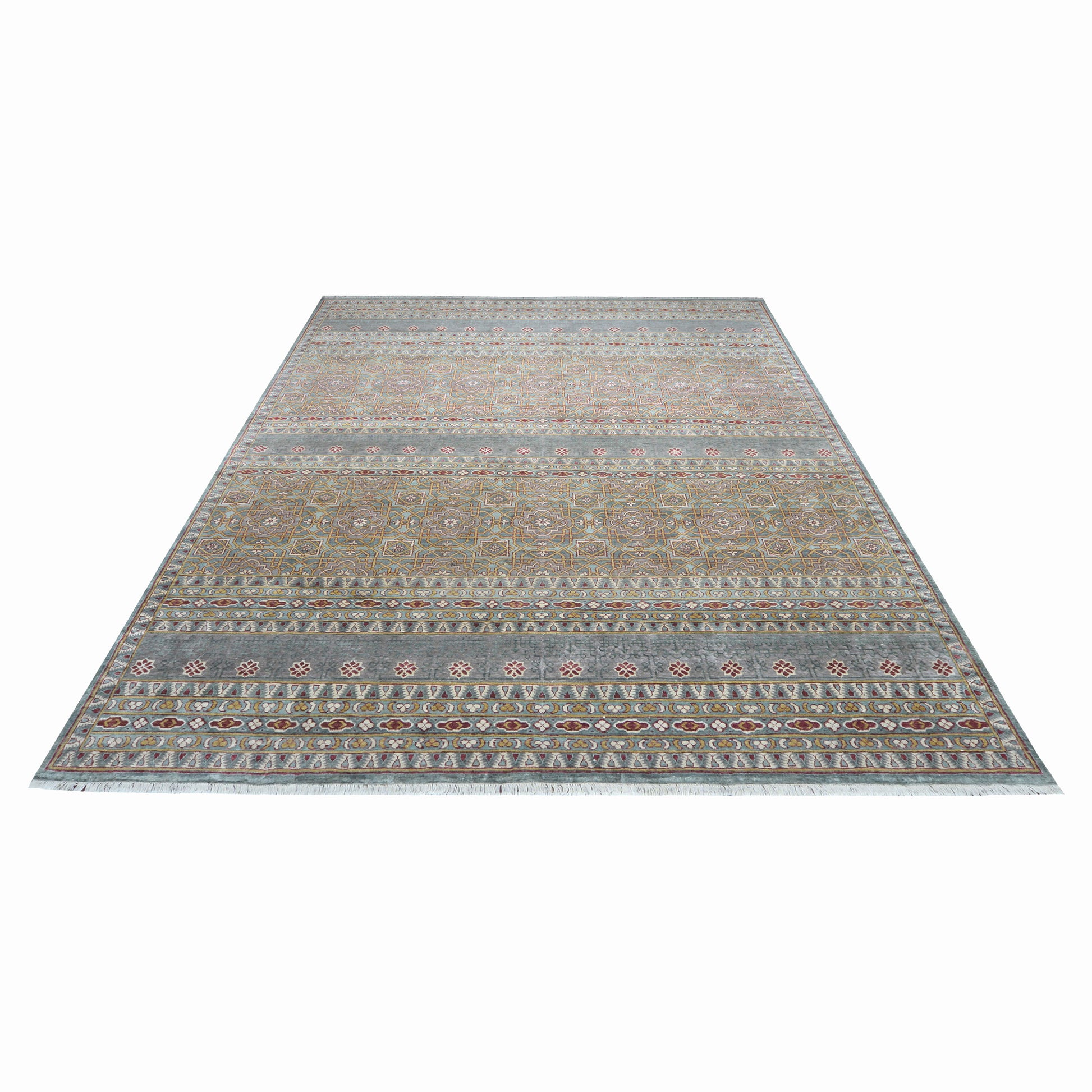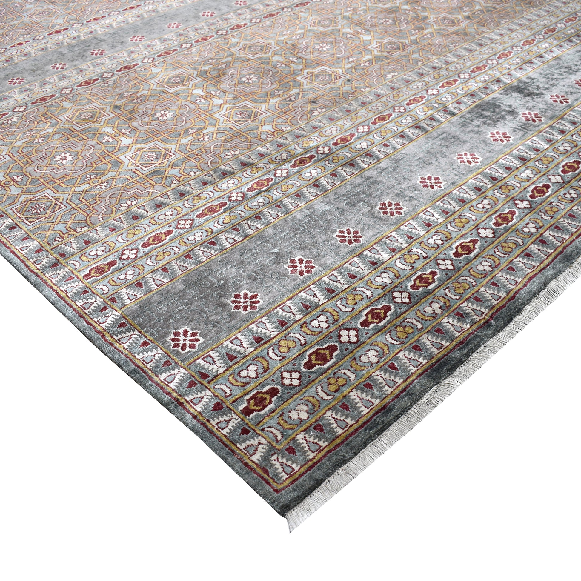 Transitional Geometrical Handknotted Pure Silk Area Rug