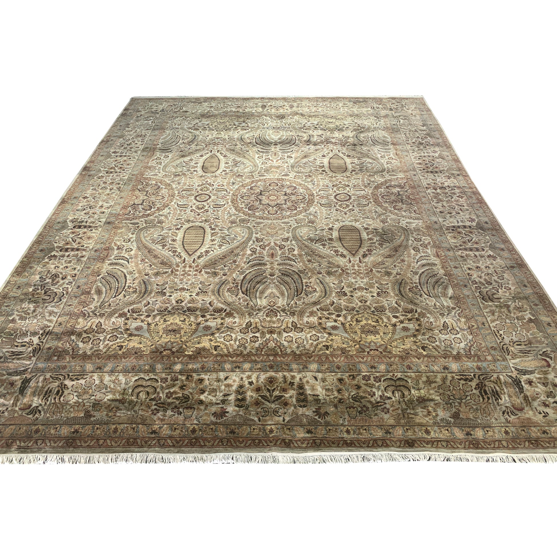Ivory and Beige, Pure Wool Regular Traditional Persian Handknotted 11.10x15.6Ft 360x471Cms Area Rug