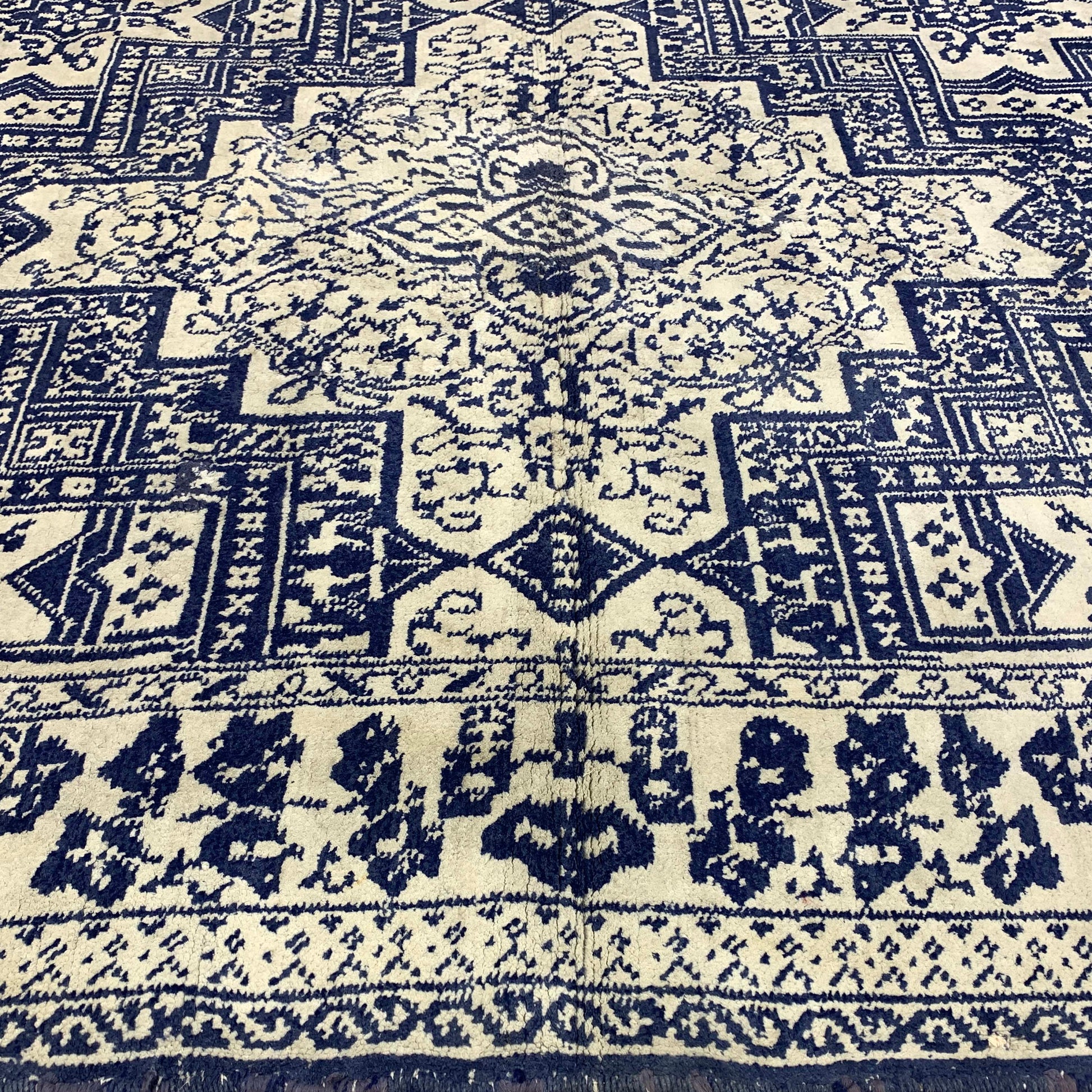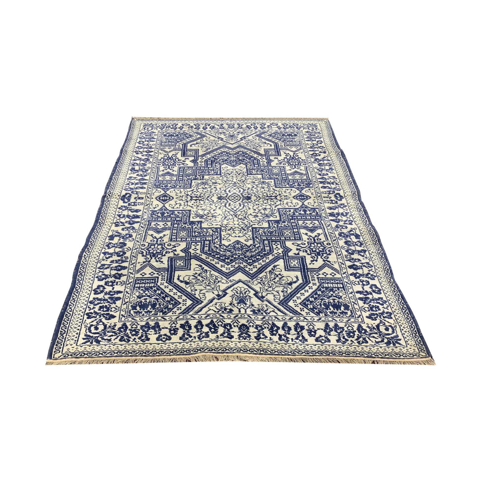 Ivory and Blue, Pure Cotton Antique Khotan Handknotted 4.5x6.10Ft 134x209Cms Area Rug