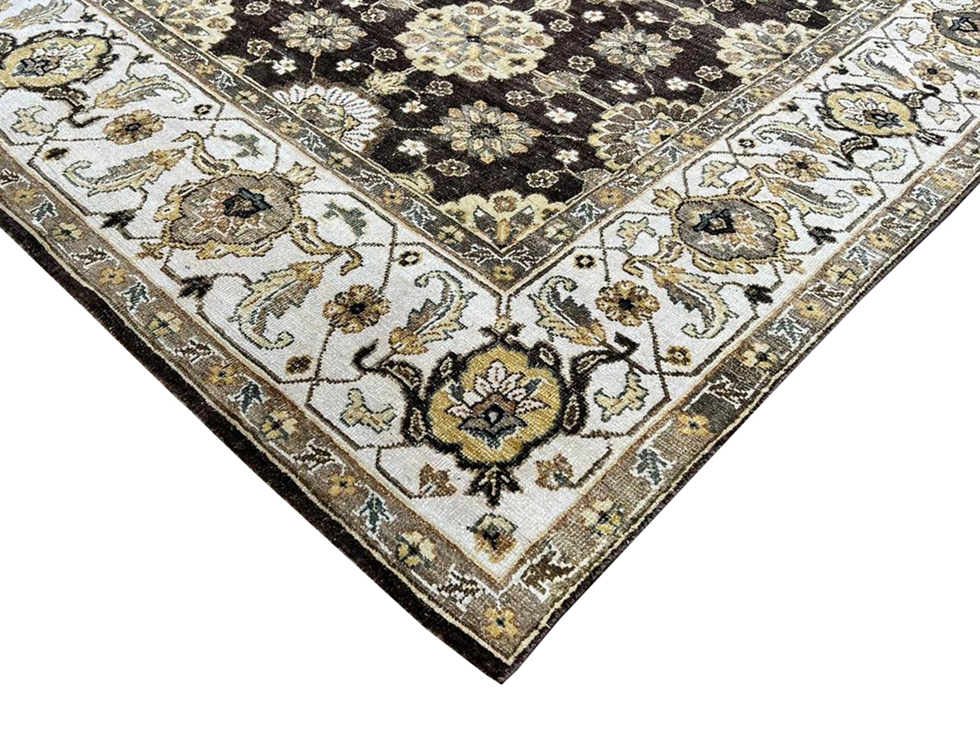 Ivory and Brown, Pure Silk Zero Pile Traditional Handknotted 8.0x10.0Ft 245x305Cms Area Rug