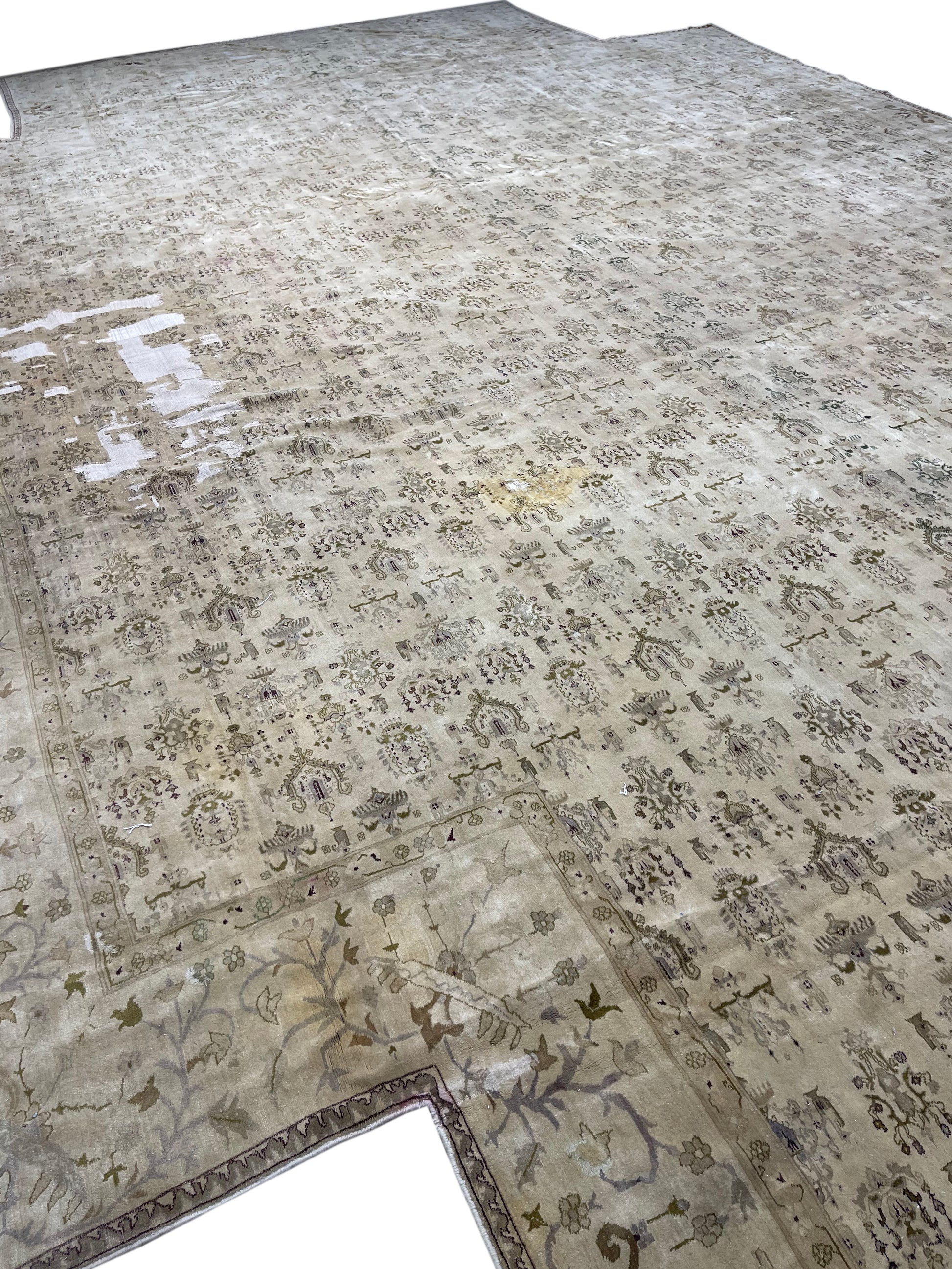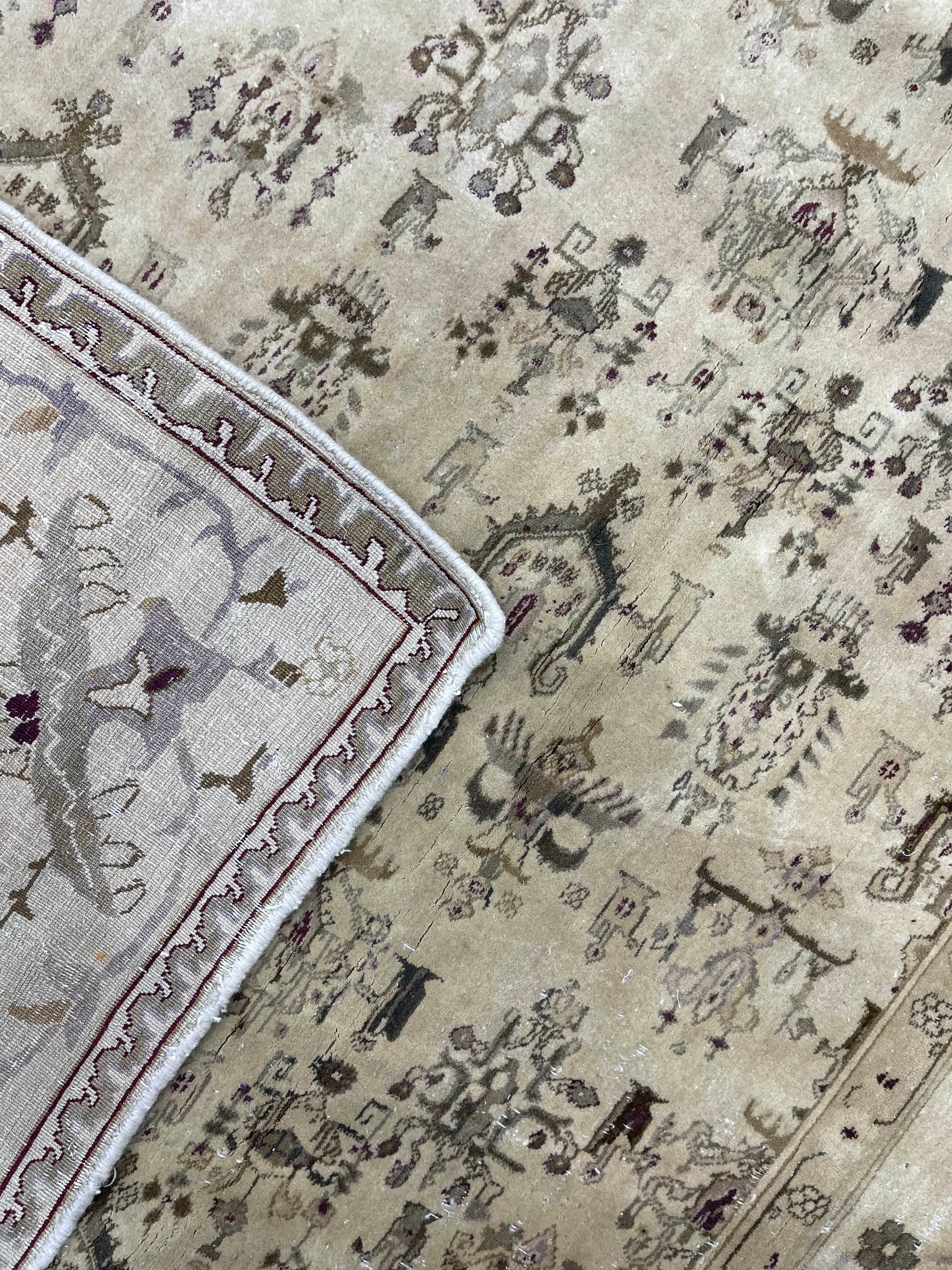 Ivory and Brown, Pure Wool Antique Handknotted 10.10x14.10Ft 329x451Cms Area Rug