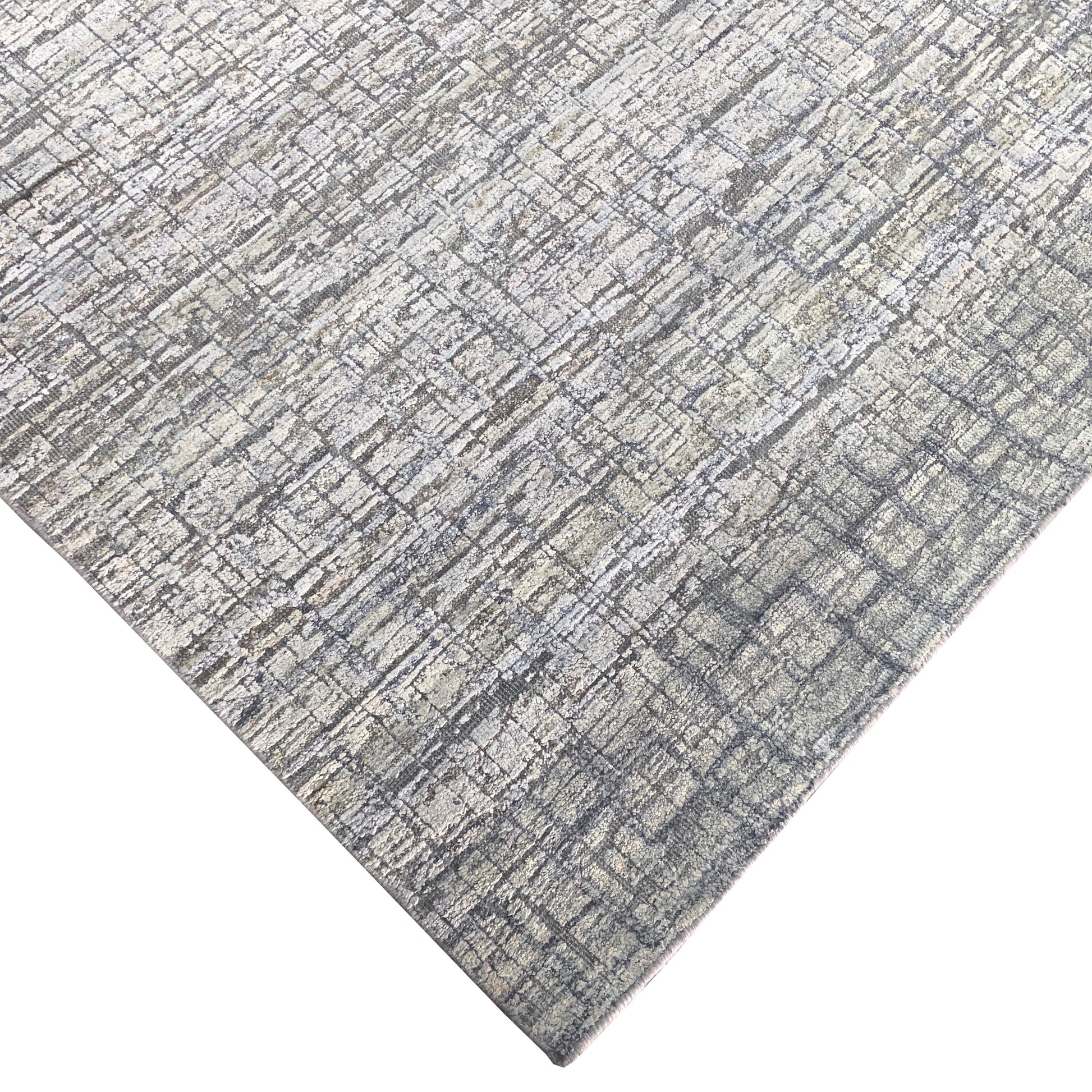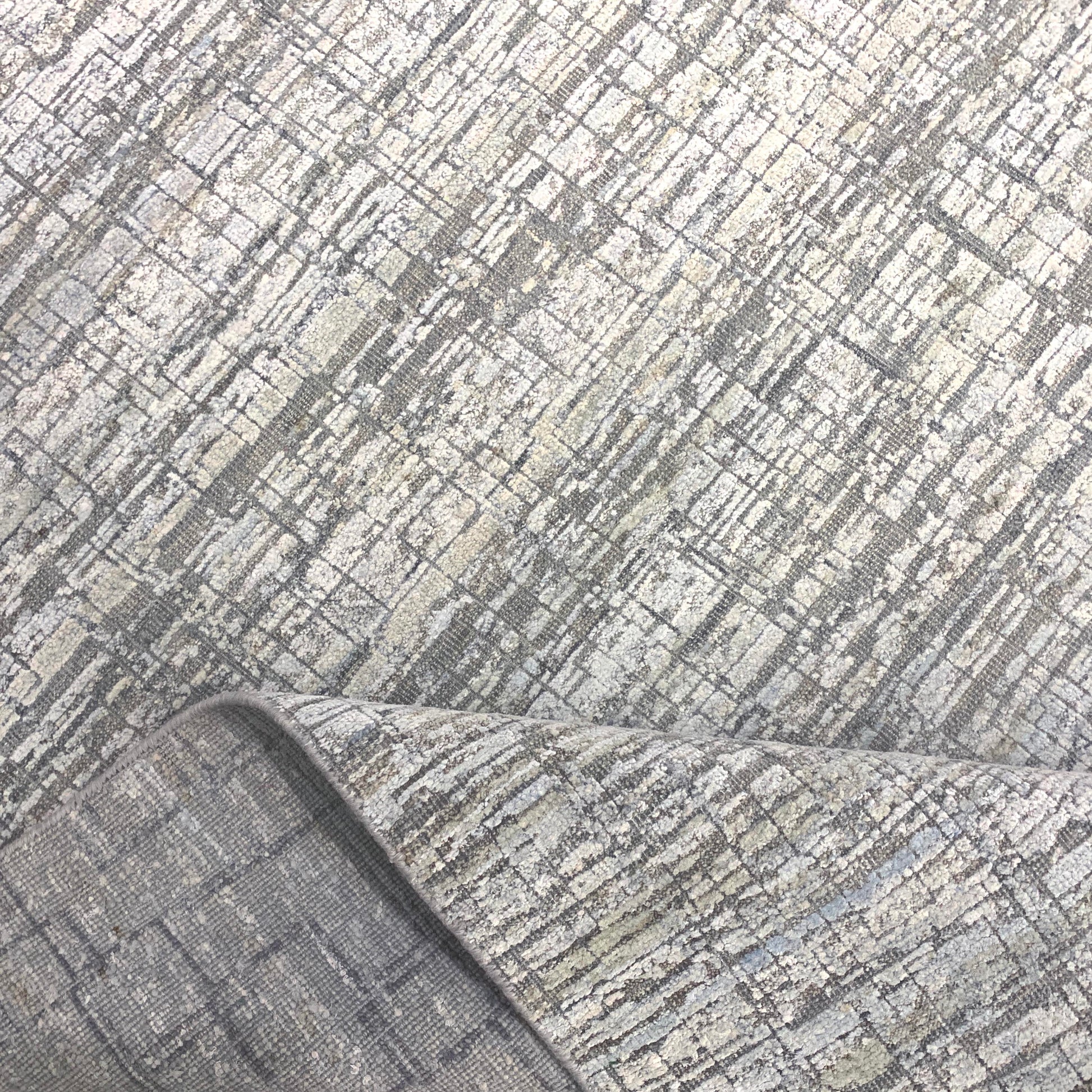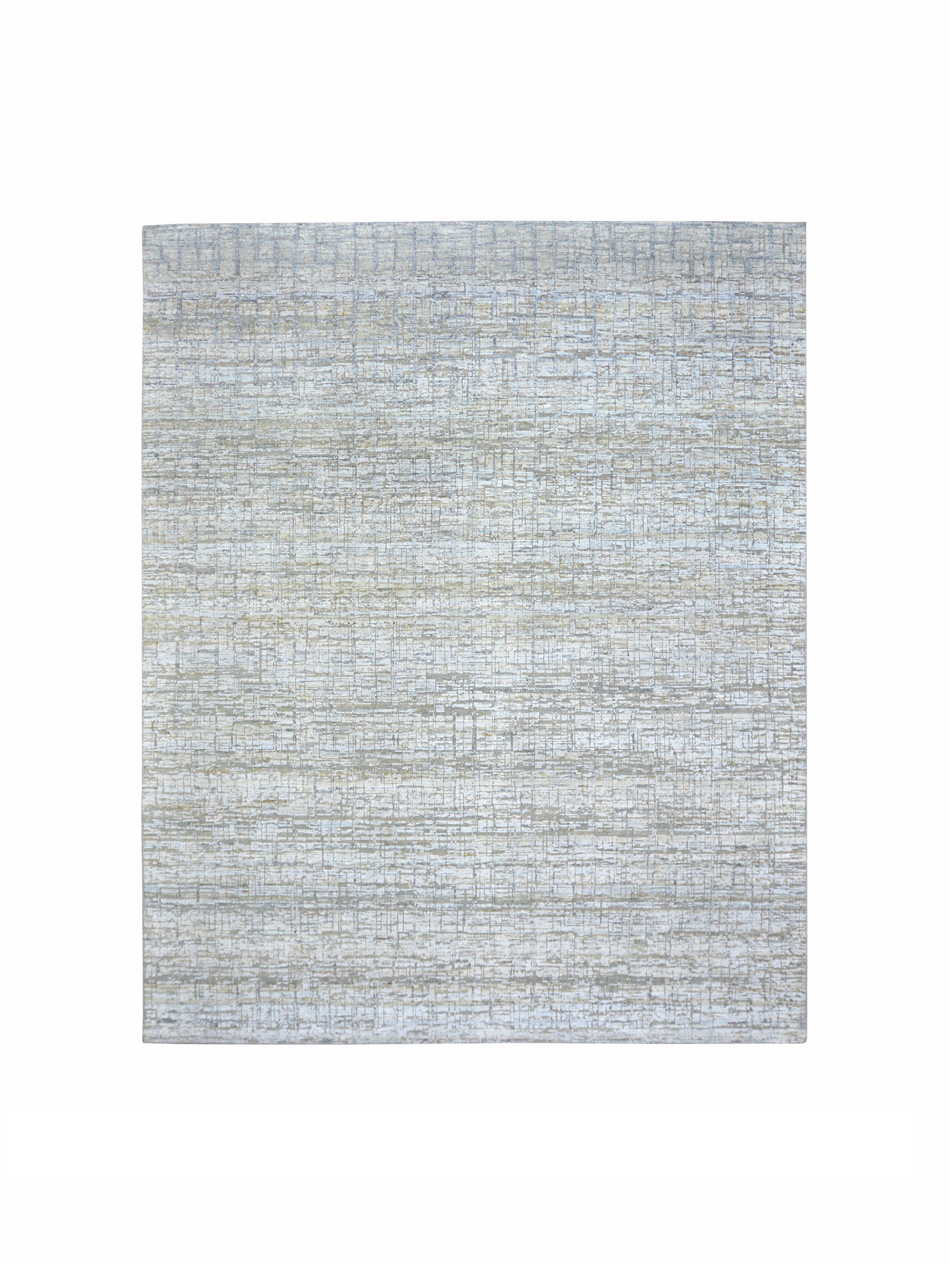 Ivory and Grey, Silk and Wool Oxidized Modern Handknotted 8.0x10.0Ft 245x305Cms Area Rug