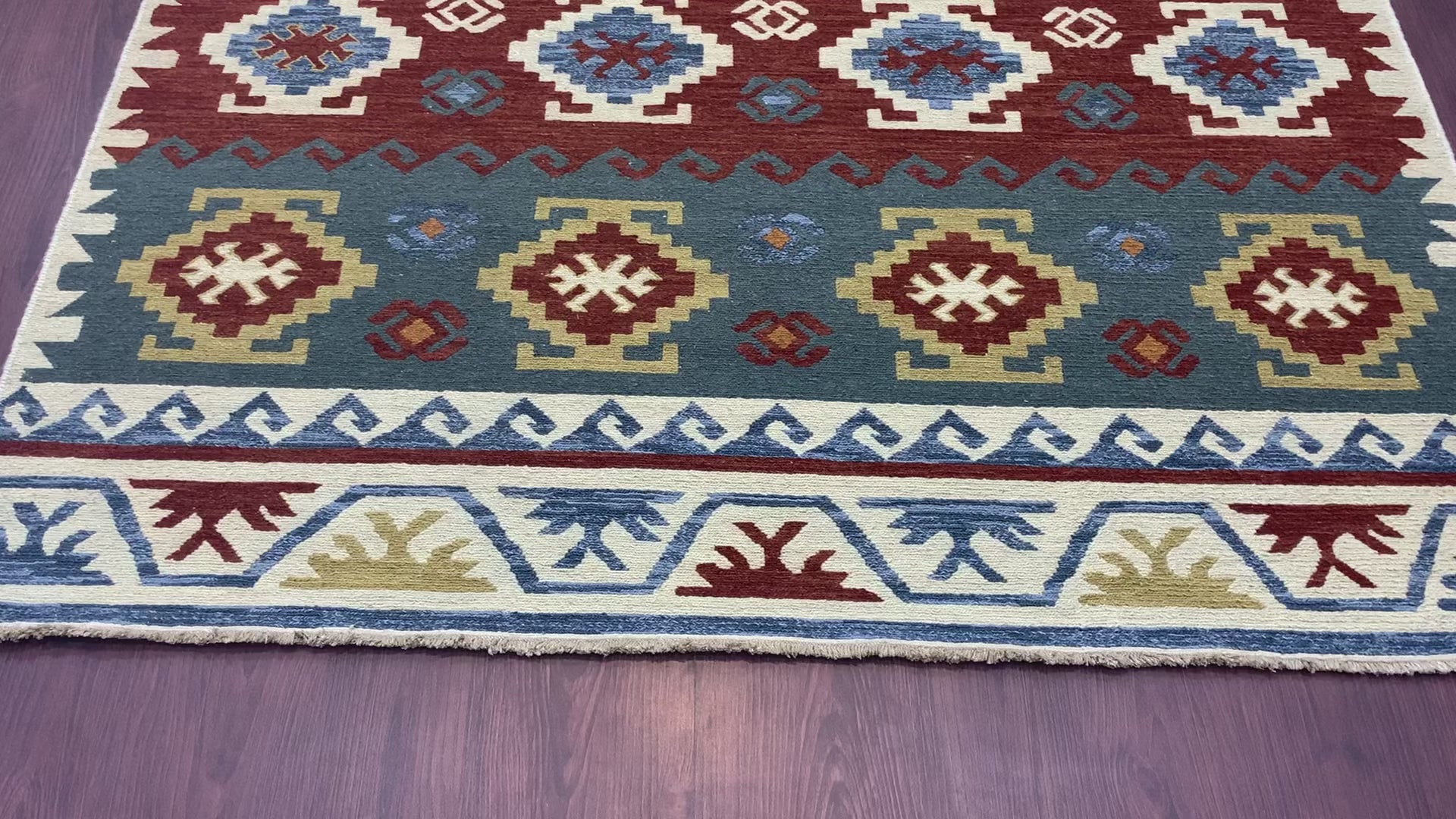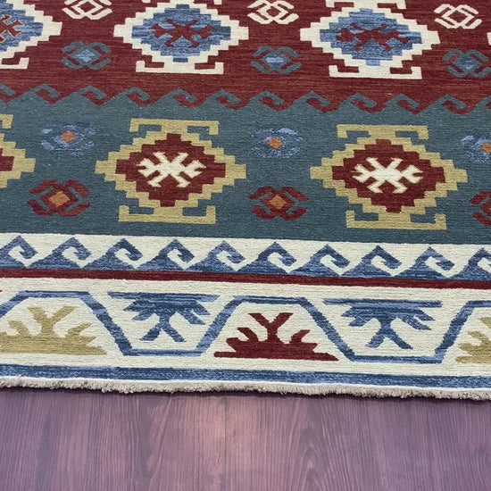 Traditional Kazak Soumak Handknotted Pure Wool Lo-Pile Area Rug