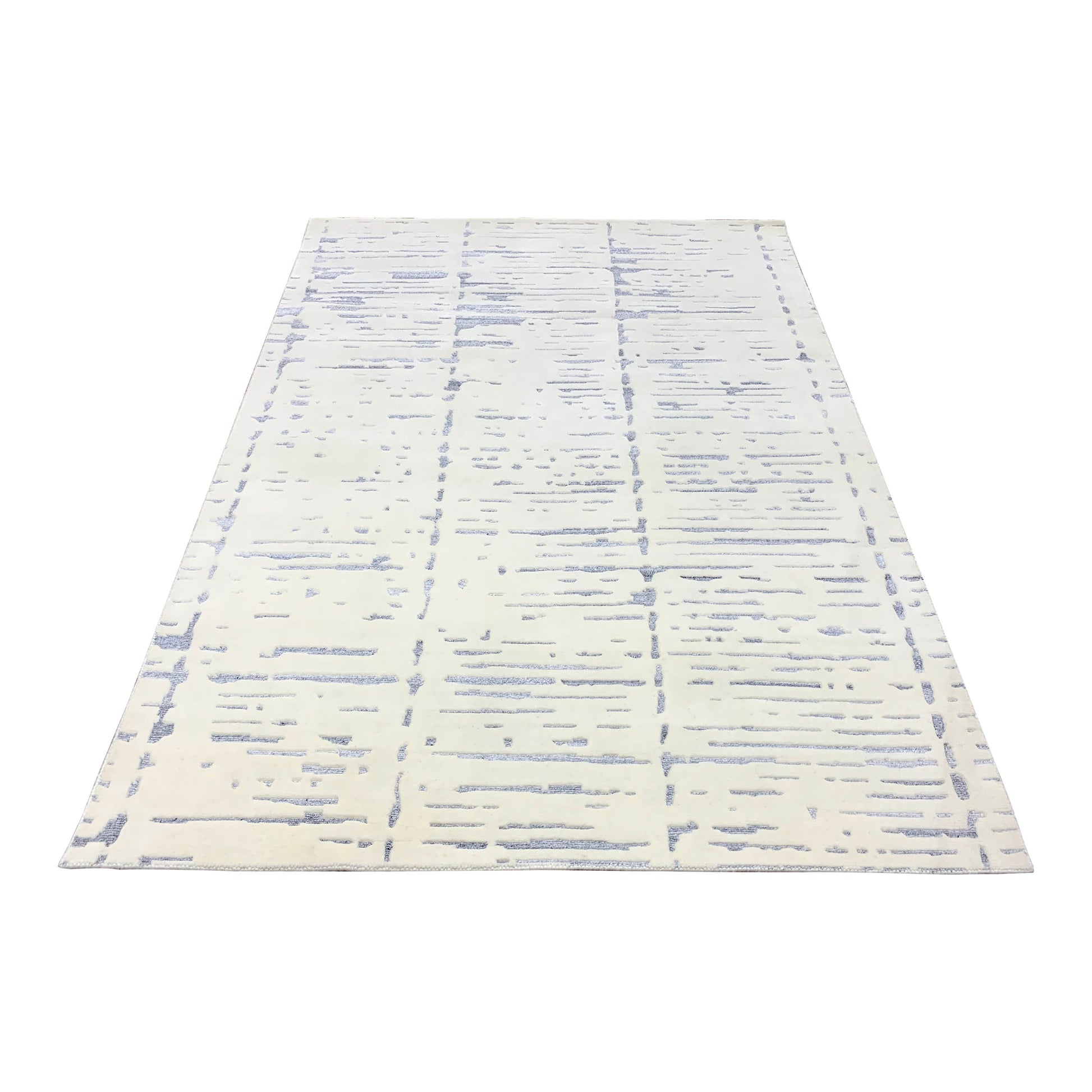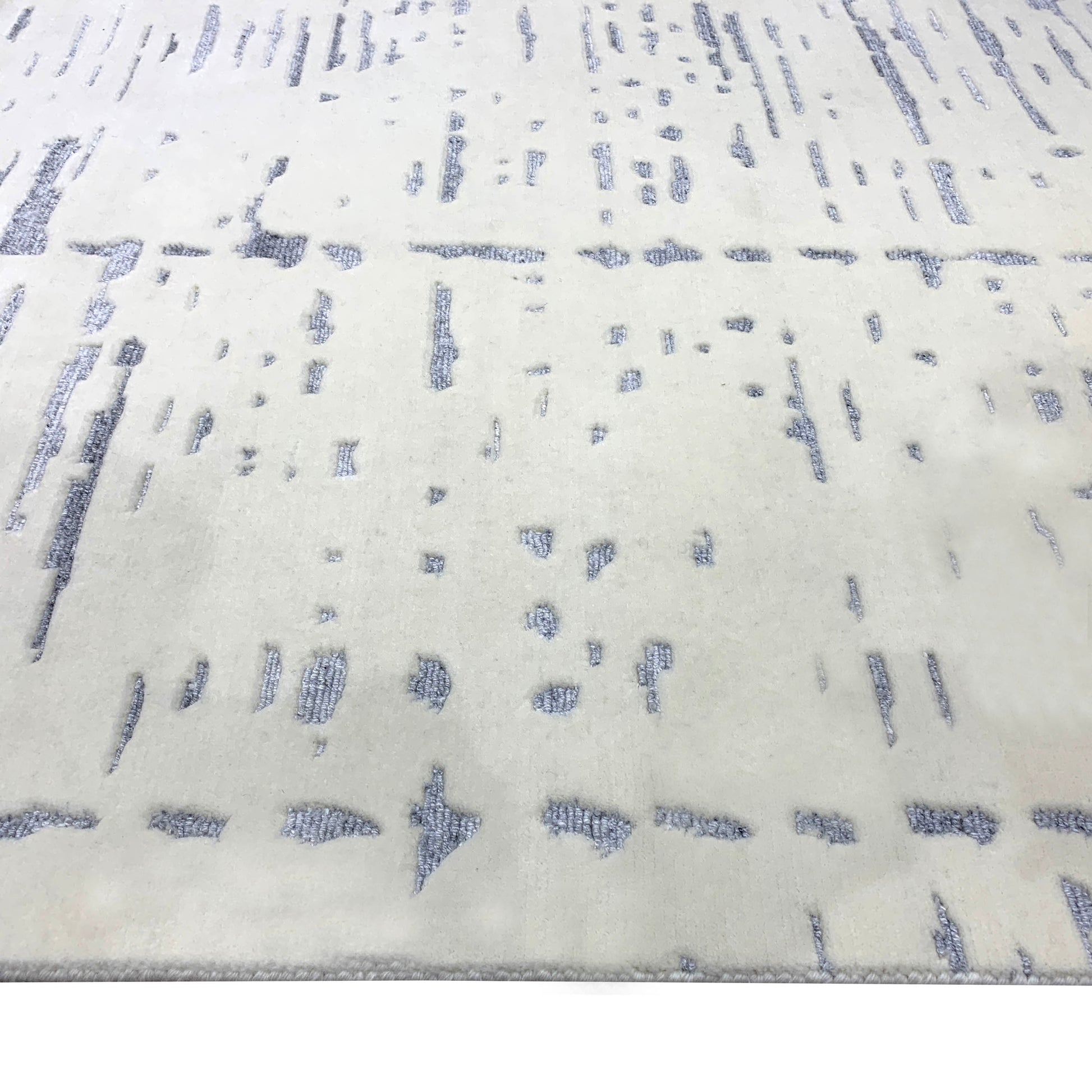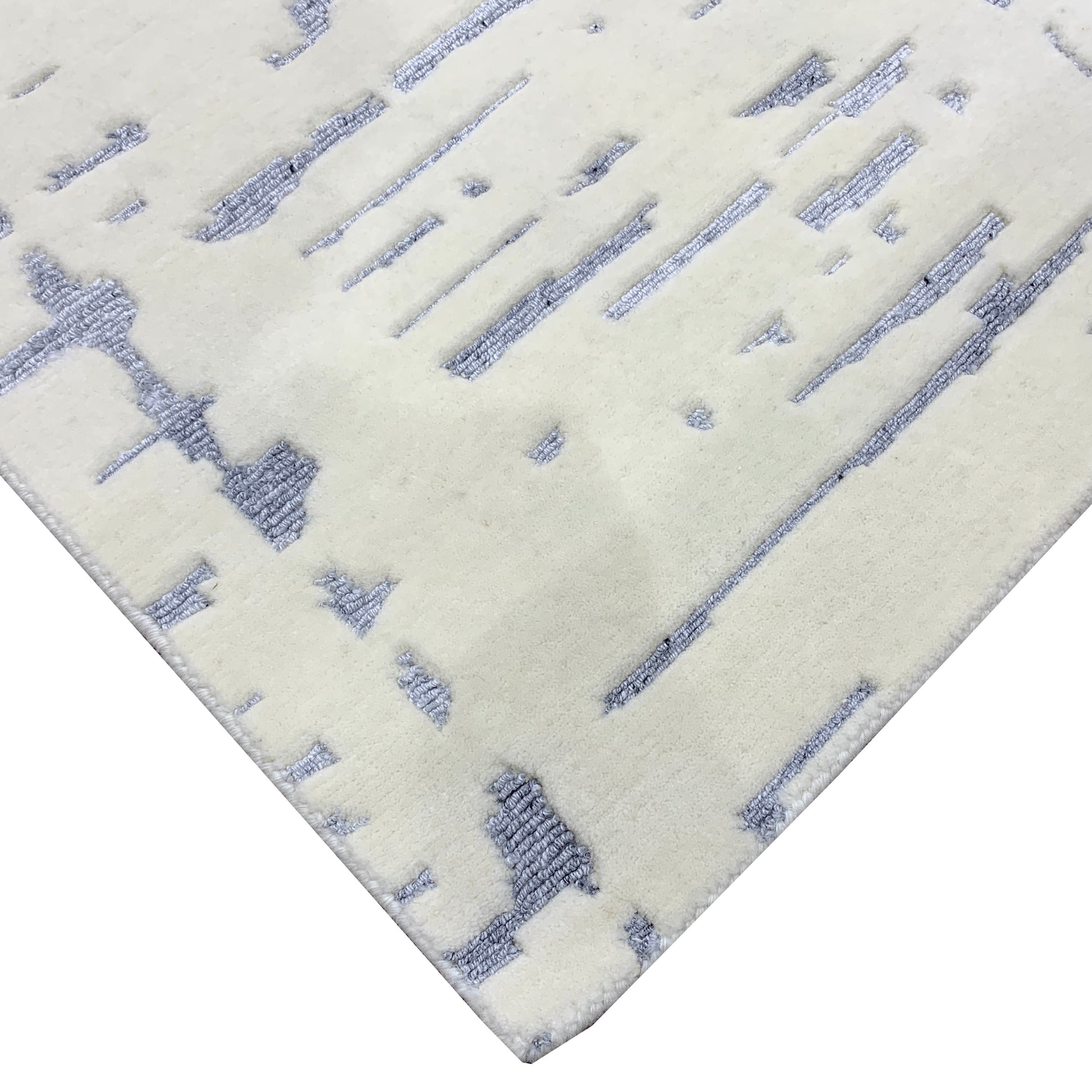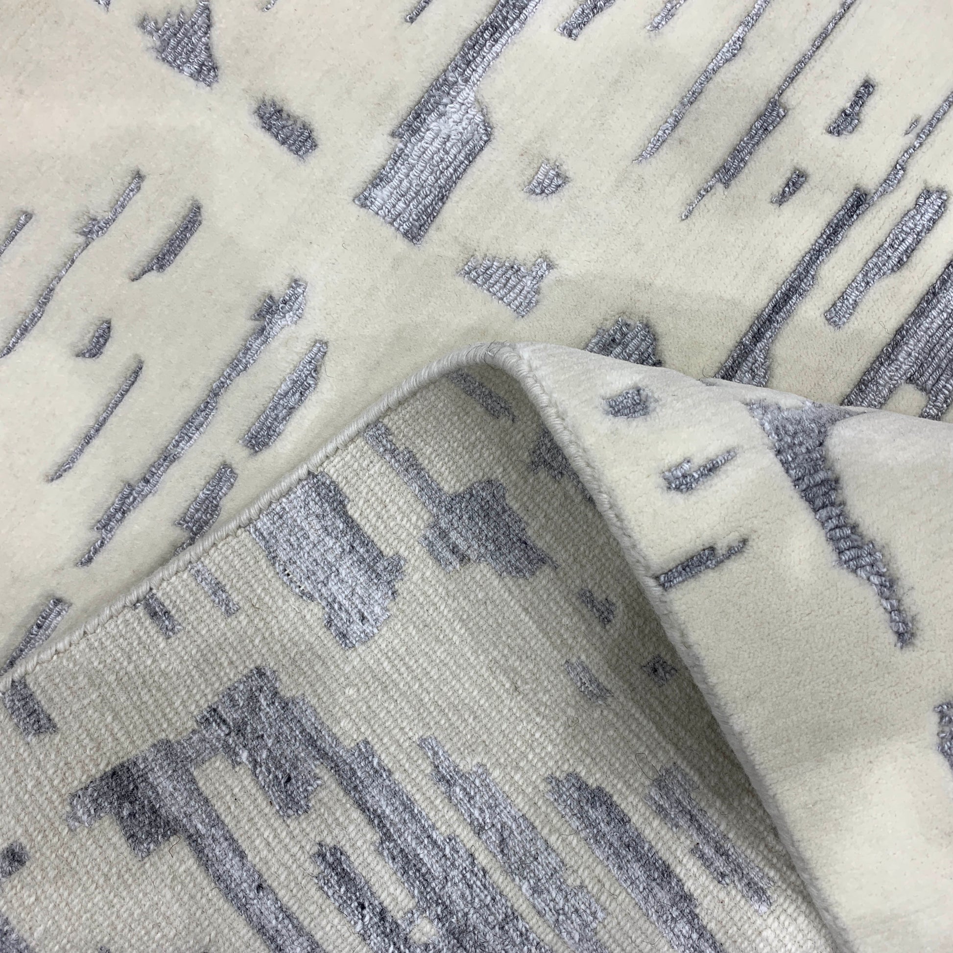 Ivory and Silver, Viscose and Wool Modern Geometrical Handknotted 5.1x7.1Ft 156x215Cms Area Rug