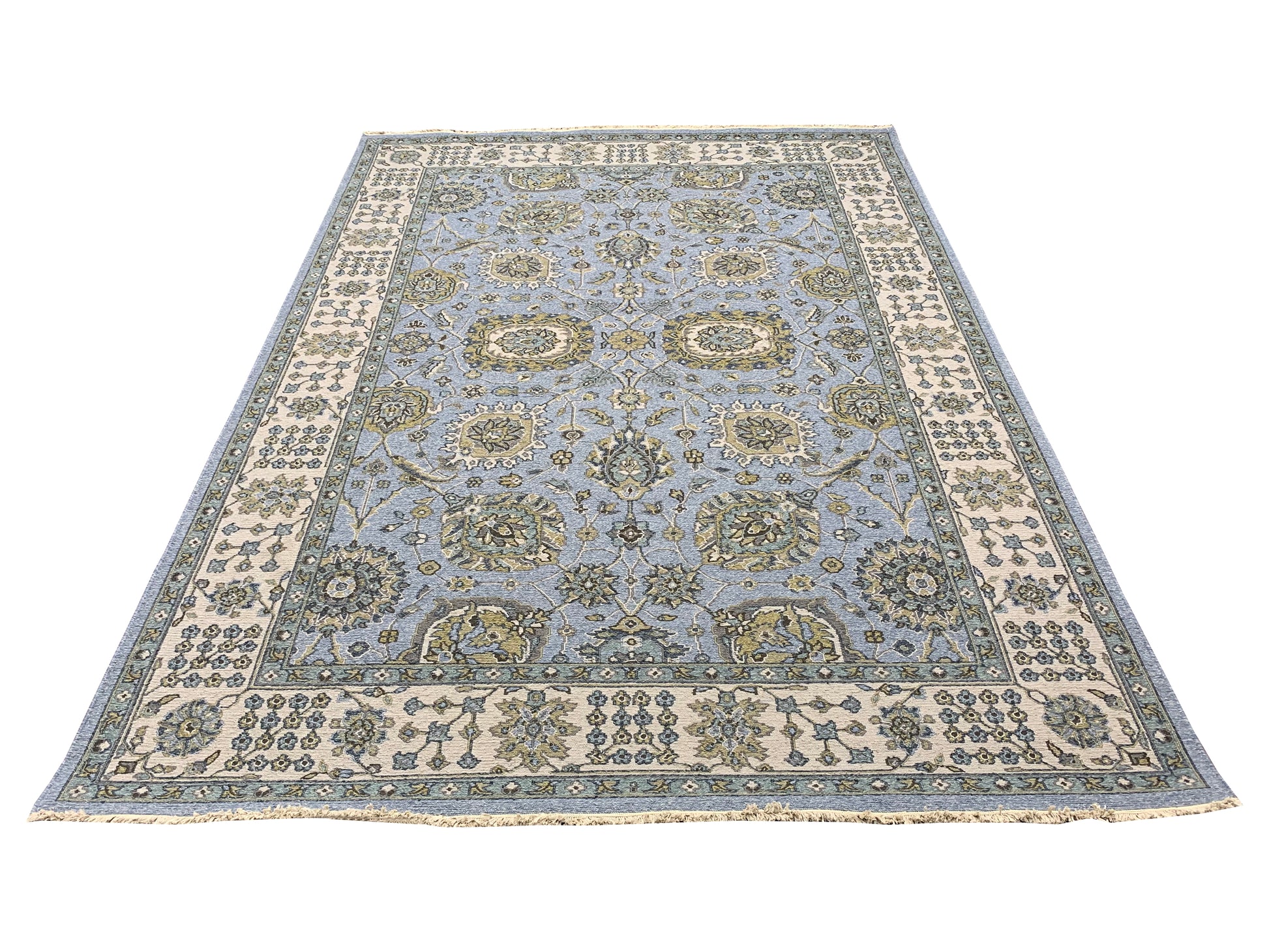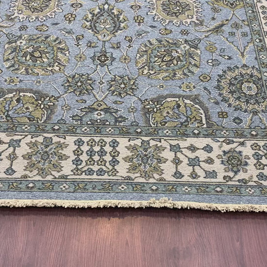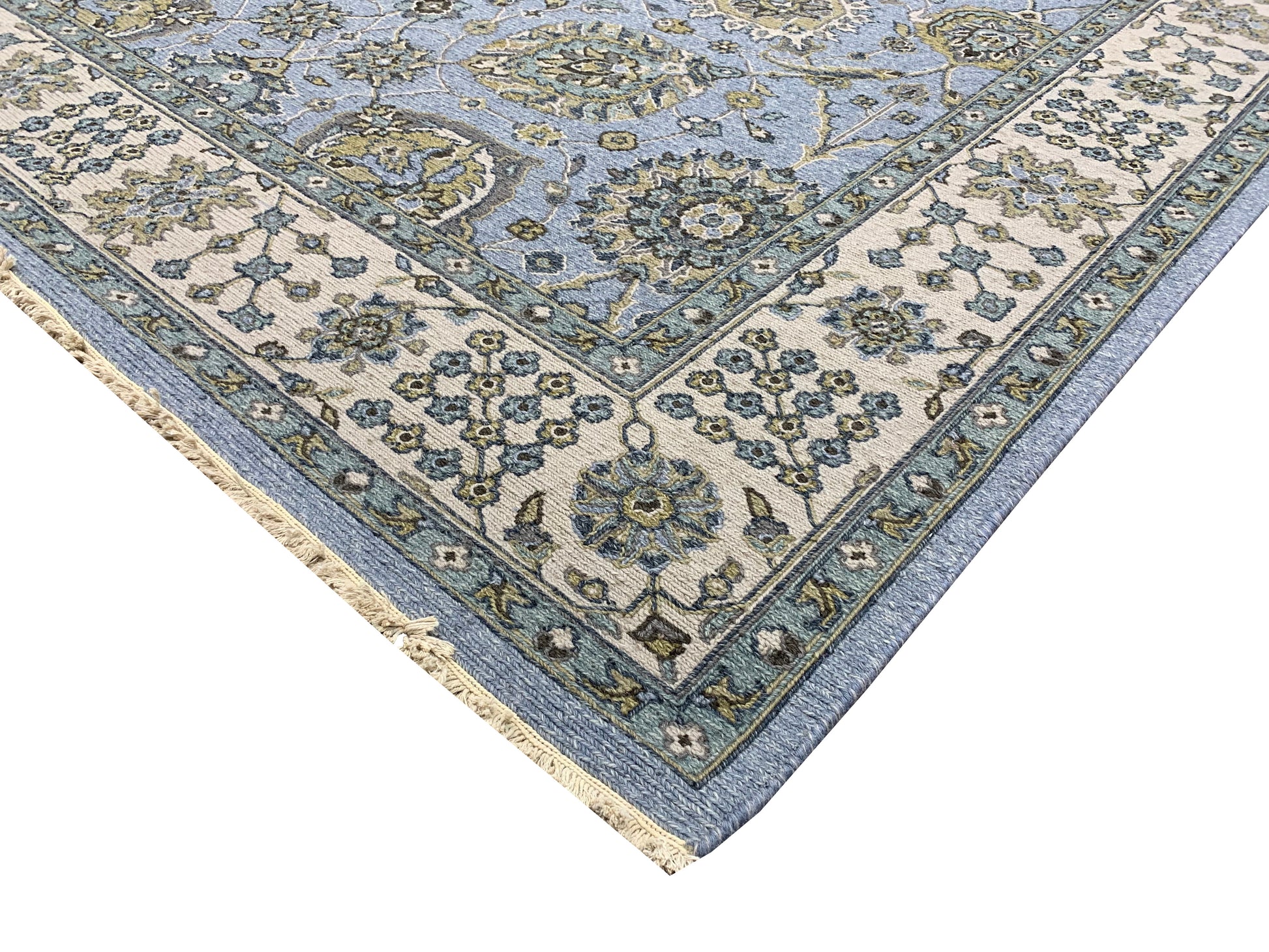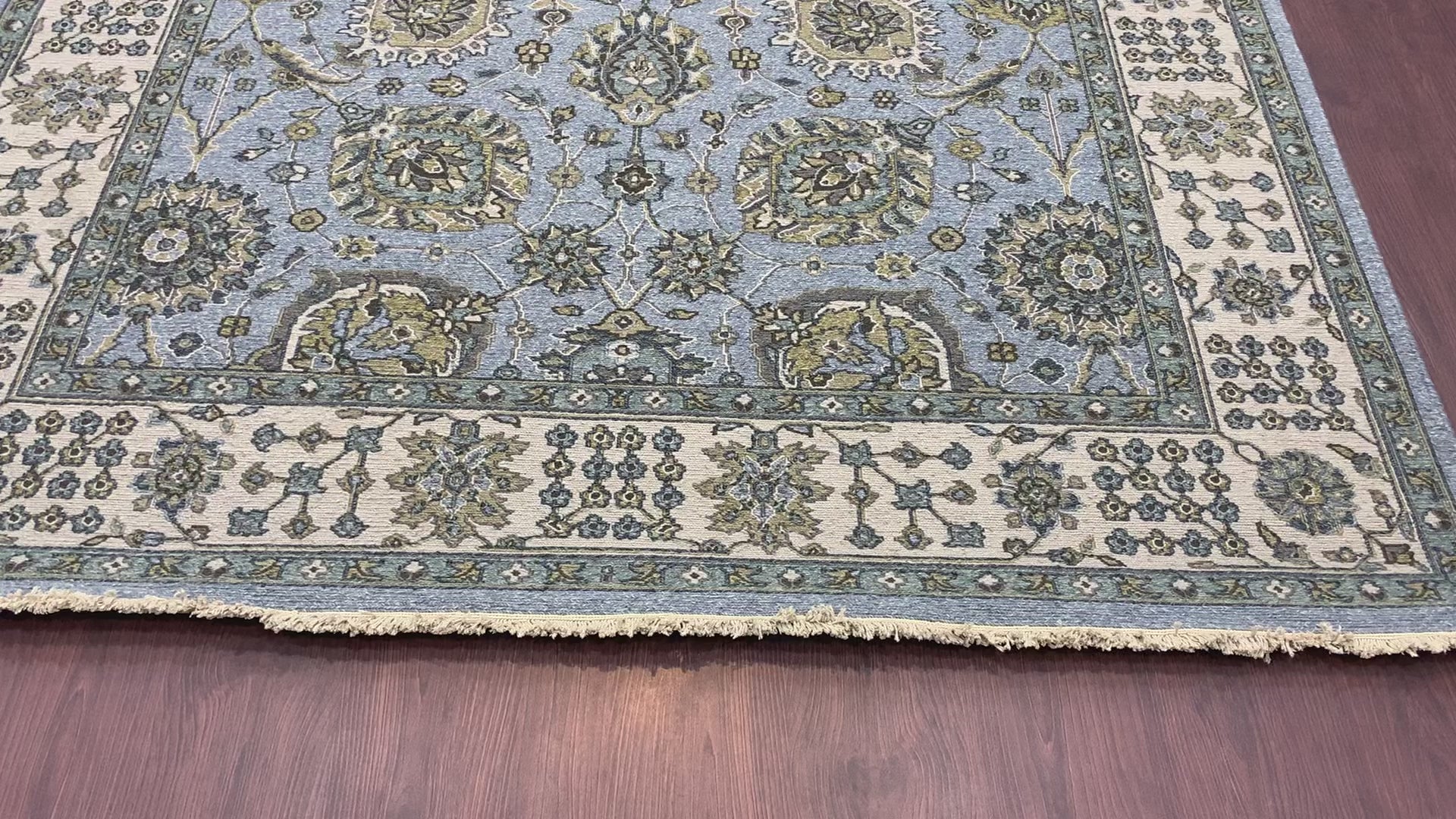 L.Blue and Ivory, Pure Wool Lo-Pile Traditional Soumak Handknotted 6.2x8.9Ft 189x266Cms Area Rug