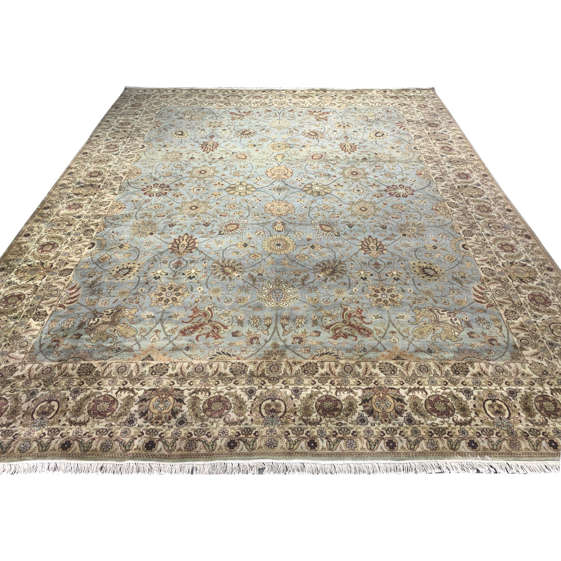 L.Blue and Ivory, Pure Wool Regular Traditional Handknotted 12.1x14.11Ft 369x454Cms Area Rug
