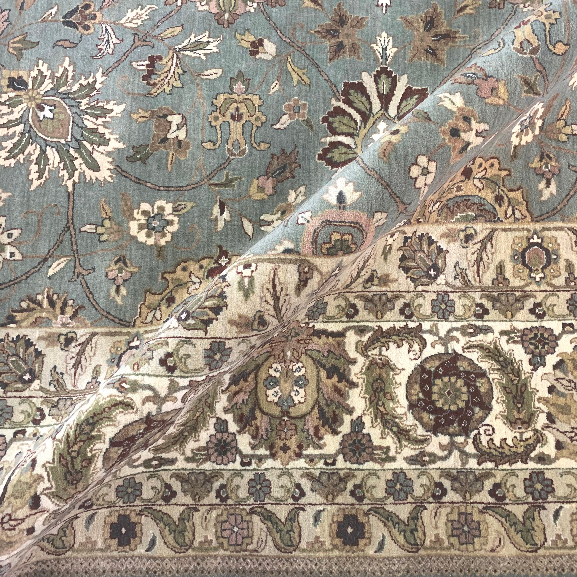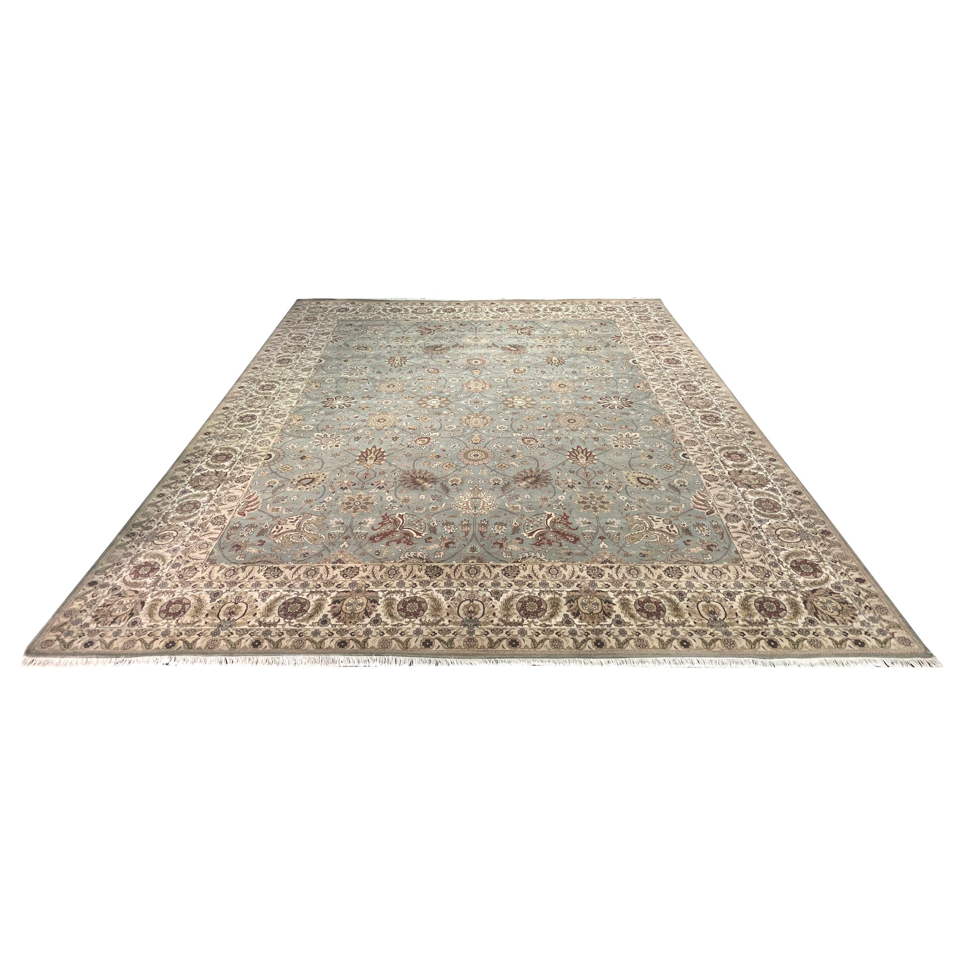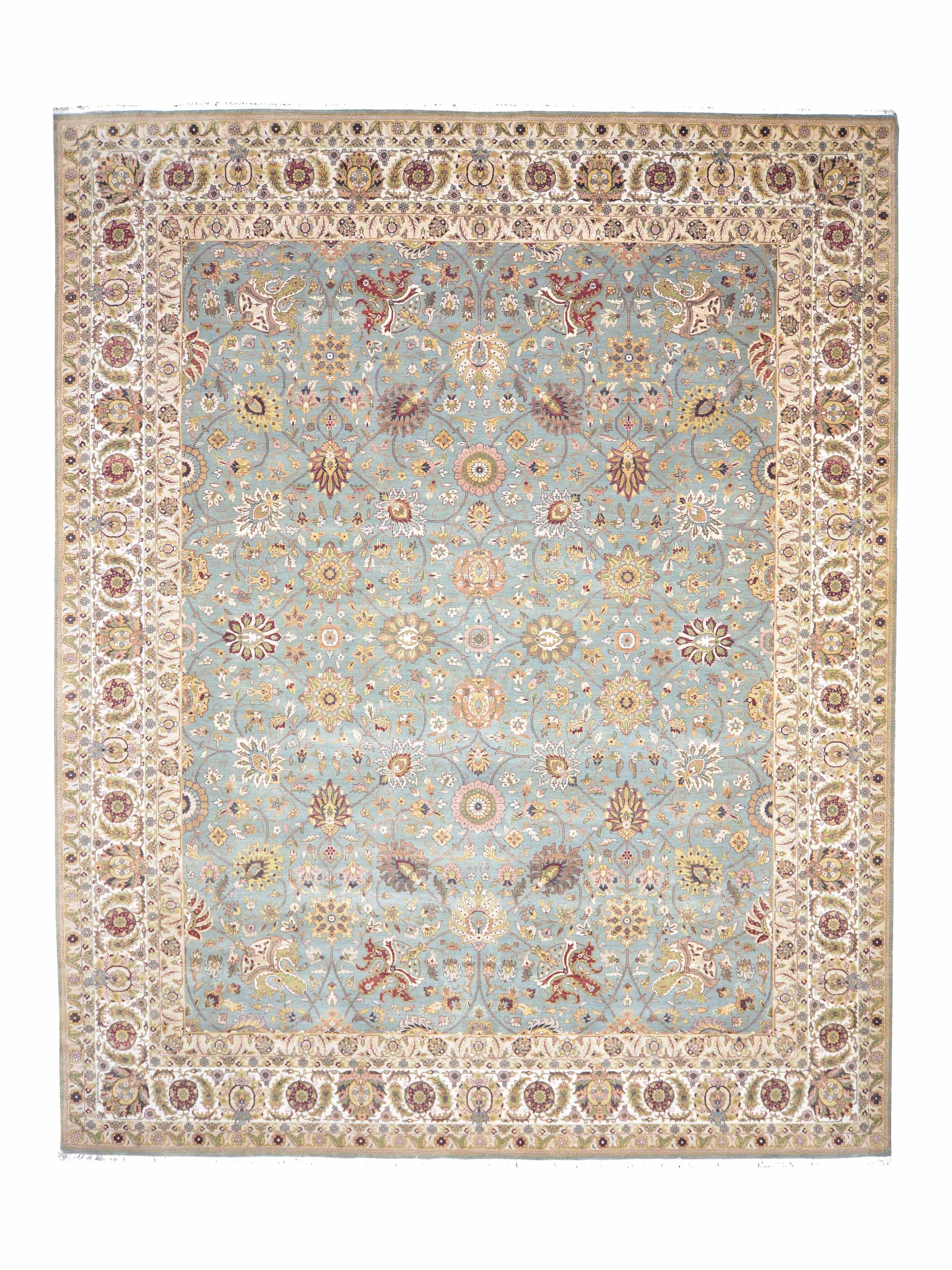 L.Blue and Ivory, Pure Wool Regular Traditional Handknotted 12.2x14.11Ft 370x446Cms Area Rug