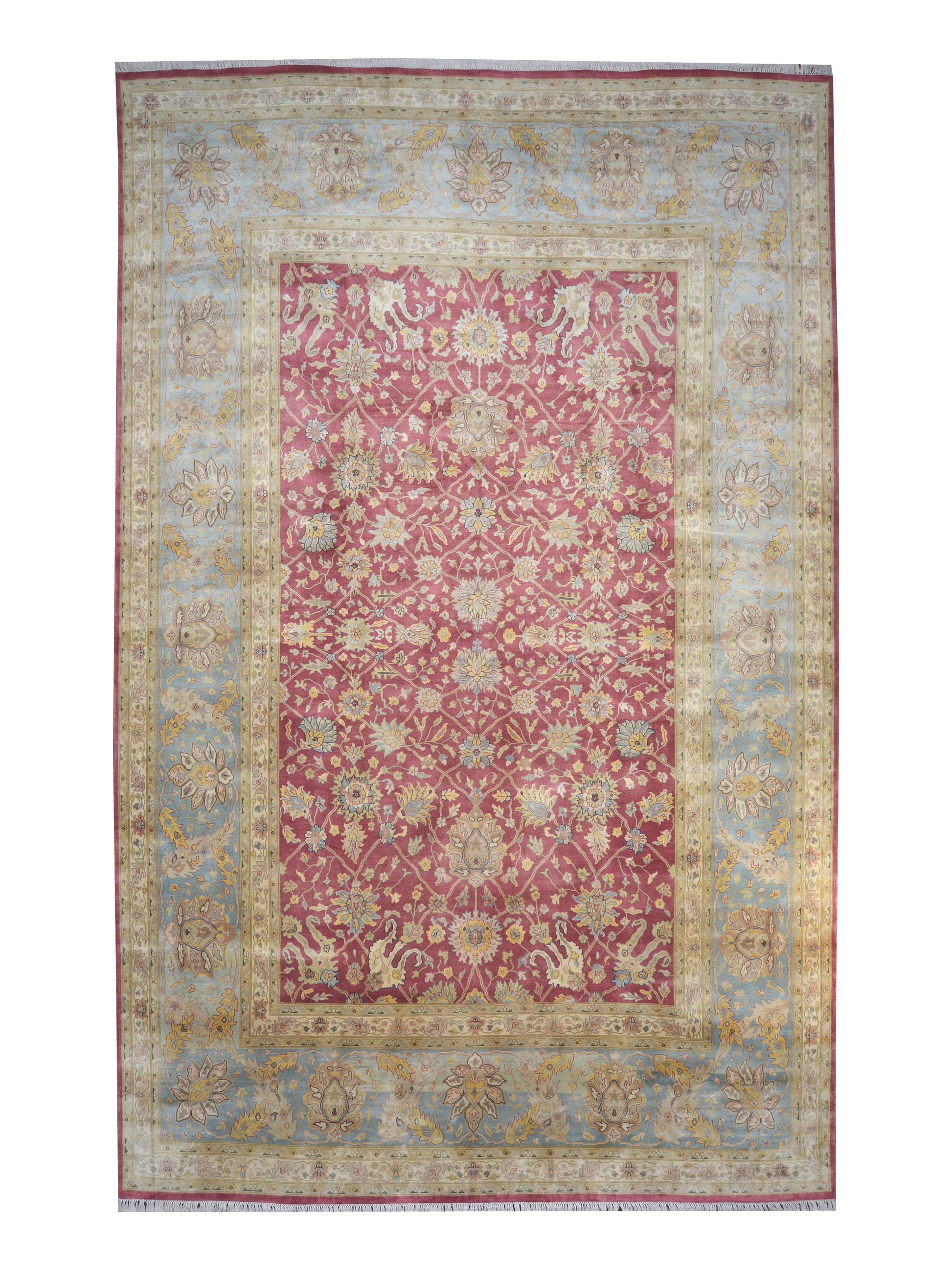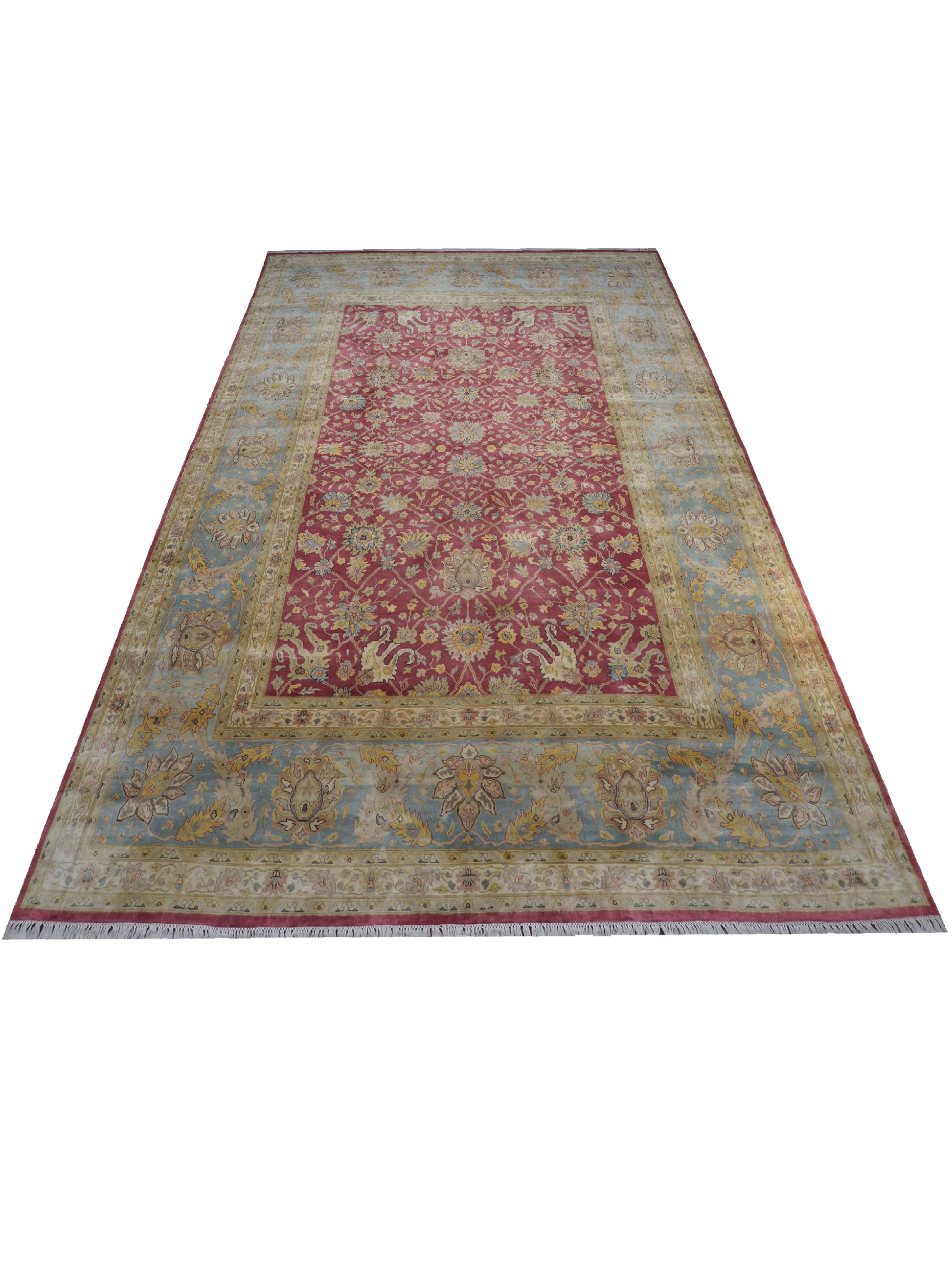 L. Blue and Red, Pure Silk Traditional Handknotted 10.0x15.9Ft 305x479Cms Area Rug