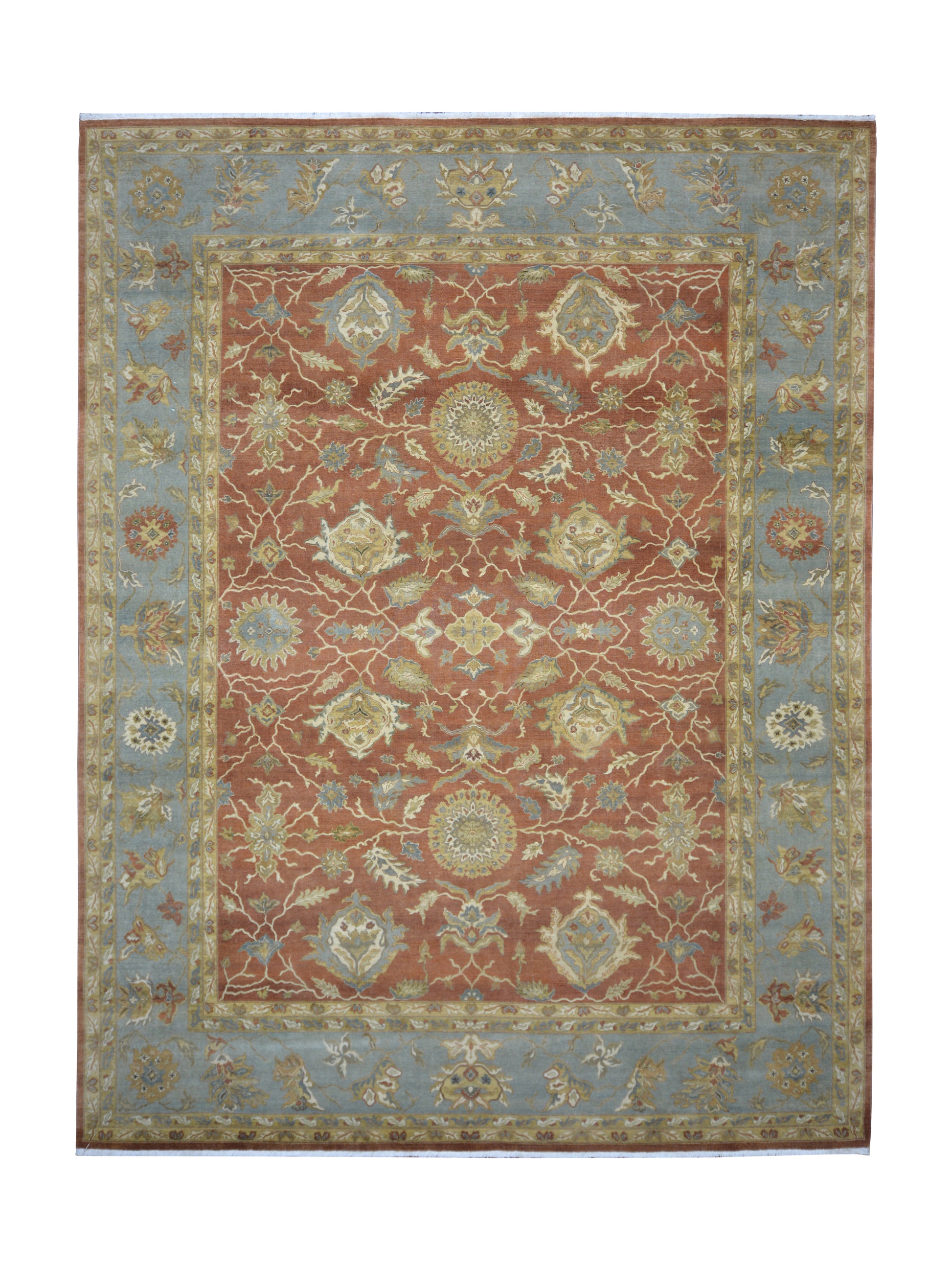 L. Blue and Rust, Pure Wool Regular Traditional Handknotted 9.10x12.11Ft 299x392Cms Area Rug