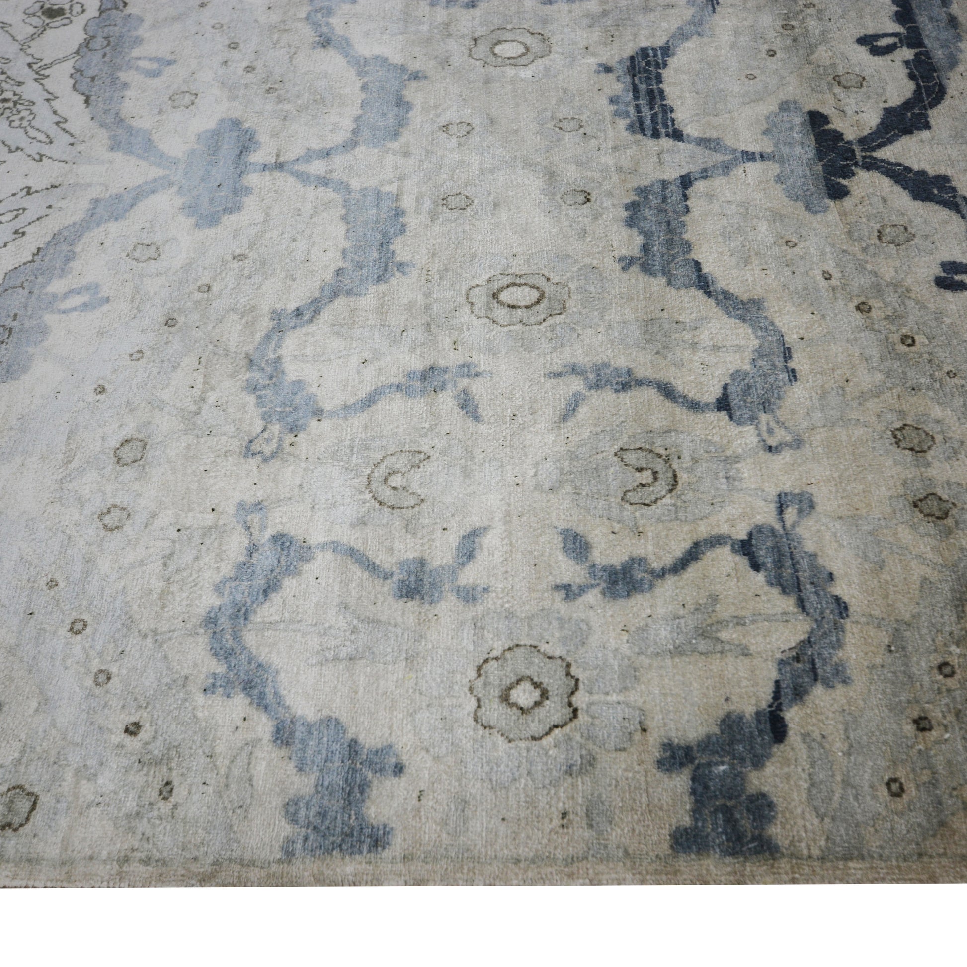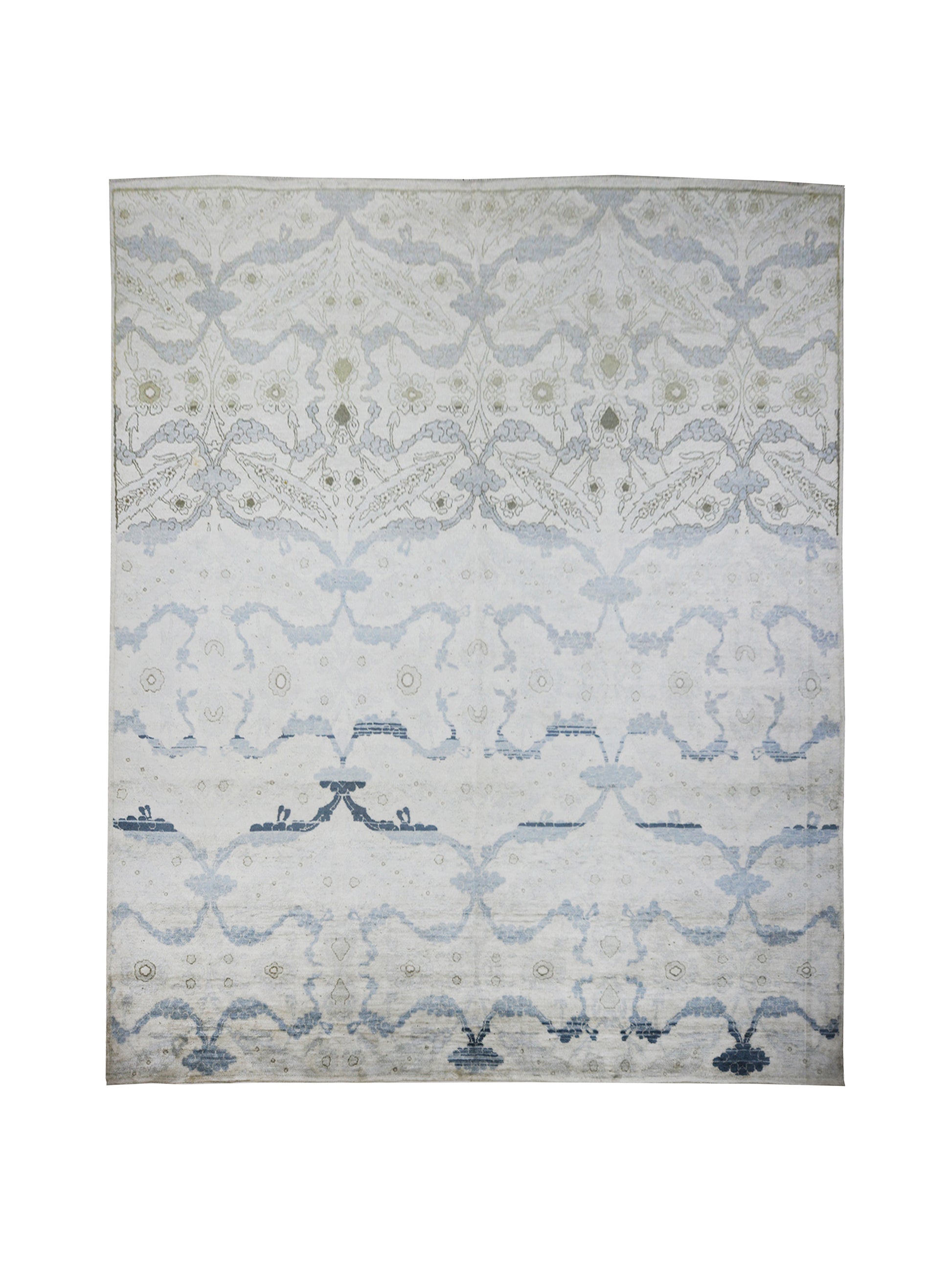 L. Blue Grey, Pure Silk Modern Crown Handknotted 7.11x9.3Ft 238x280Cms Area Rug