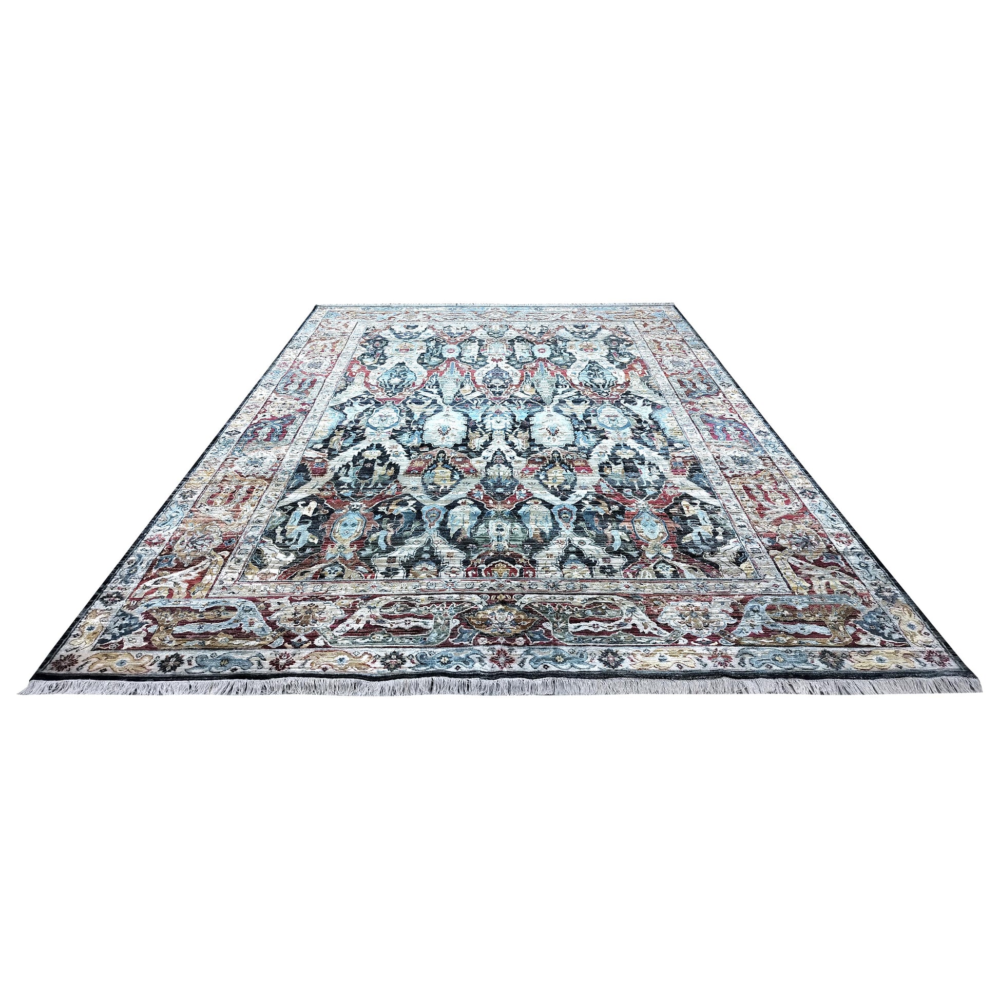 Multy Black Sari Silk Silk Wool Oxidized Bidzar Transitional Handknotted 10.0x14.2ft 305x432cms Area Rug