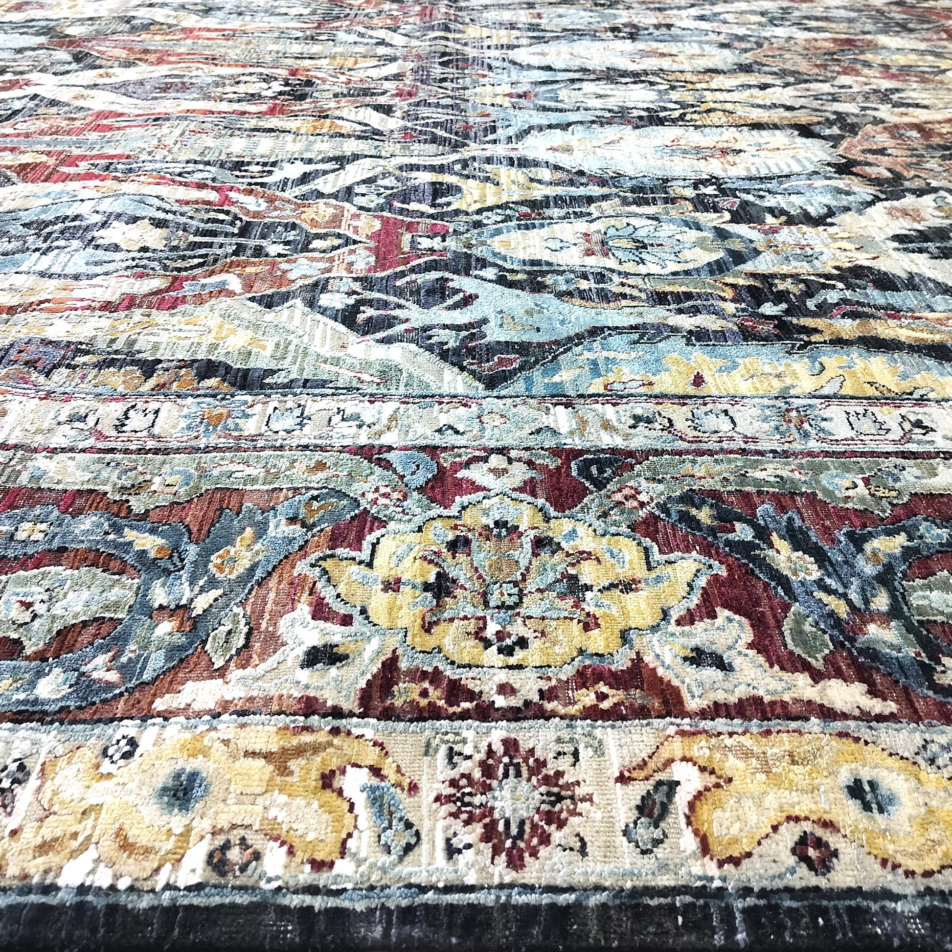 Bidzar Transitional Handknotted Sari Silk Wool Oxidized Area Rug