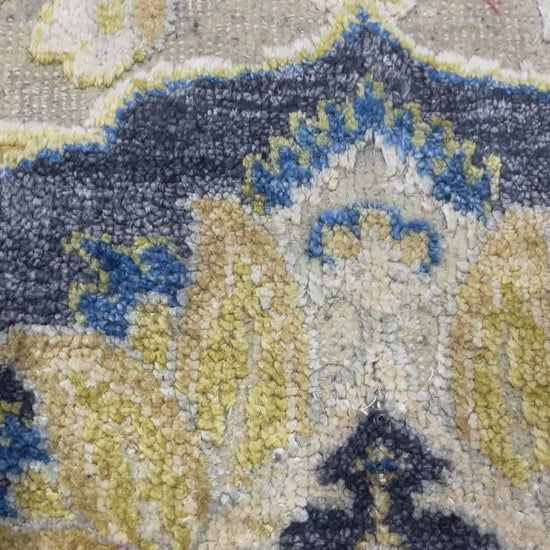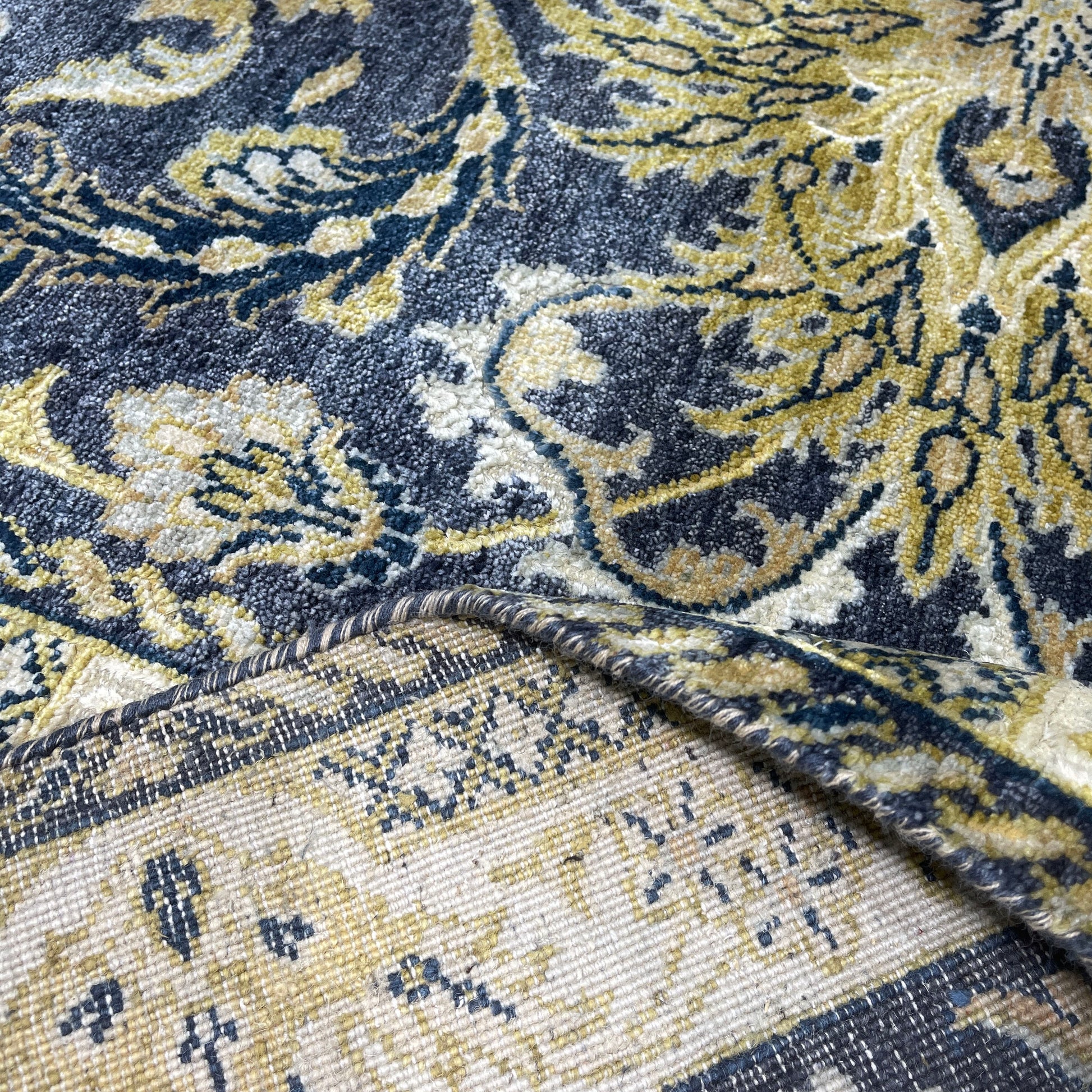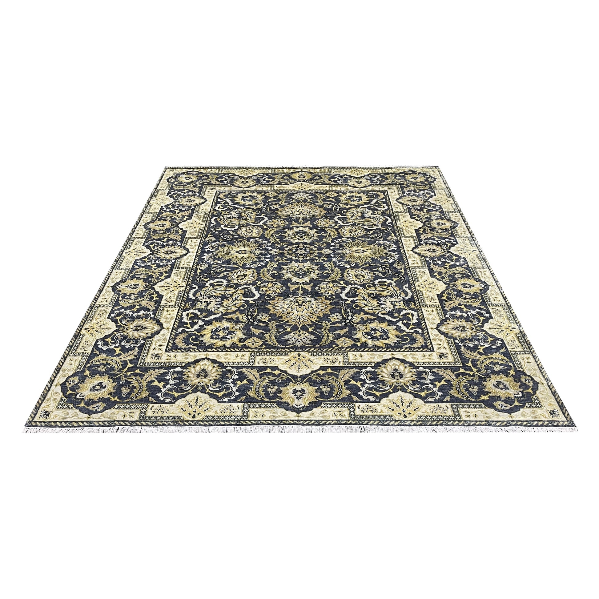 Navy Blue and Gold Silk and Wool Oxidized Persian Traditional Handknotted 9.0x12.5ft 274x377Cms Area Rug