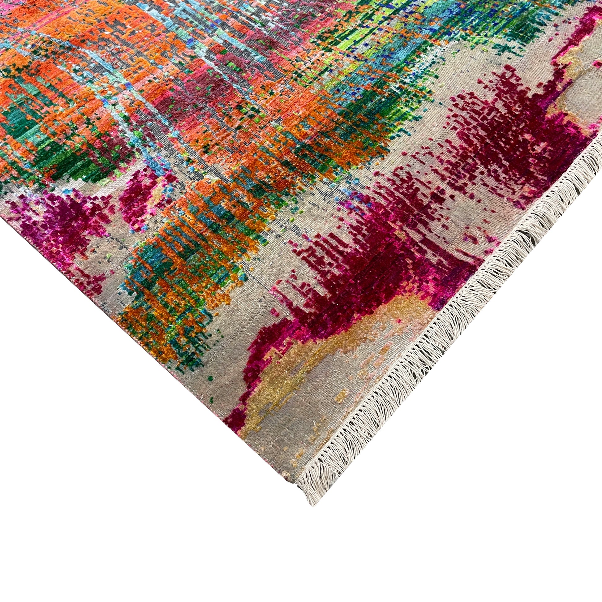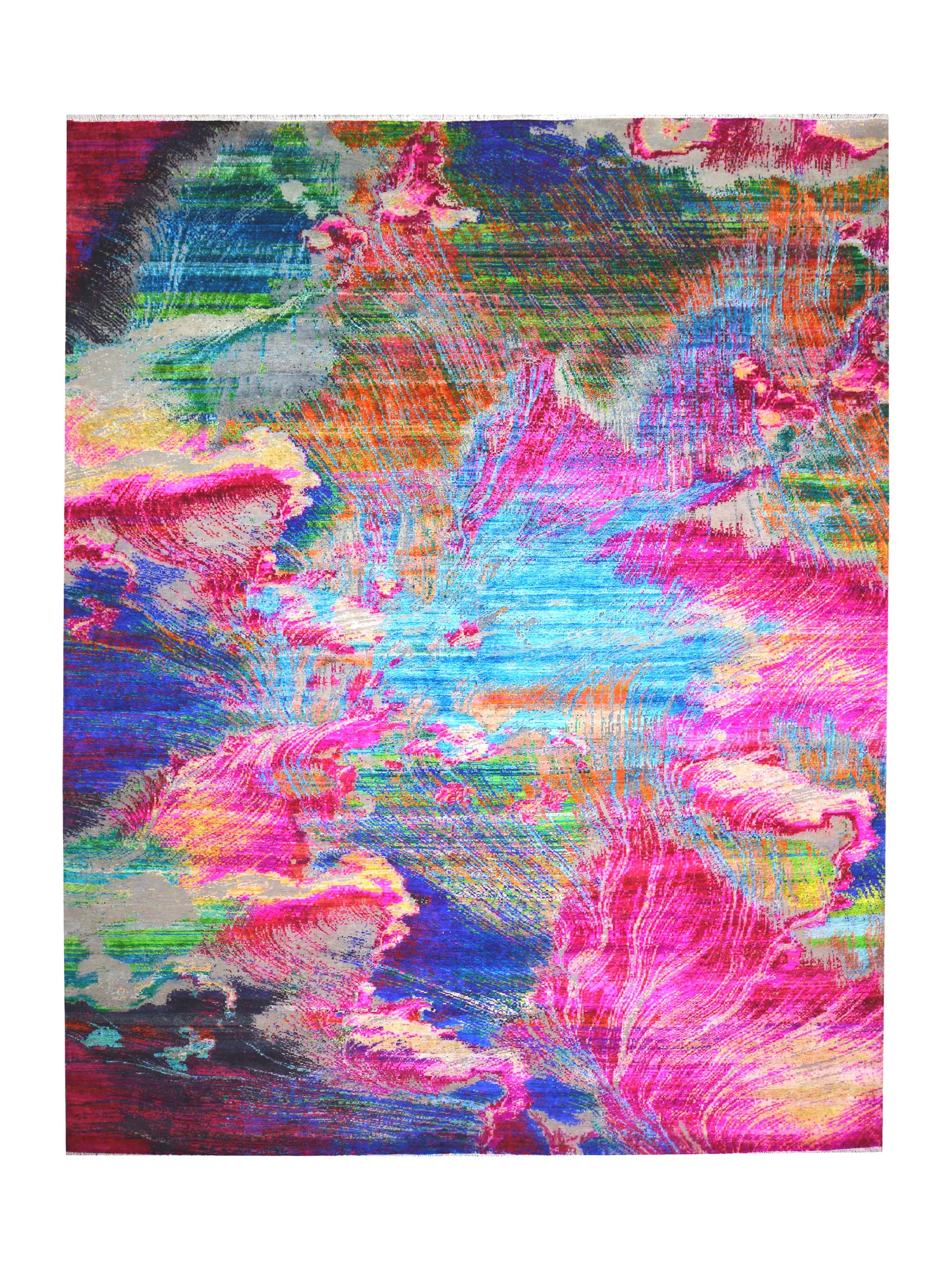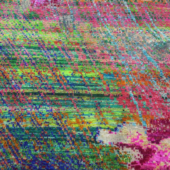 Pink and Multy, Sari Silk and Wool Oxidized Modern Handknotted 11.10x14.11Ft 360x453Cms Area Rug