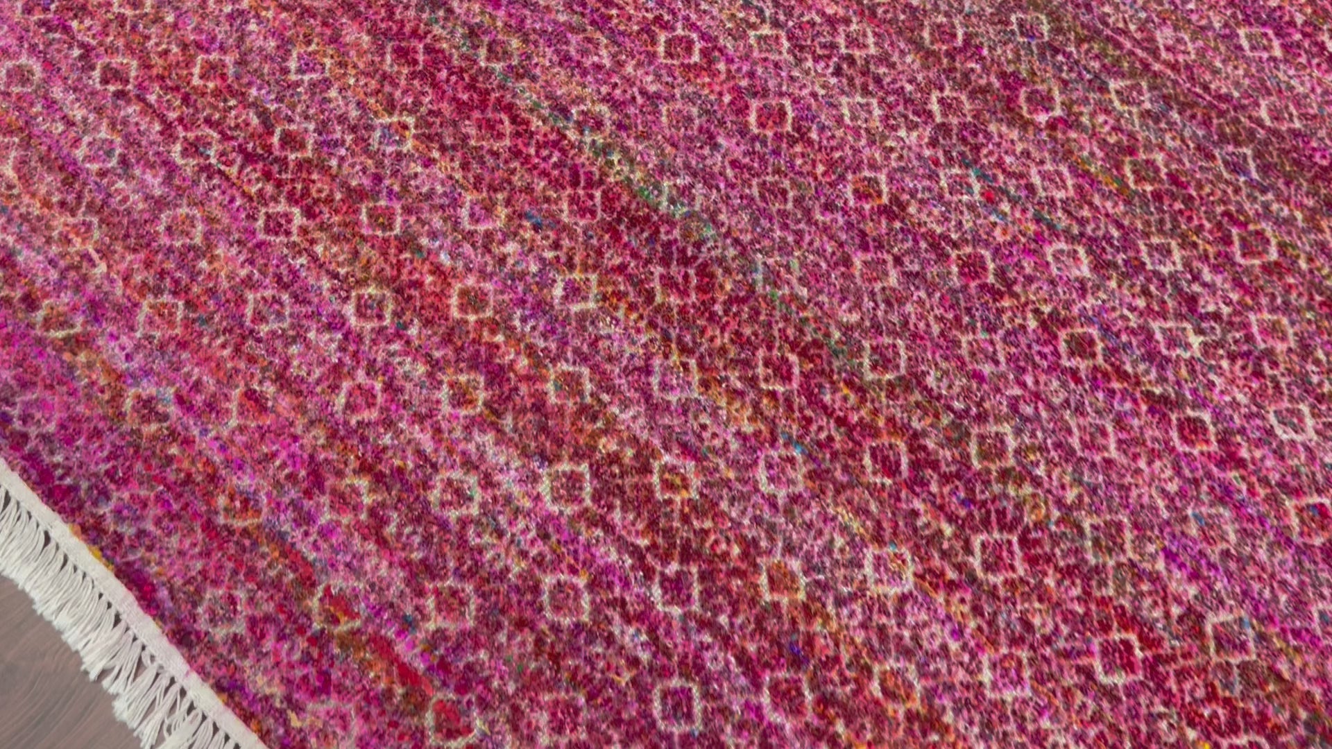 Pink and Red, Sari Silk and Wool Oxidized Modern Handknotted 8.0x10.0Ft 245x305Cms Area Rug