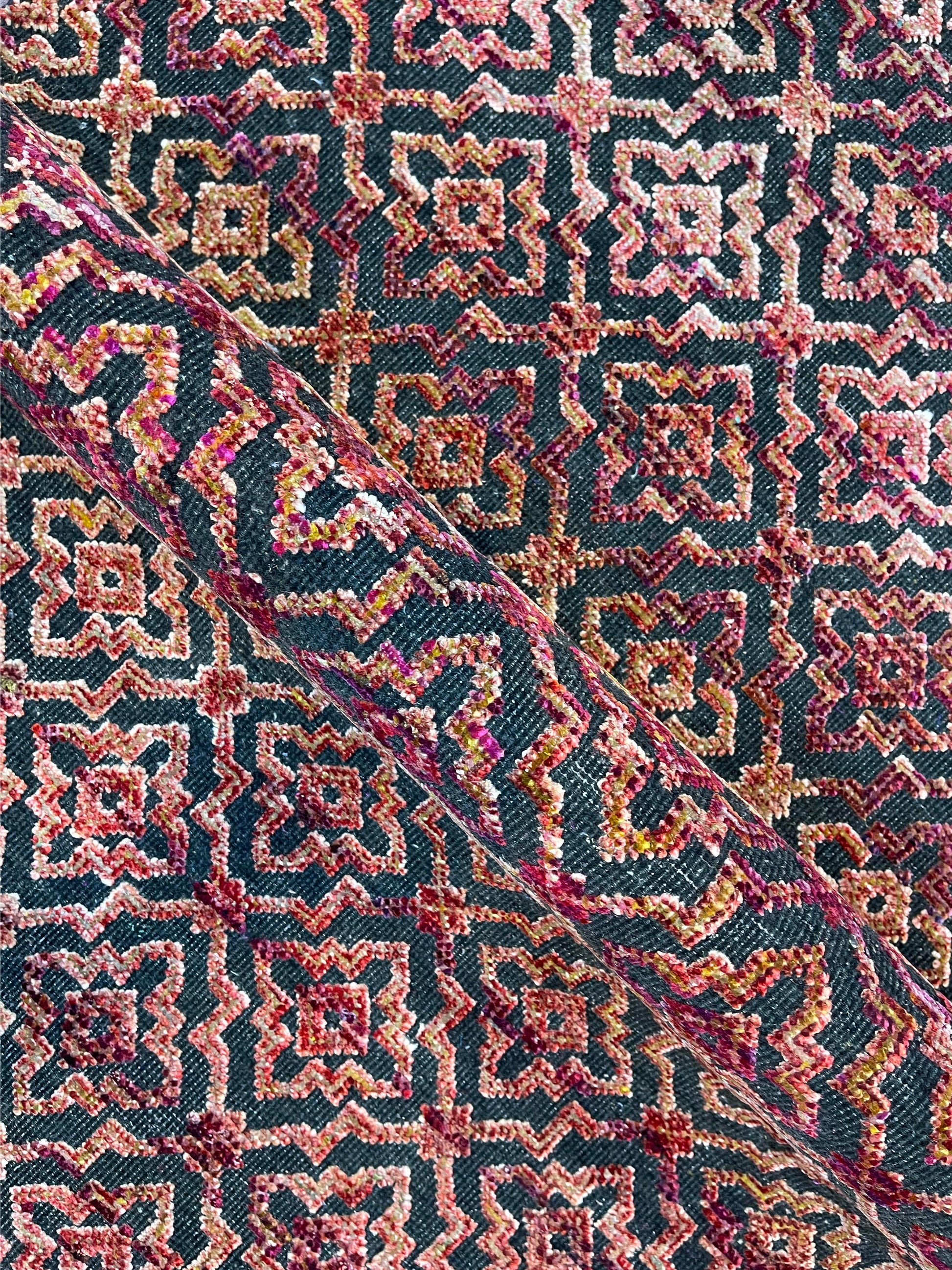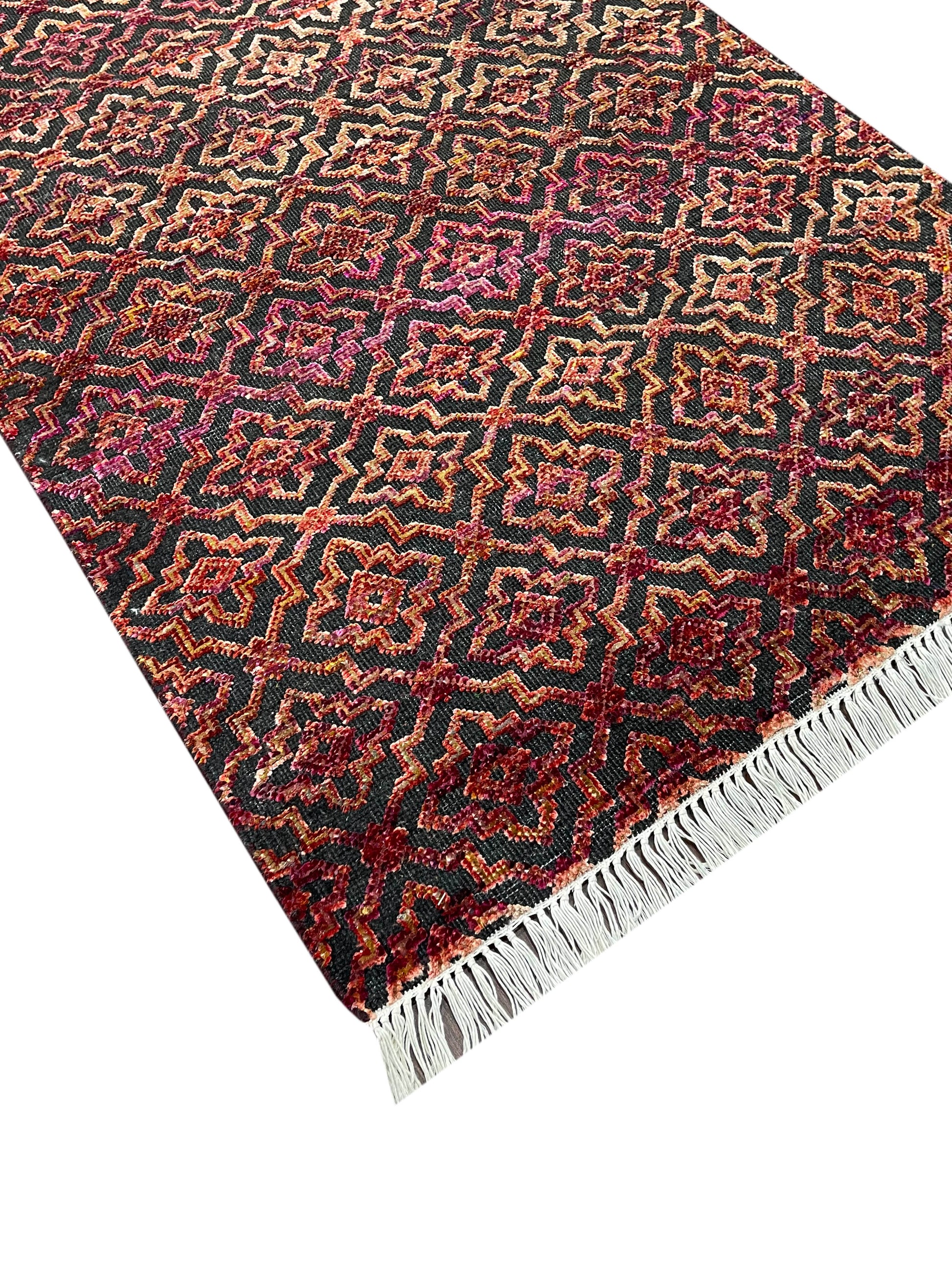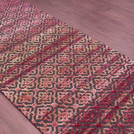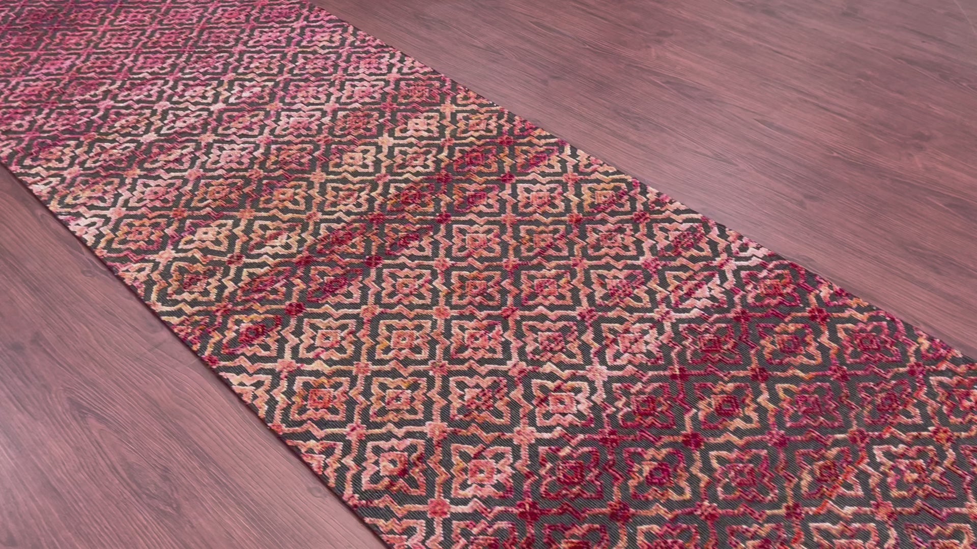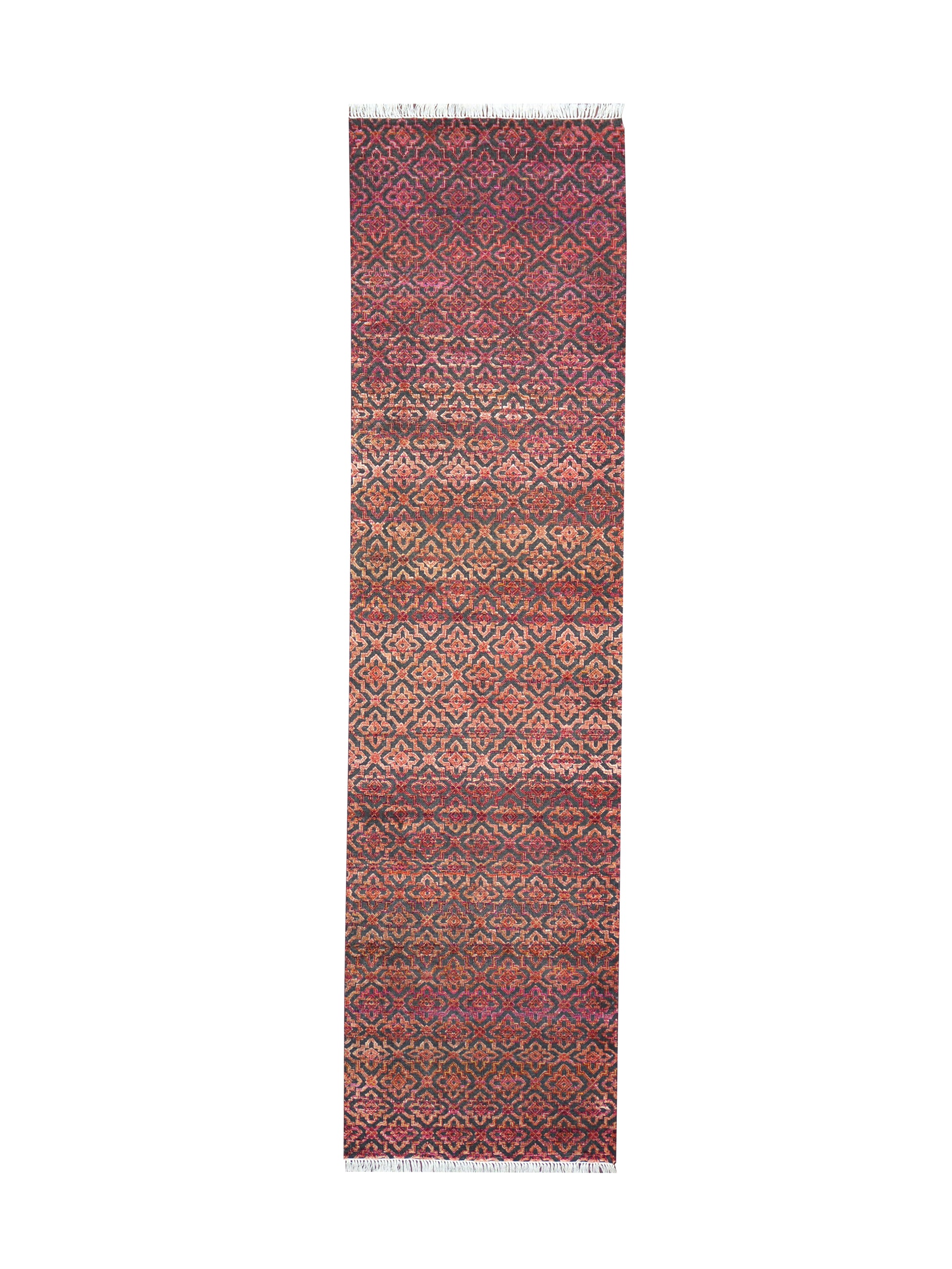 Red and Black Transitional Handknotted Runner Rug 3X11.9ft 92x357cms