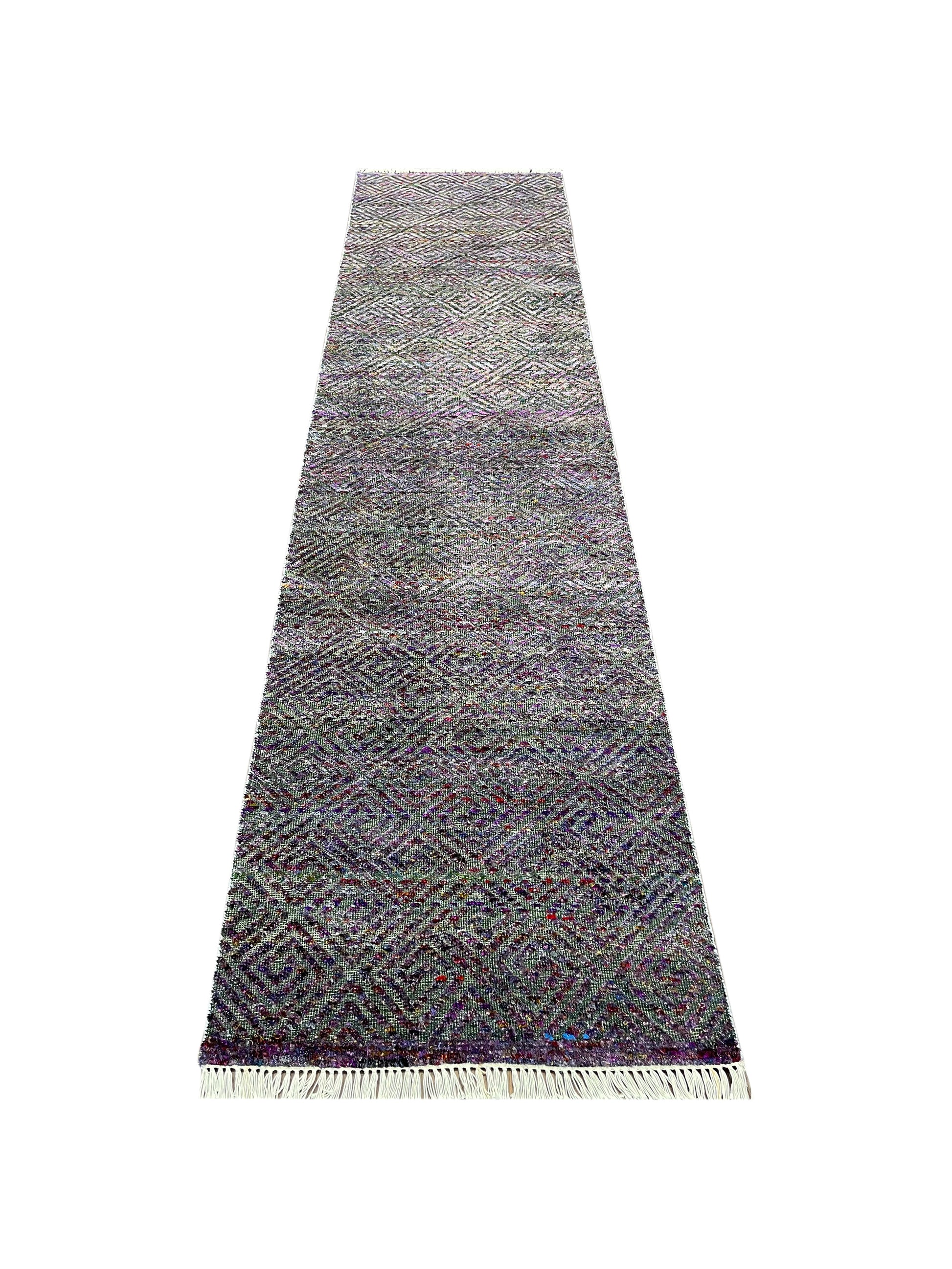 Black and Multy Transitional Handknotted Runner Rug 2.5X9.10ft 72x297cms