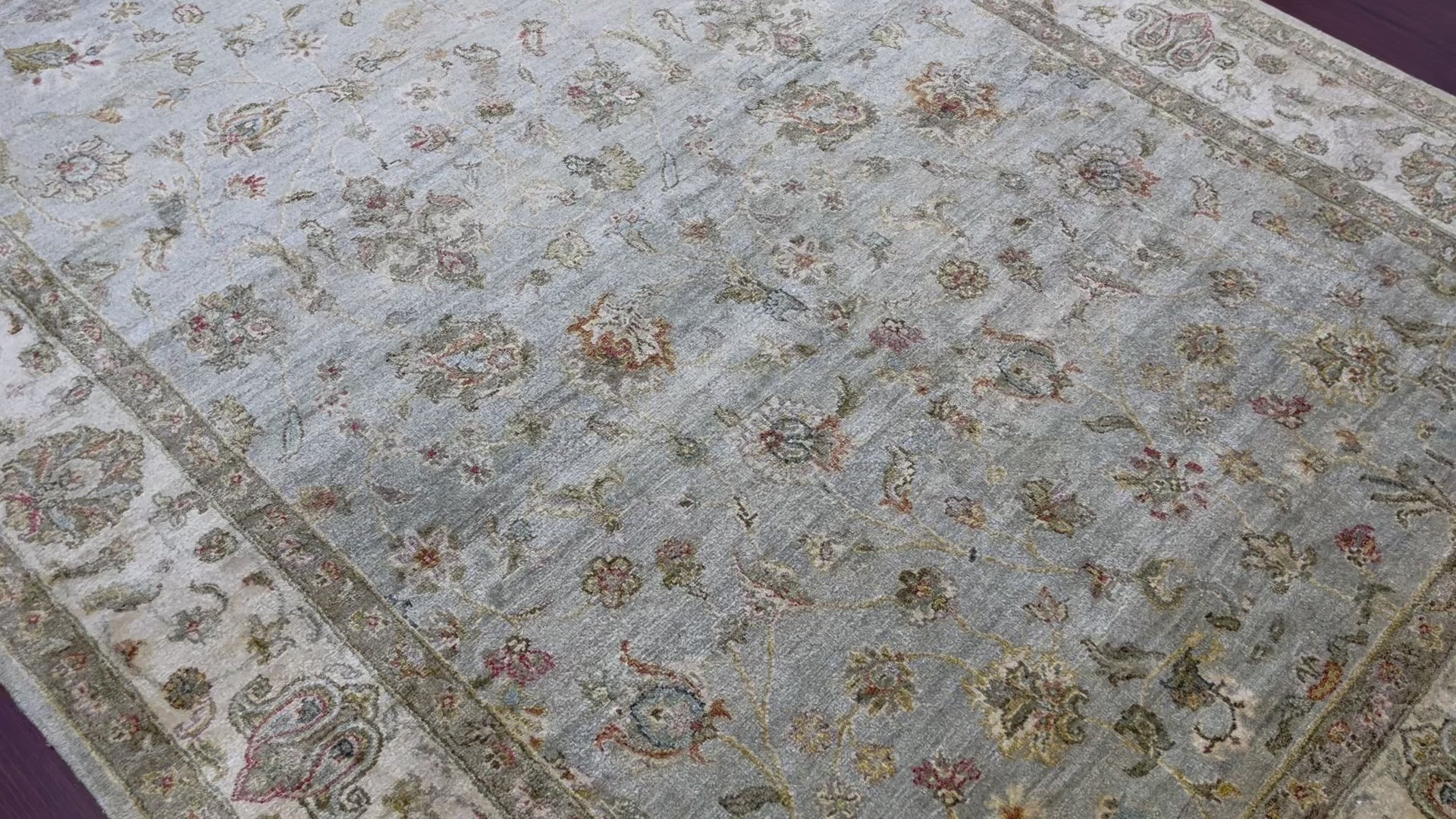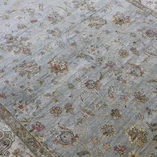 Silver and Camel Pure Silk Agra Traditional Handknotted 5.11x9.0Ft 179x276Cms Area Rug
