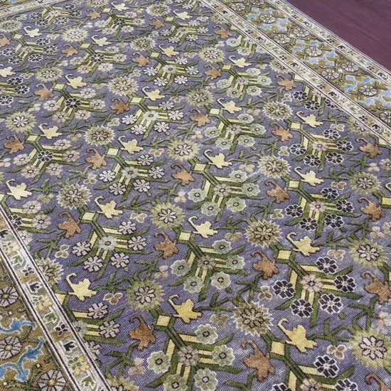Lavender and Camel Silk Wool Handknotted Luxury Area Rug 5.11x9.13ft 180x282Cms