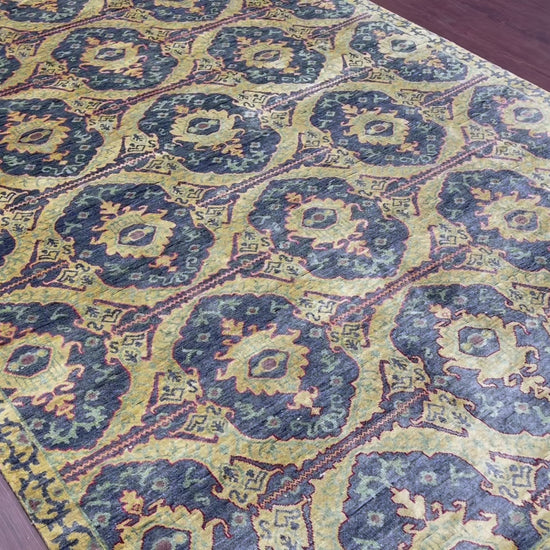 Blue and Camel Silk Transitional Handknotted Silk Area Rug,