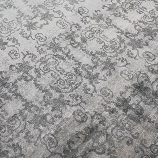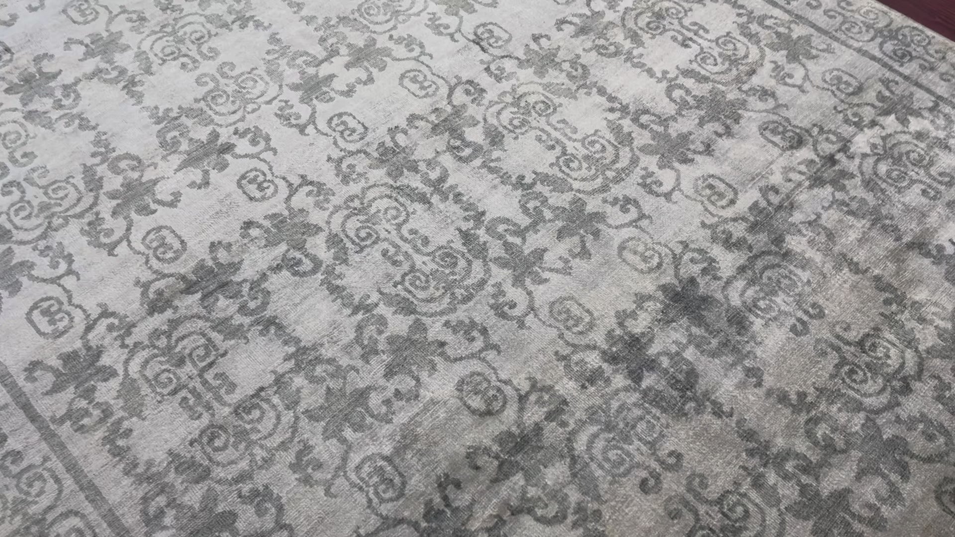 Grey and Grey Pure Silk Handknotted Area Rug 5.11x8.9ft 180x267Cms