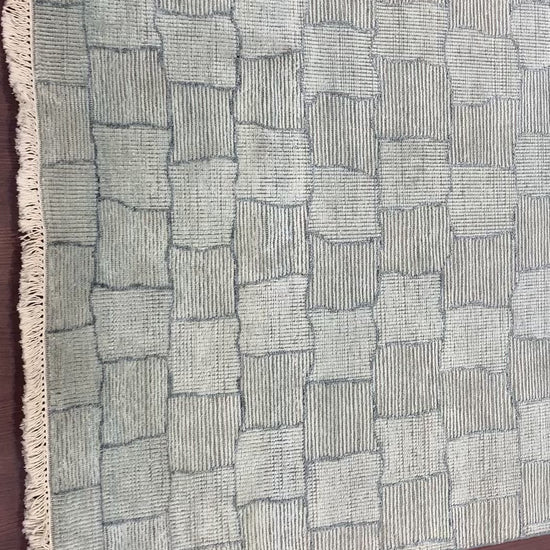 Grey and L.Blue Silk Wool Distressed Modern Handknotted 3.10x5.10Ft 118x179Cms Area Rug