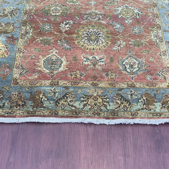 Rust Blue Pure Wool Traditional Luxury Handknotted 3.10x5.7Ft 118x170Cms Area Rug