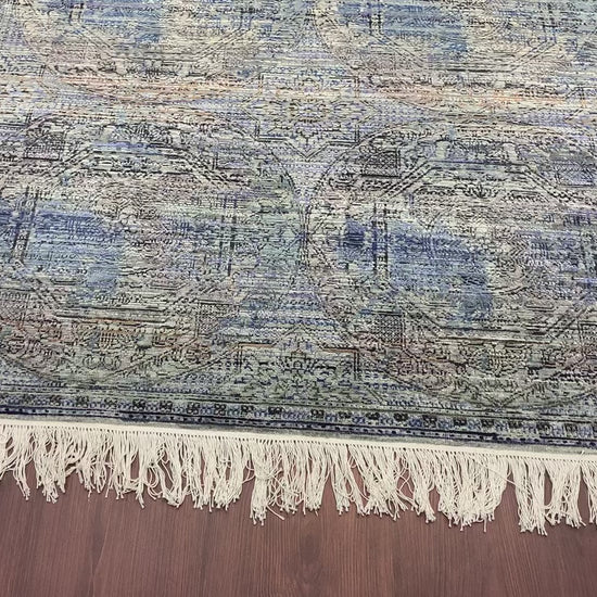 Blue Multi Silk, Wool Modern Area Rug 4.10x7.0ft 148x214Cms