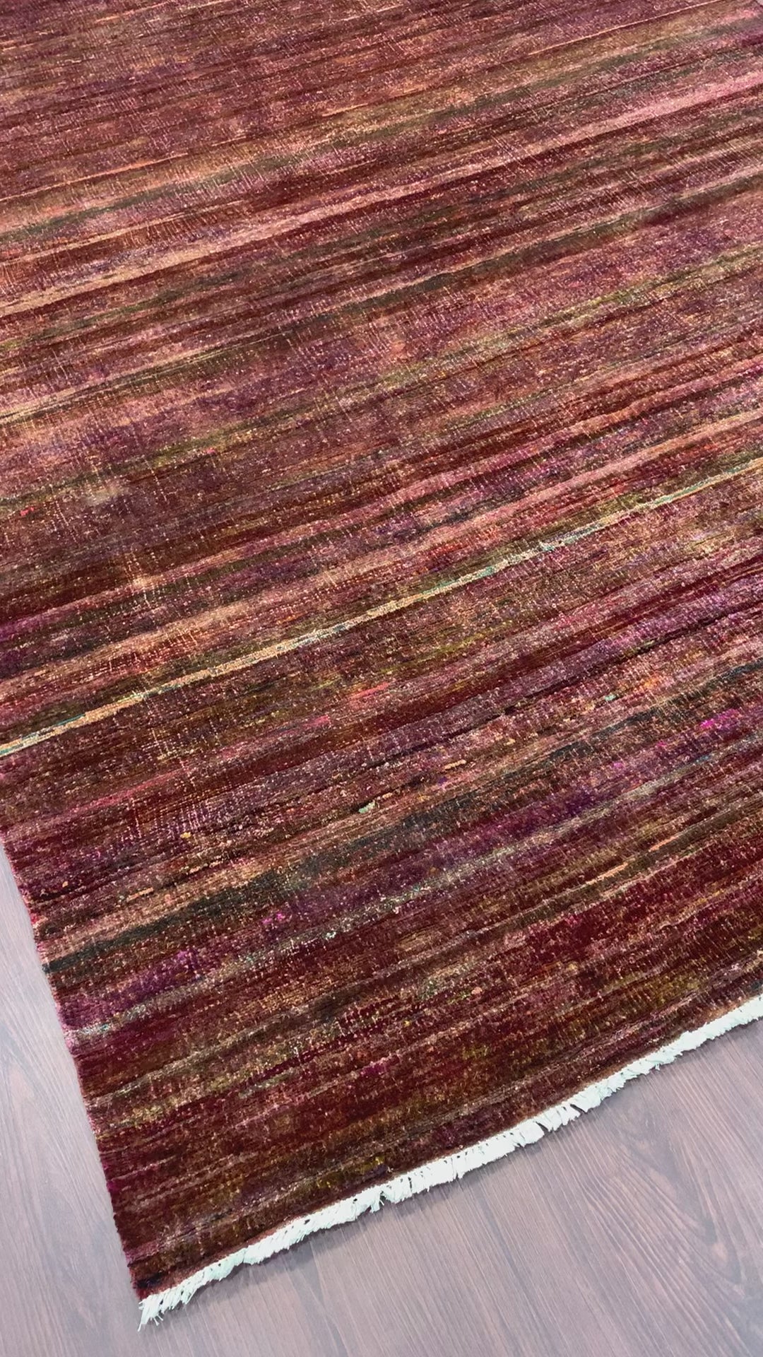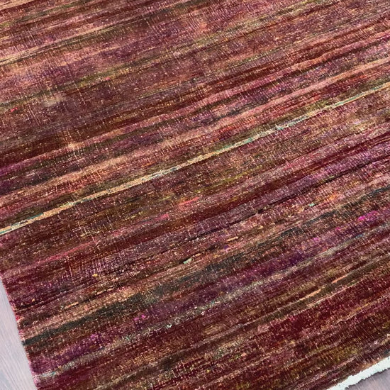 Red and Gold Pure Sari Silk Modern Handknotted 5.11x8.11Ft 181x271Cms Area Rug